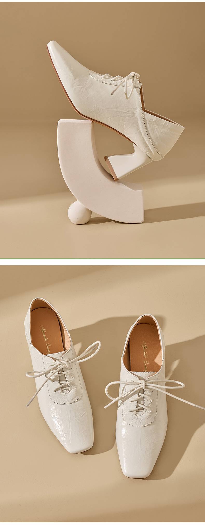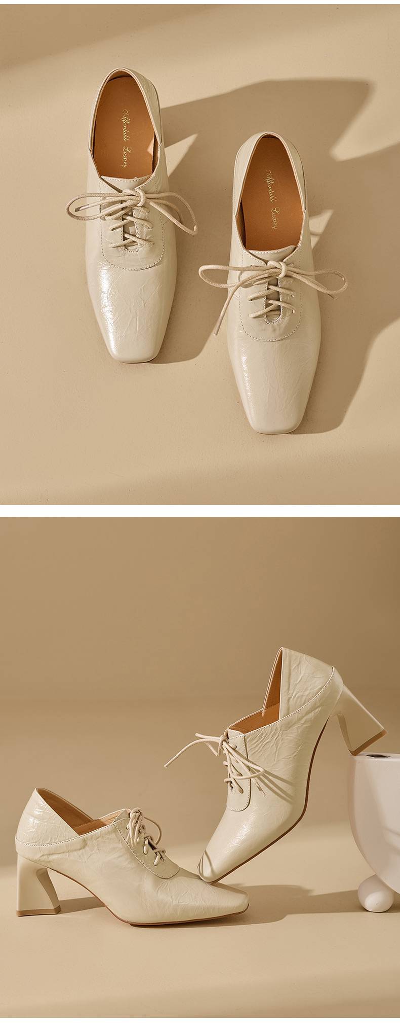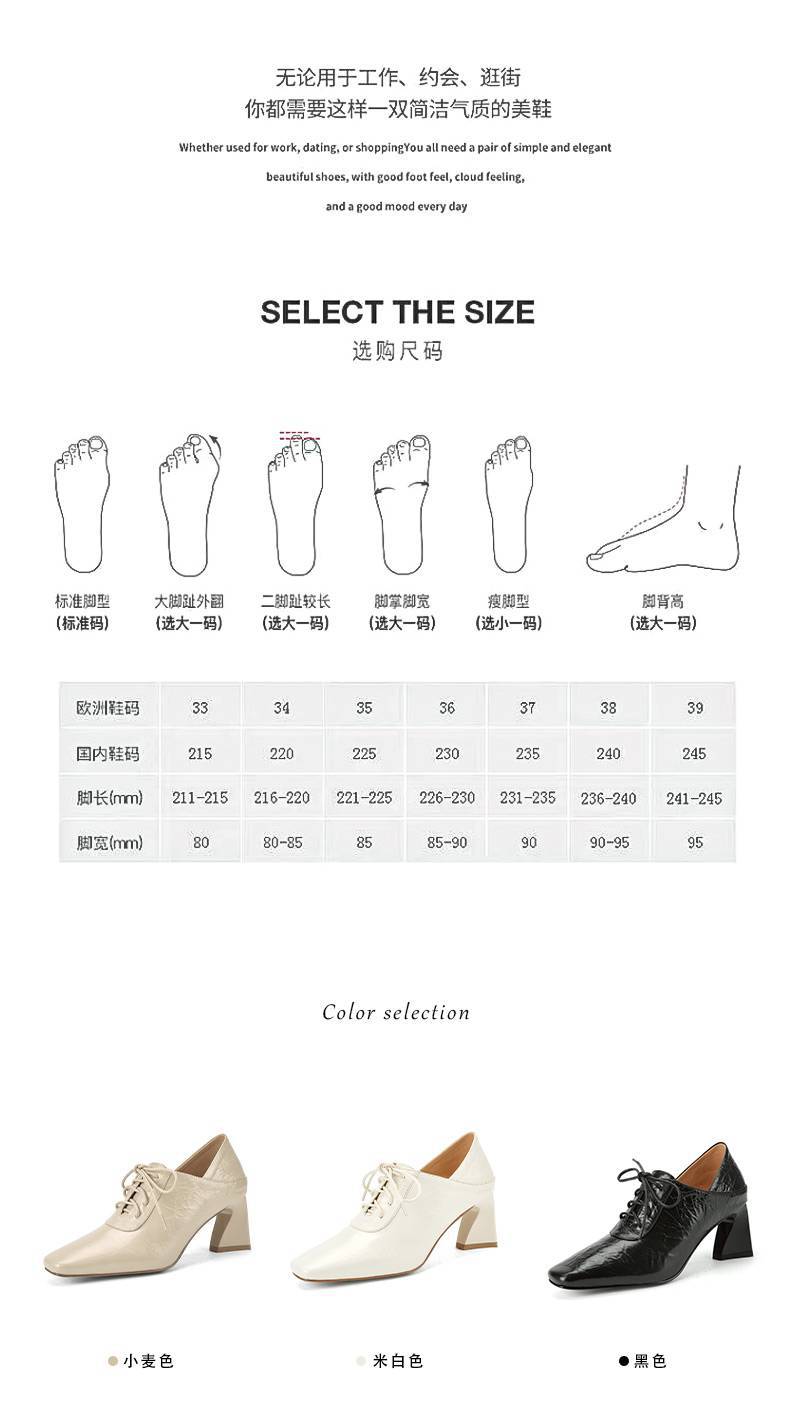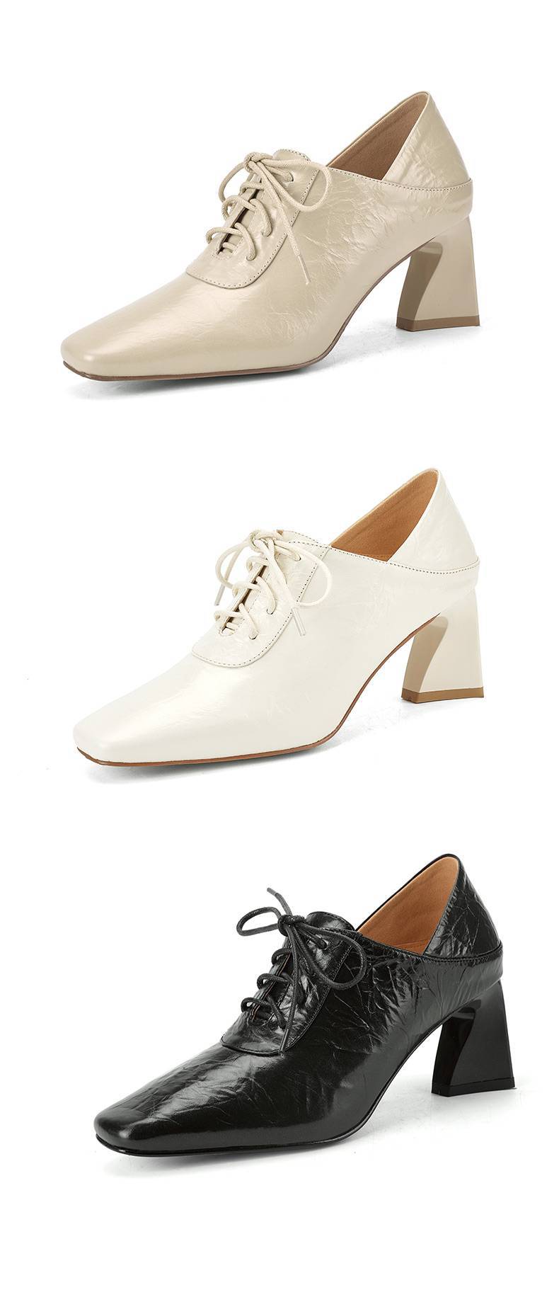 【预售5天】新款真皮系带小皮鞋女粗跟方头时尚高跟深口单鞋百搭女鞋MBJR&5915