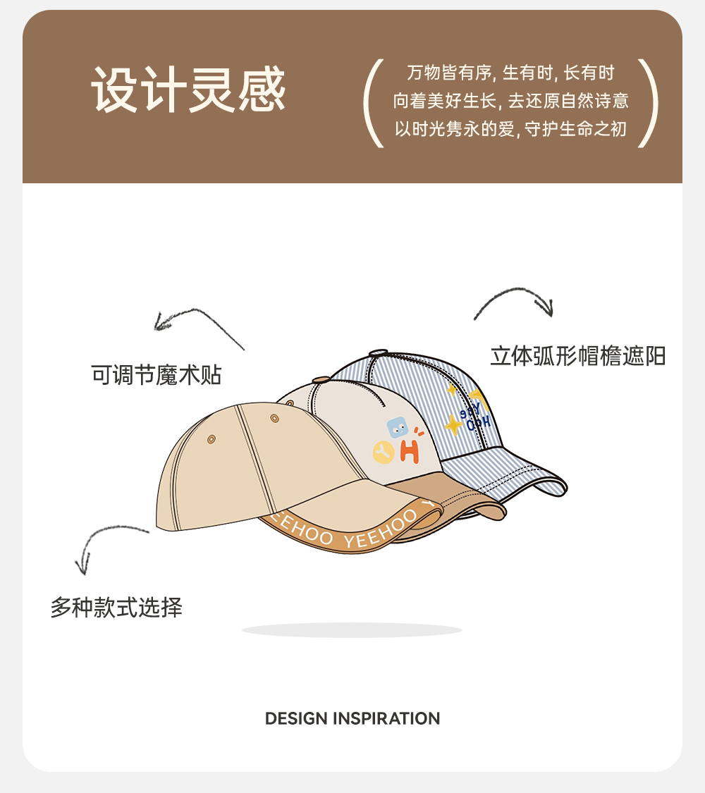 【商场同款】英氏儿童帽子宝宝遮阳帽时尚鸭舌帽纯棉棒球帽春夏