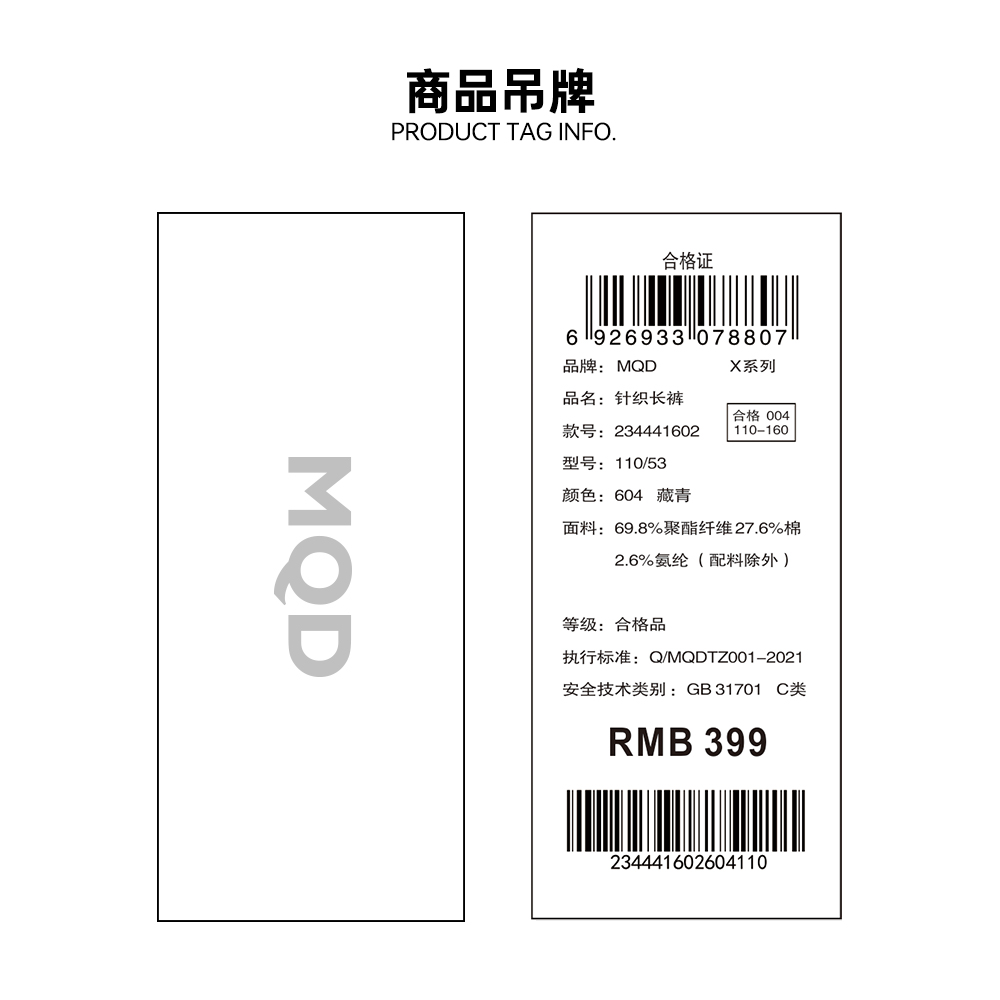【秒】【冬款清仓】【MQD】女童冬季复古国风休闲绒感针织长裤