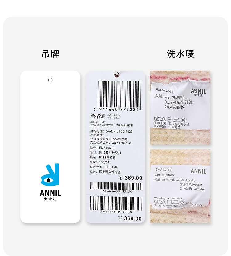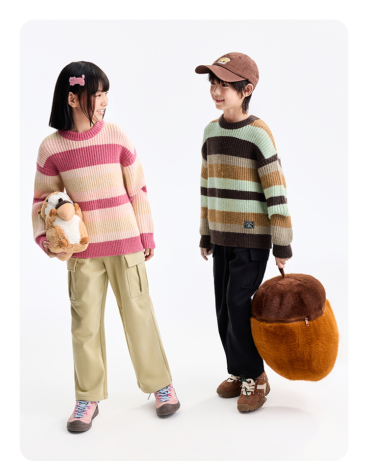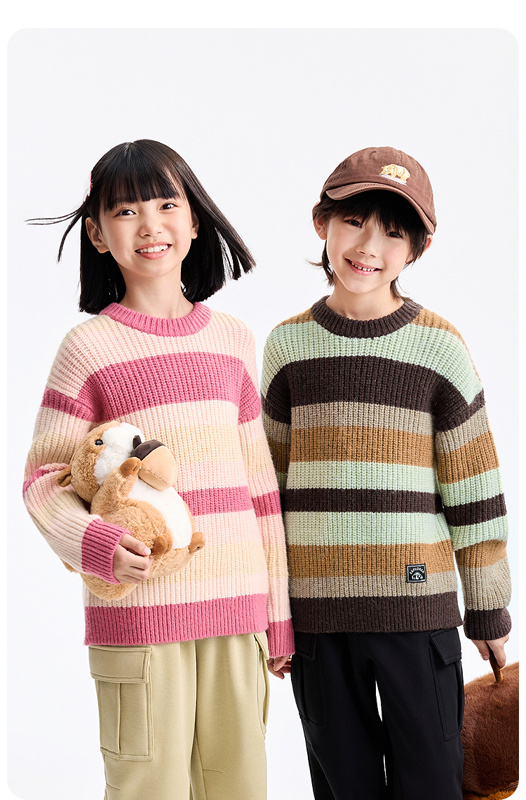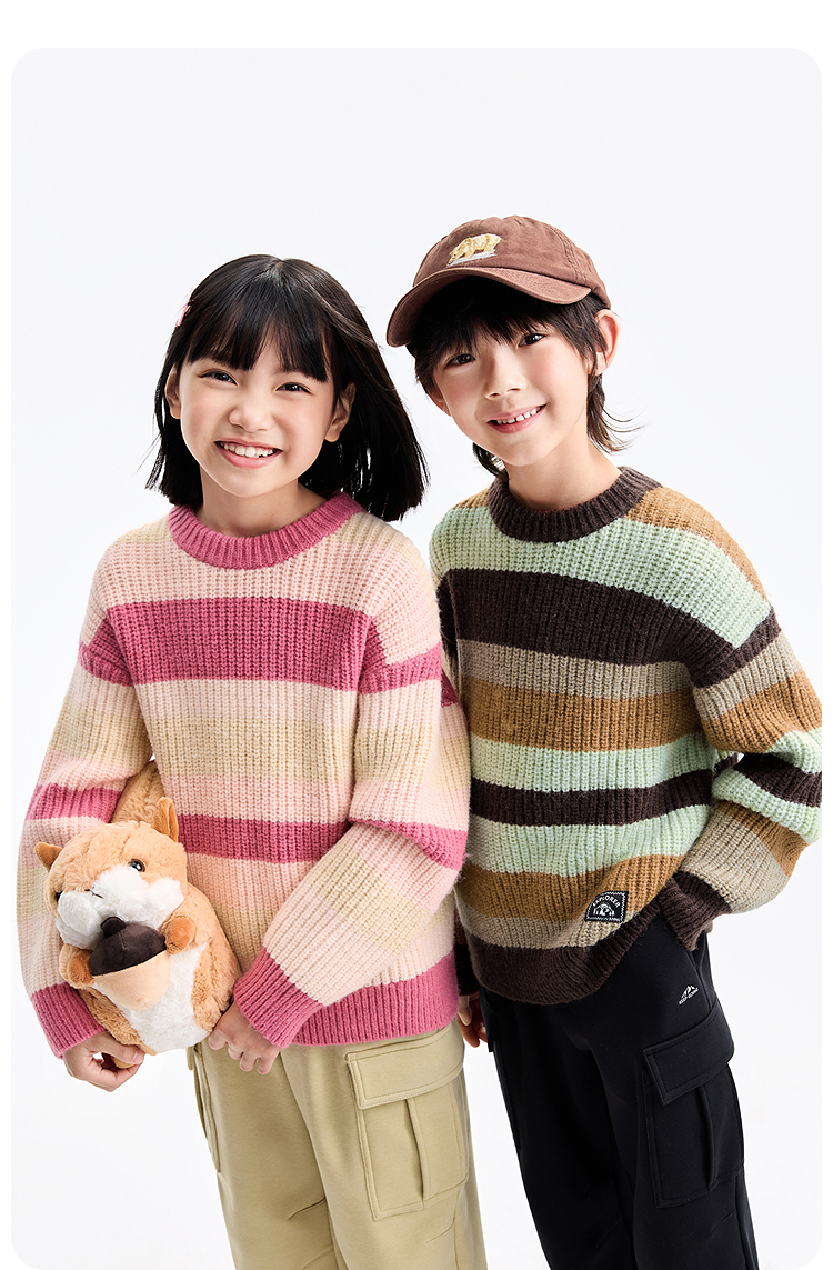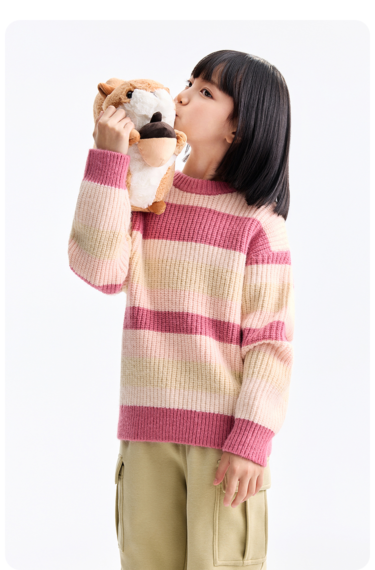 男女童圆领长袖针织衫冬季新款安奈儿童装EM544663