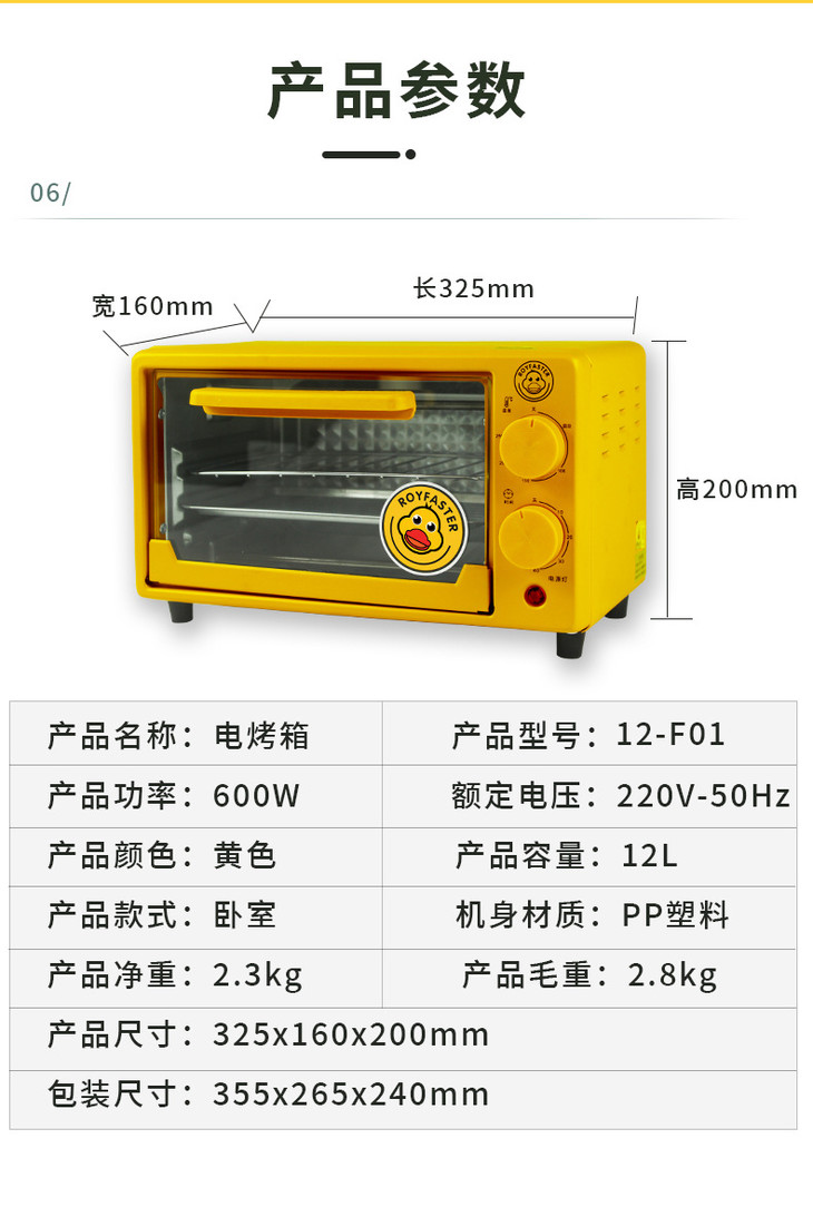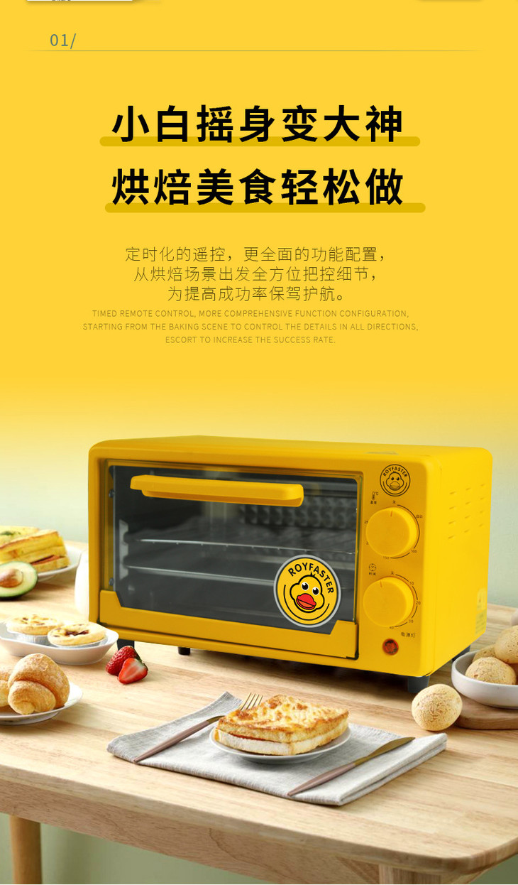【现货72小时发】Royfaster小黄鸭家用多功能电烤箱电烤炉大容量烘培箱便携式定 时烤箱工厂直发