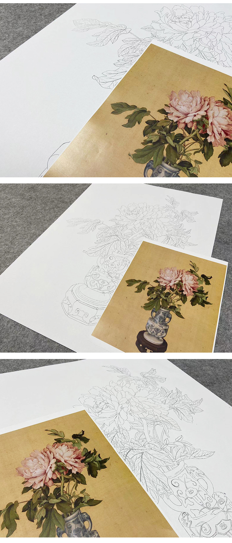 【大彩图】郎世宁工笔画白描底稿《瓶花图》花瓶临摹勾线花鸟线稿LS10