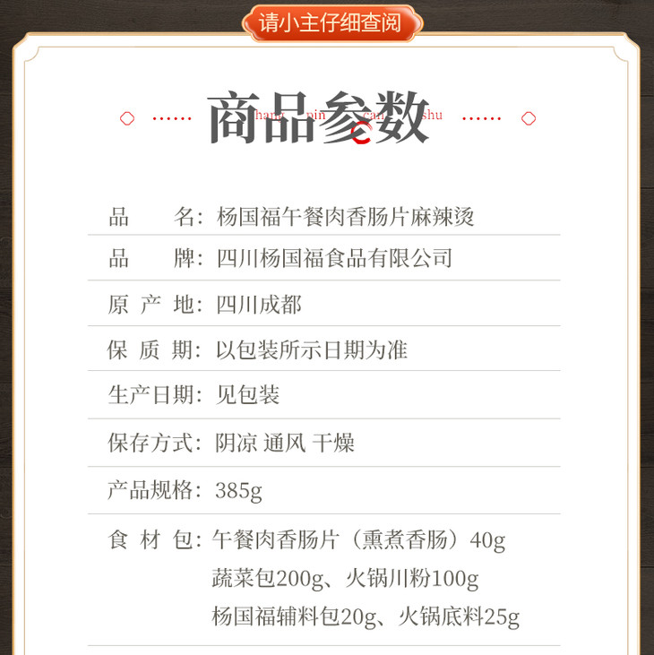 385g杨国福自热麻辣烫(午餐肉香肠片)