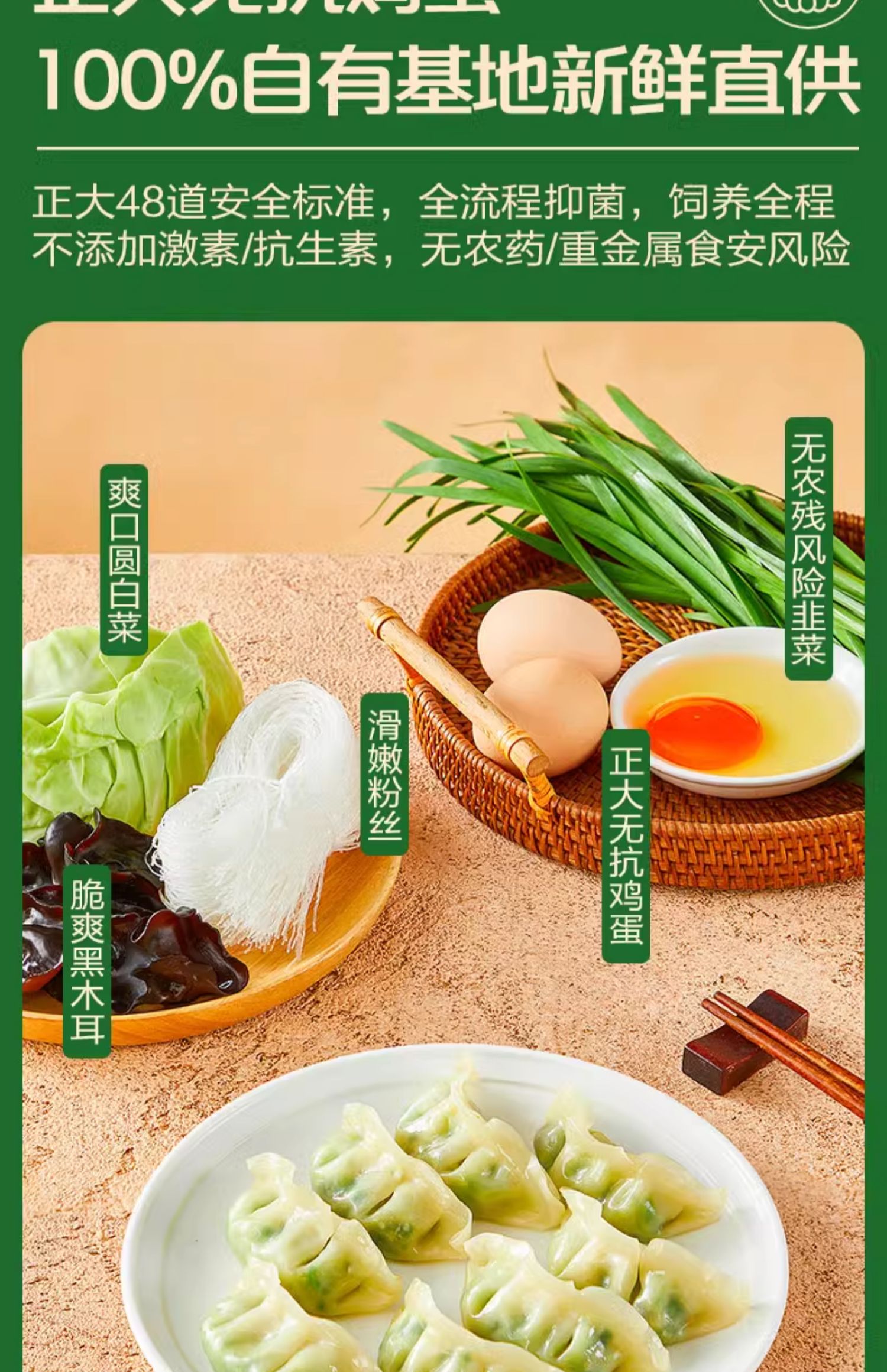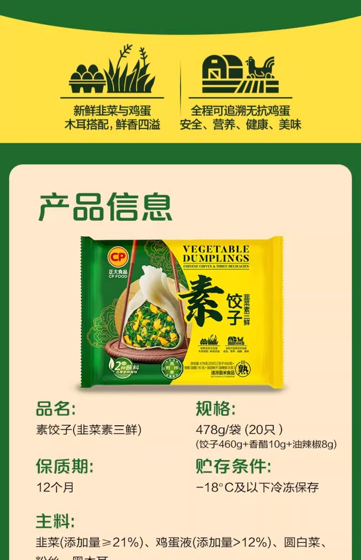 478g正大素饺子(韭菜素三鲜) 无抗生素鸡蛋 纯素体验 鲜香不腻