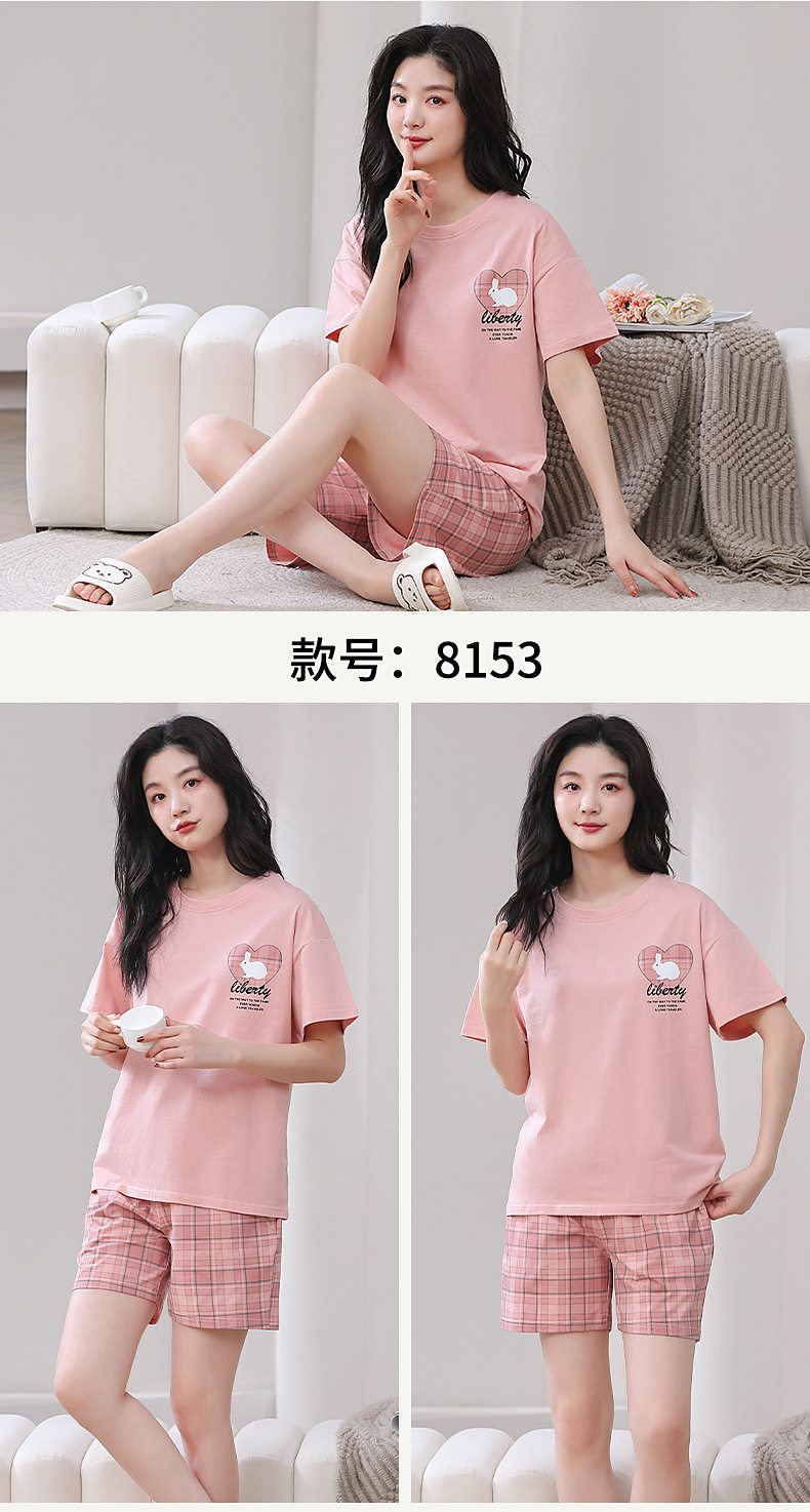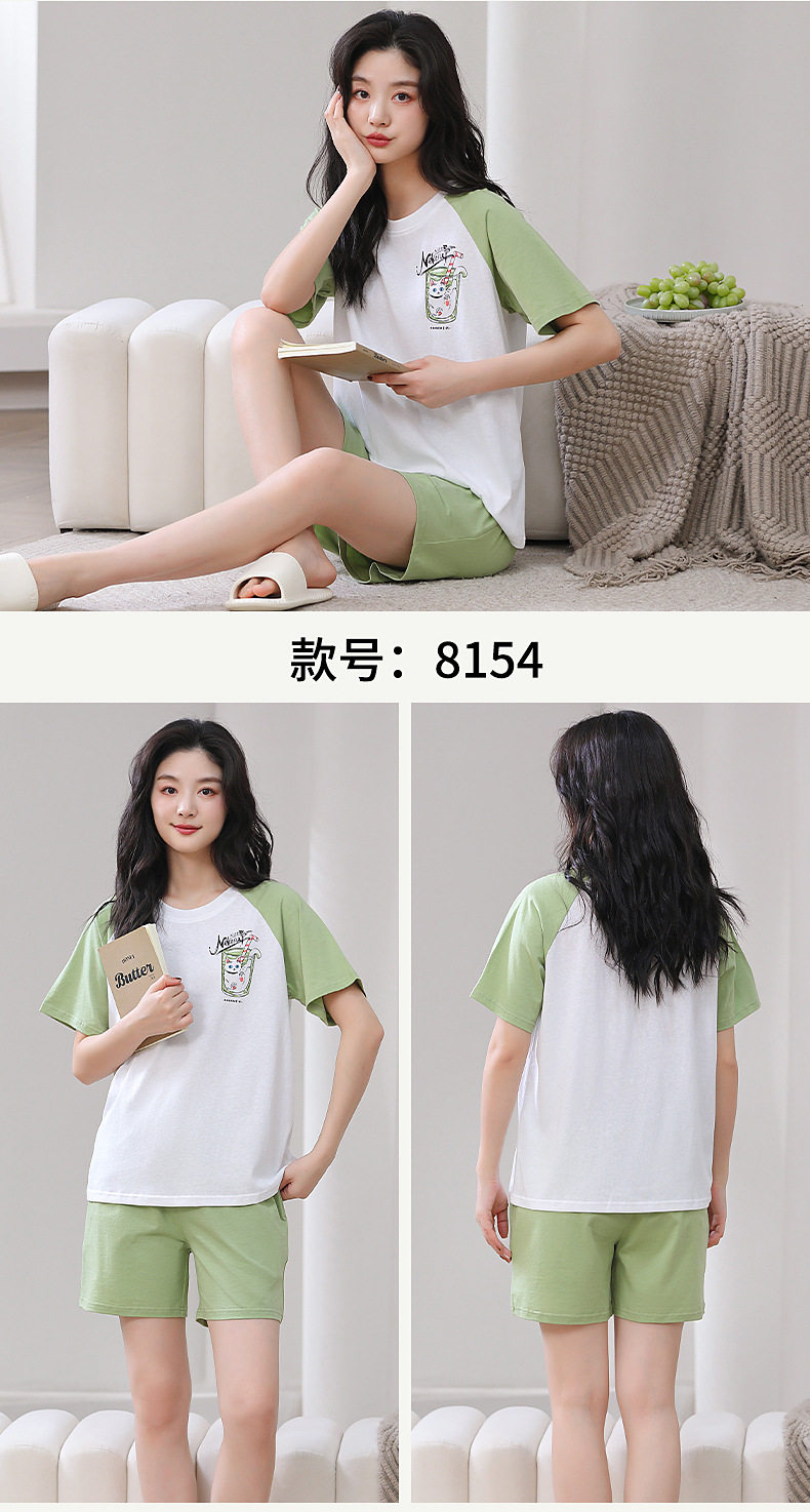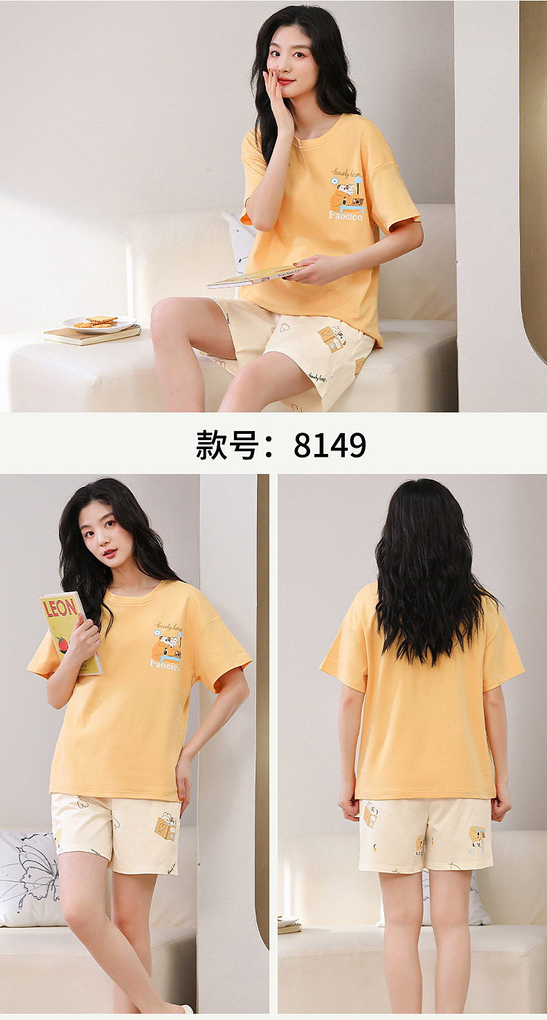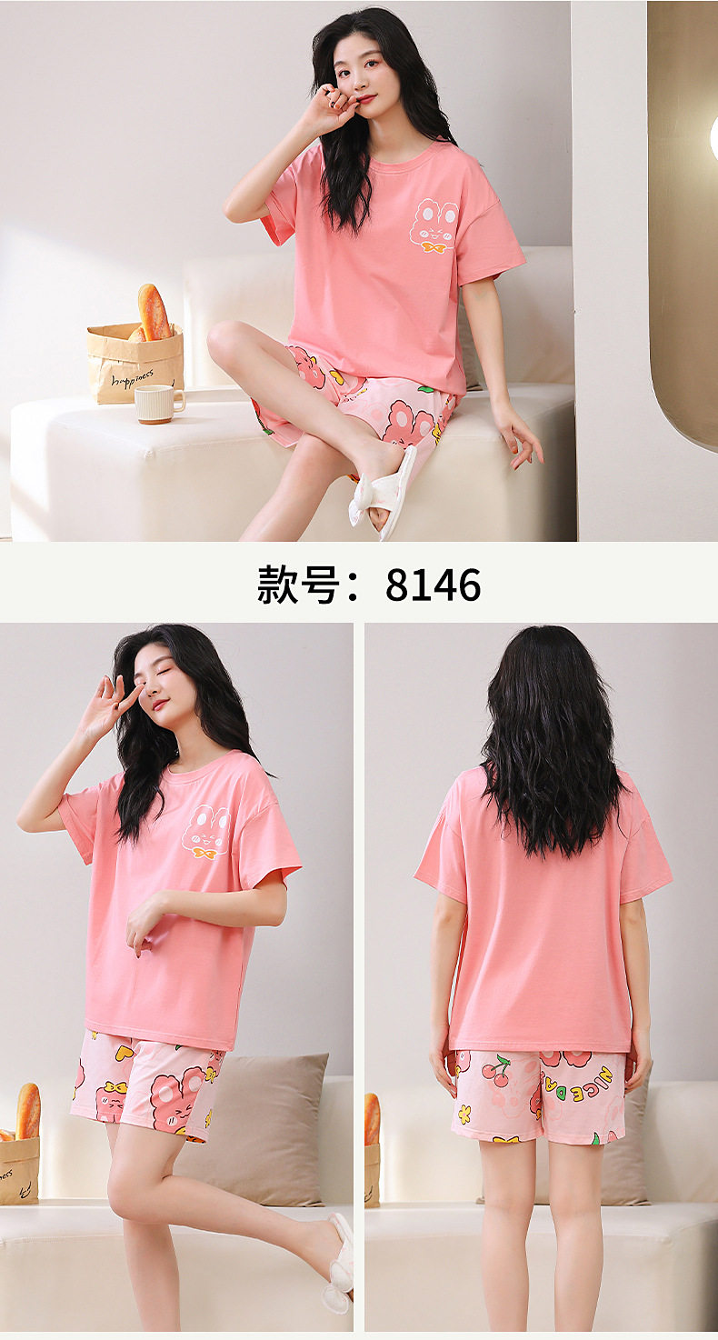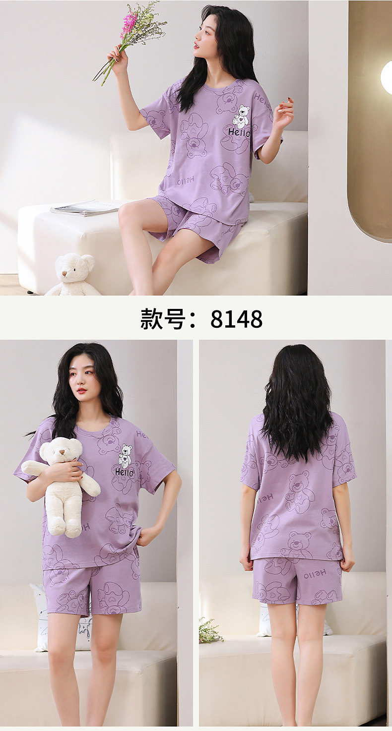 夏季睡衣女纯棉短袖短裤两件套装夏季薄款凉爽卡通印花家居服 JL-YS8139/8140/8141/8142/8146/8147/8148/8149/8152/8153/8154/8156