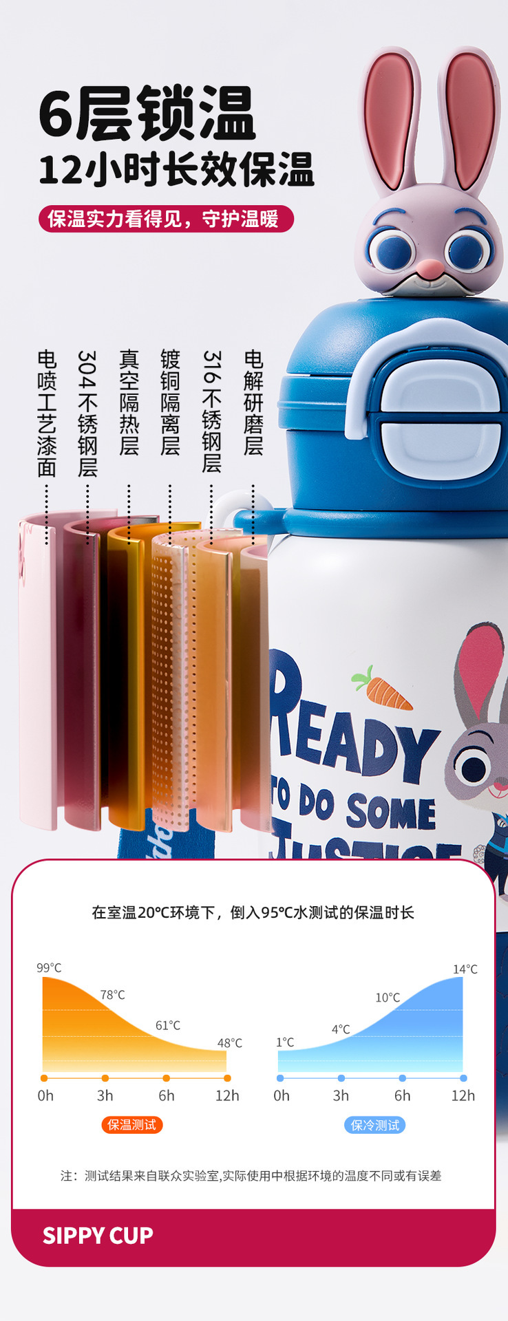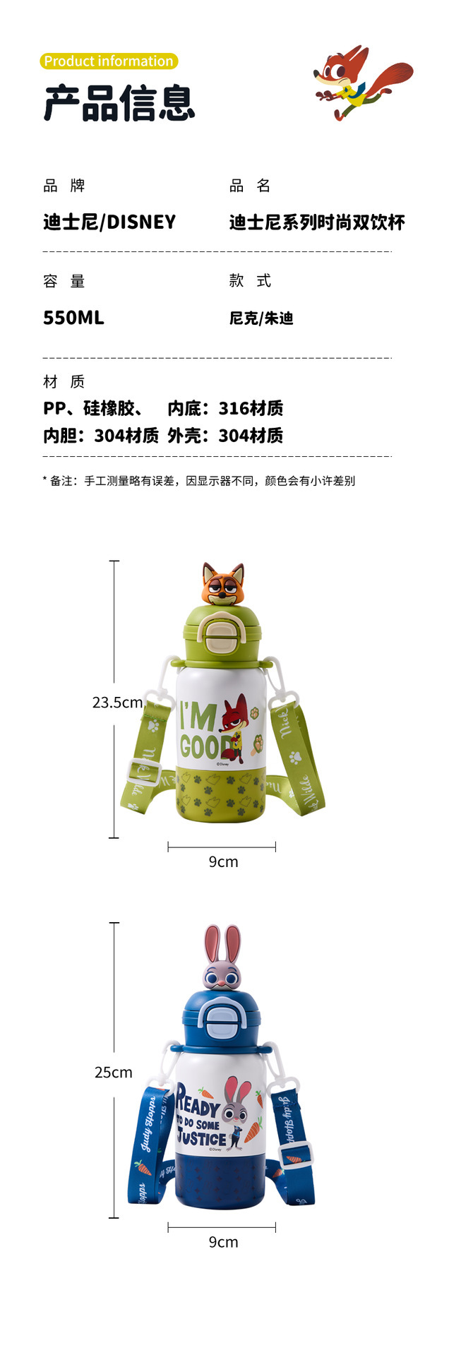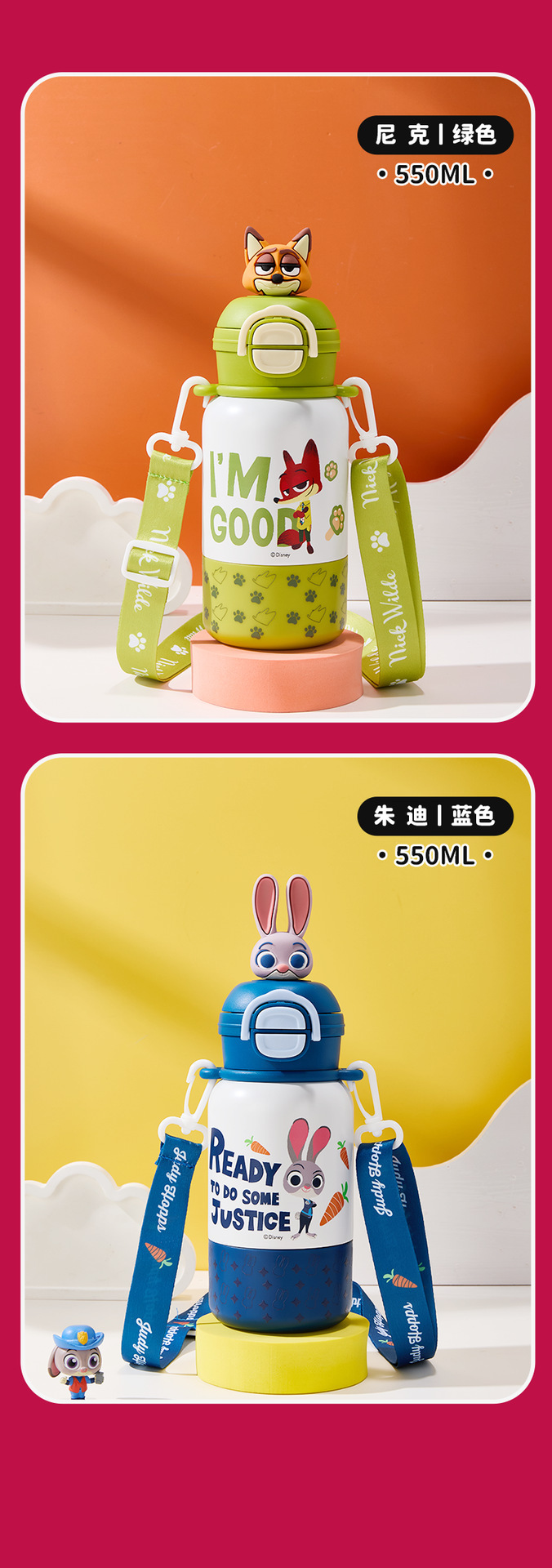 【一盖双饮❗️萌力满满】迪士尼儿童保温杯疯狂动物城上学专用带杯绳双饮水杯男女吸管杯子。jb