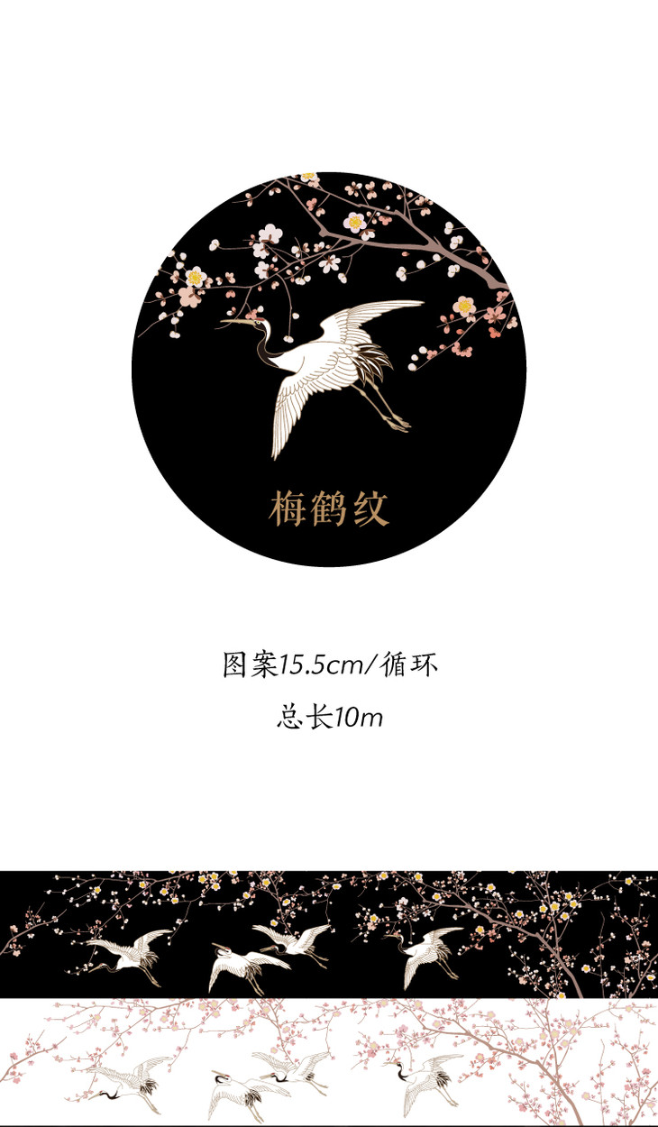 梅花仙鹤图烫金/烫银和纸胶带套装