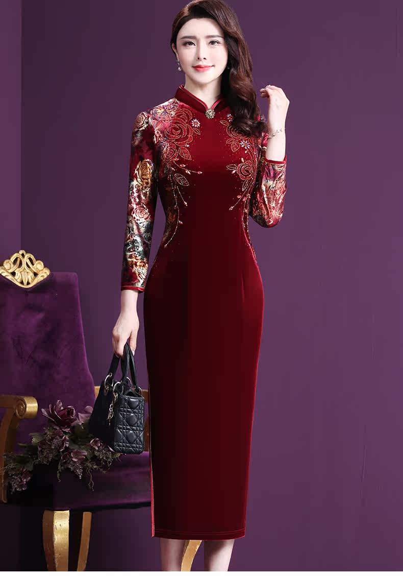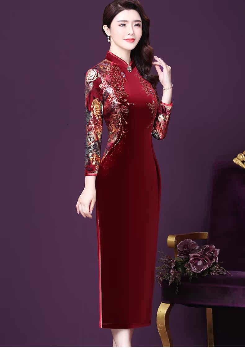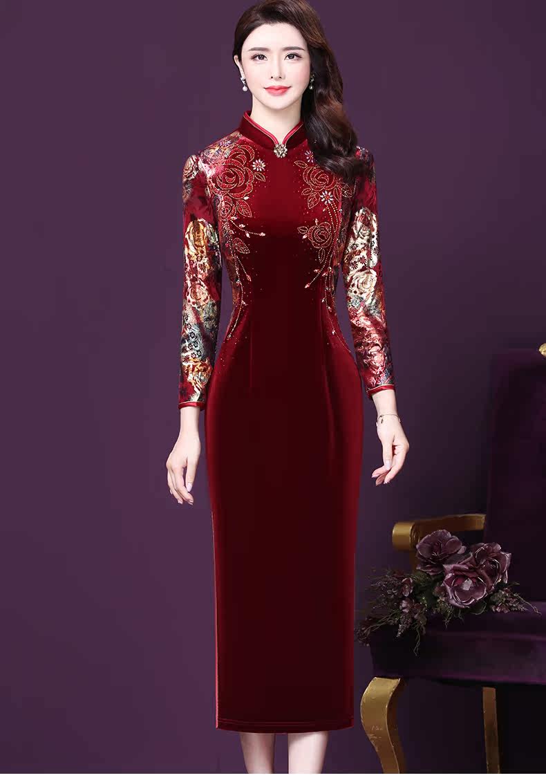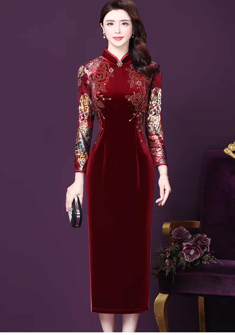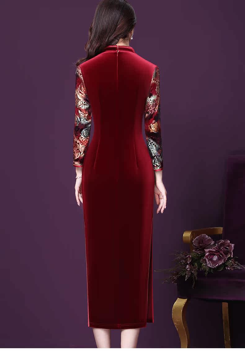 WXY-3963秋季新款修身旗袍气质妈妈婆婆婚宴连衣裙