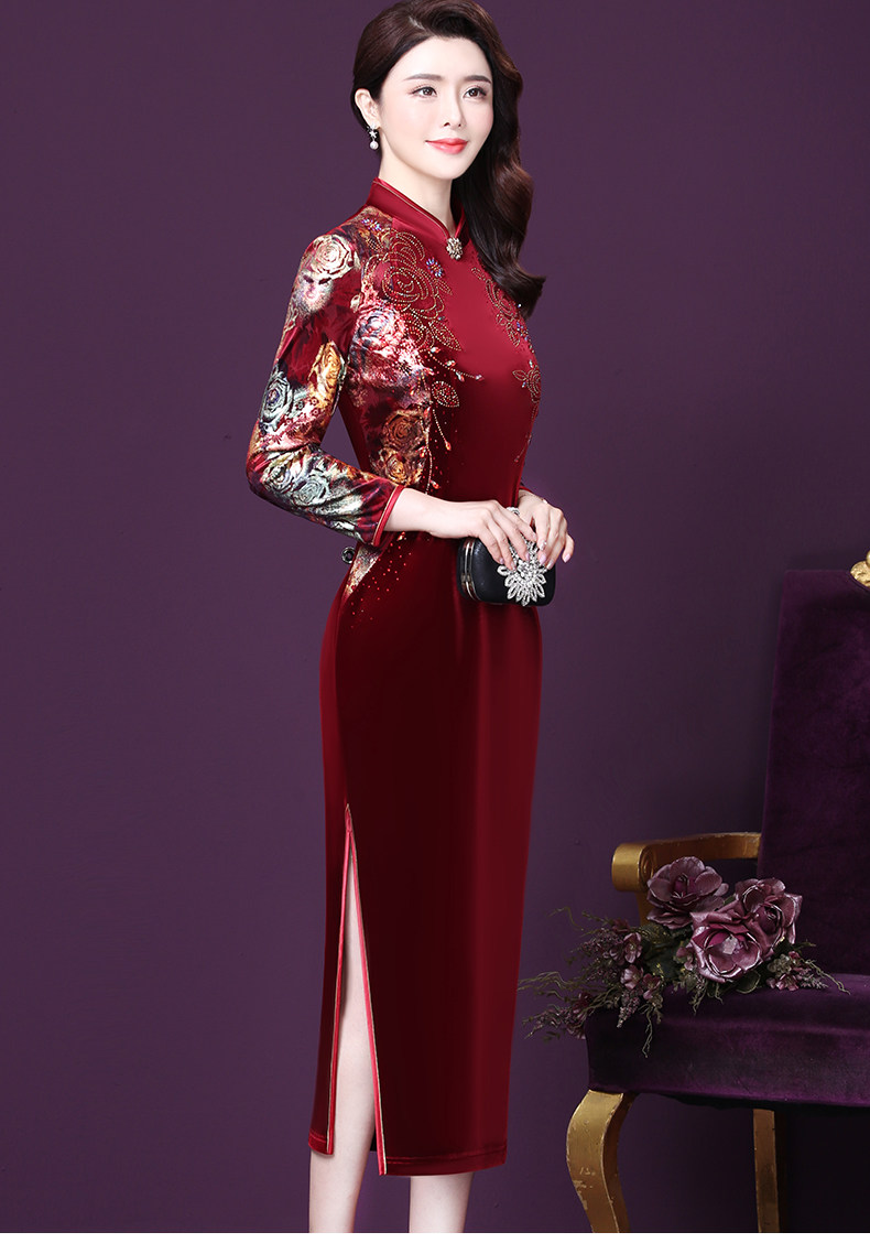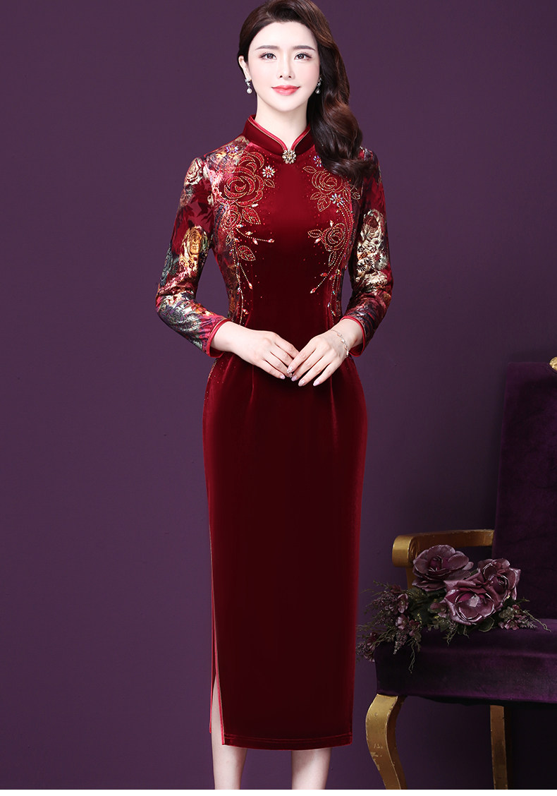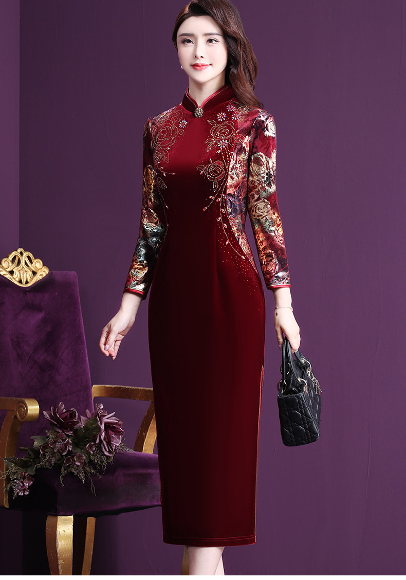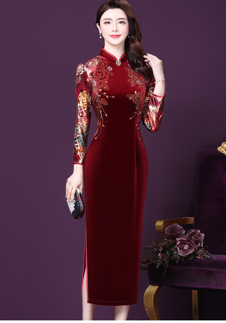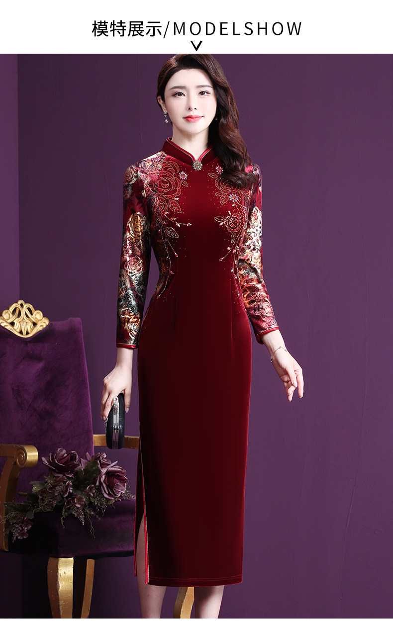 WXY-3963秋季新款修身旗袍气质妈妈婆婆婚宴连衣裙