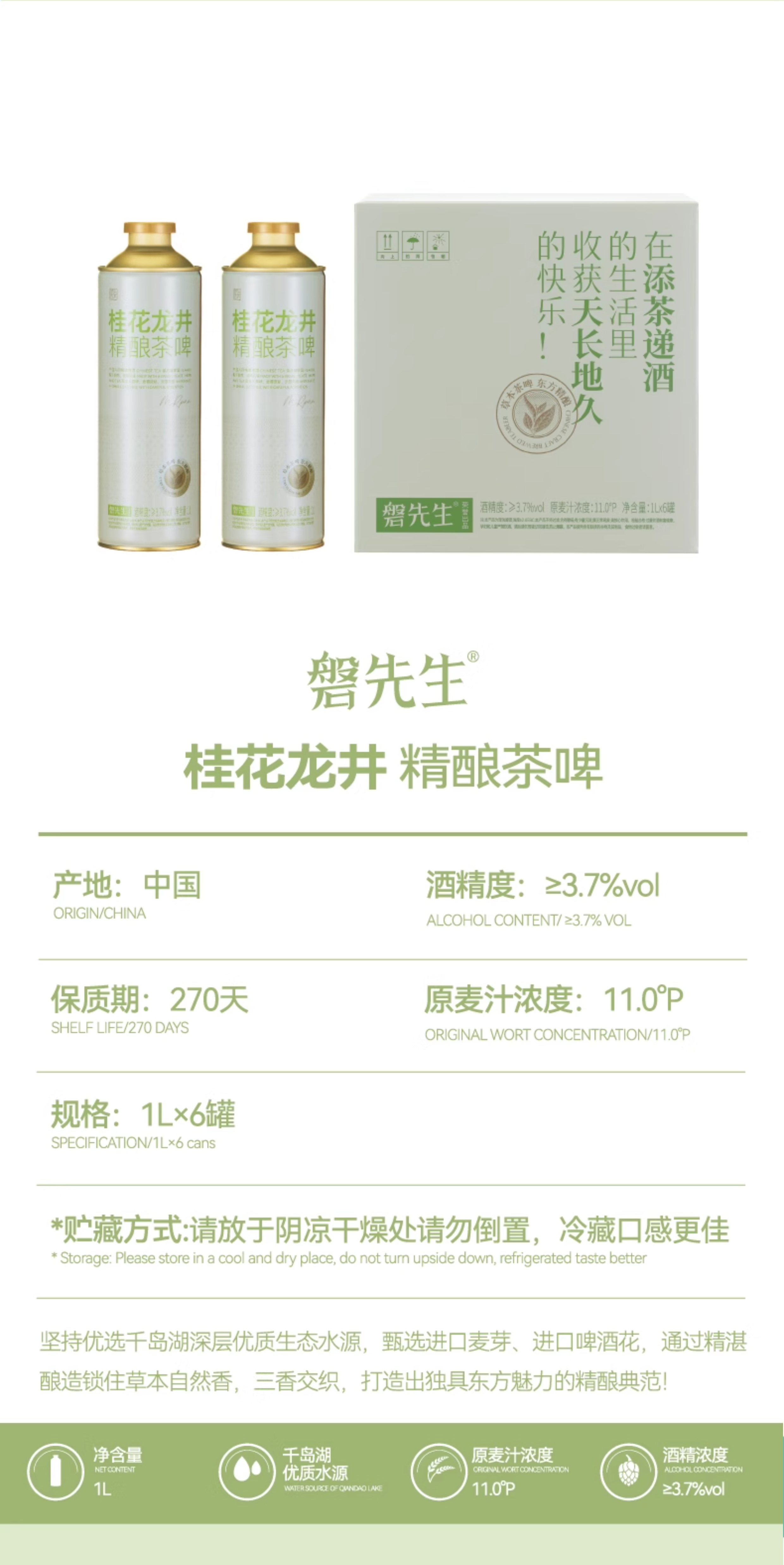 磐先生 千岛湖麦香啤酒中式精酿啤酒1L
