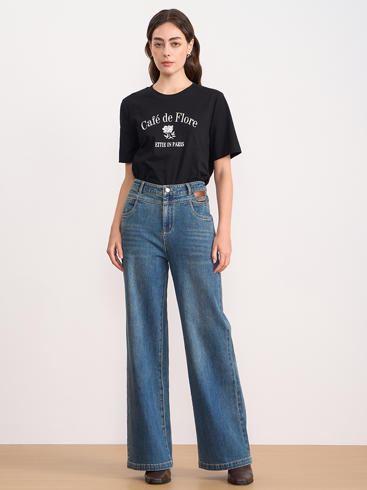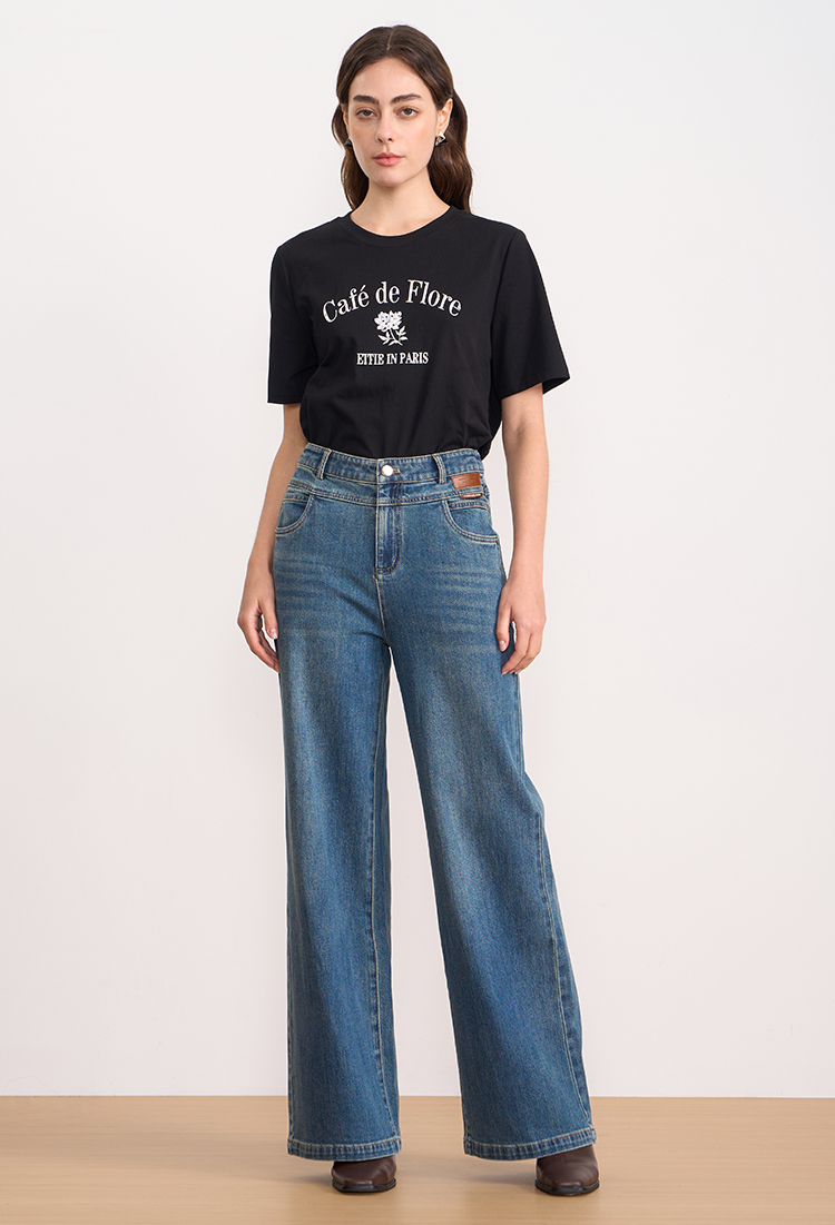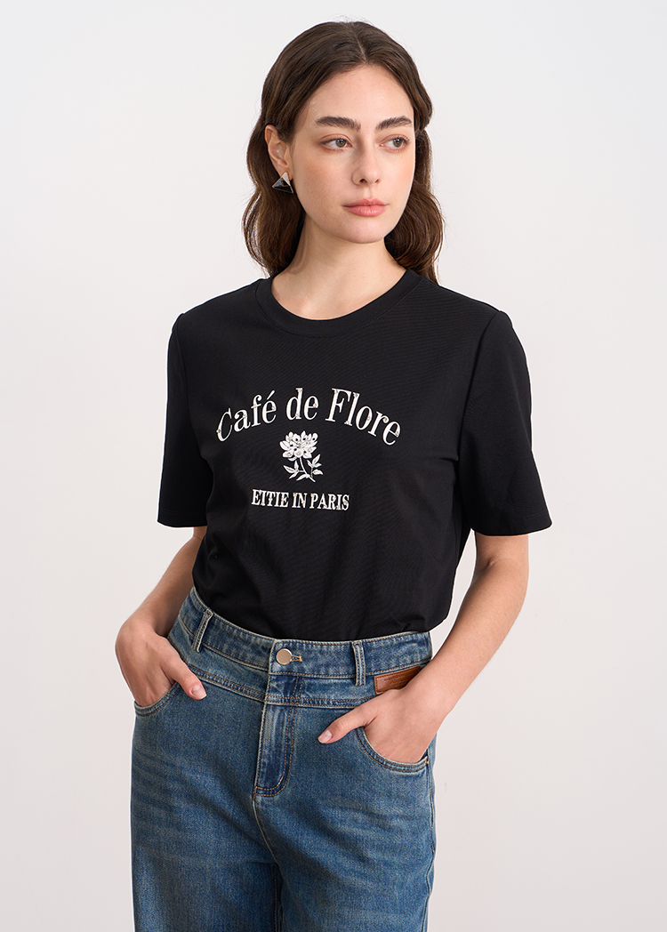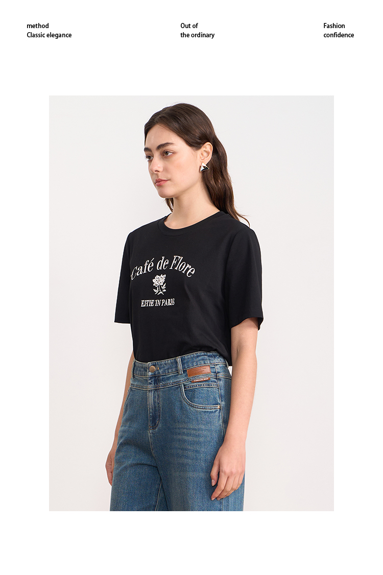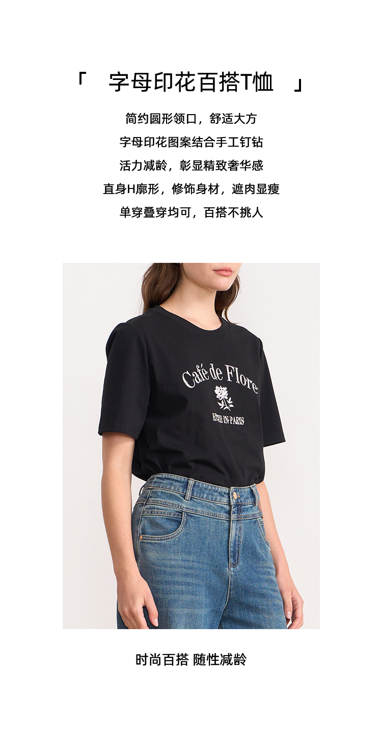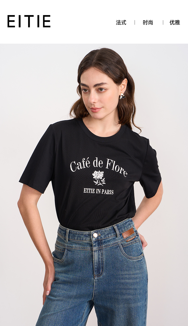 EITIE爱特爱夏季时尚百搭打底舒适圆领印花T恤女7702402