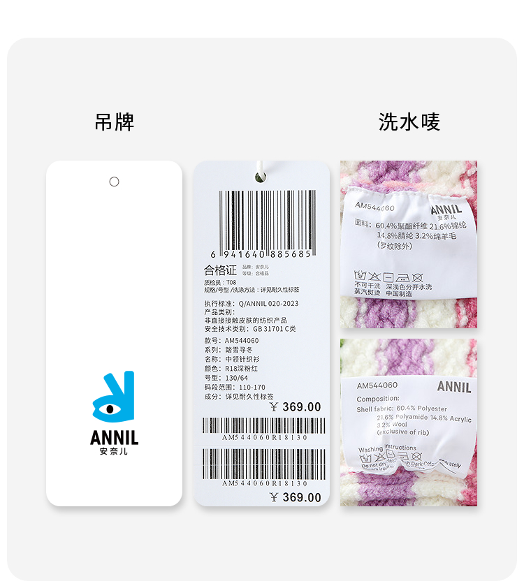 【实体店同款】男女童中领针织衫冬季新款安奈儿童装AM544060