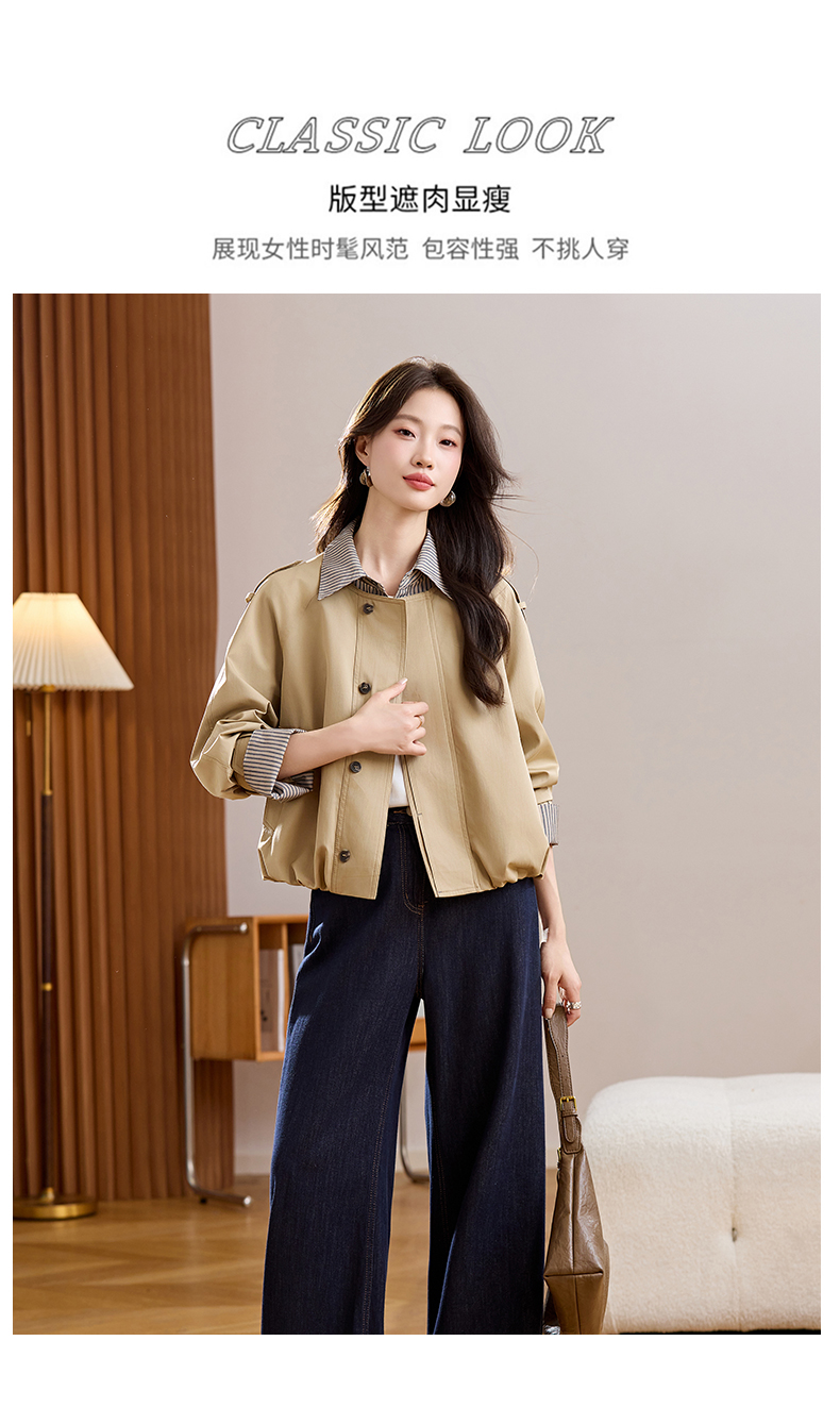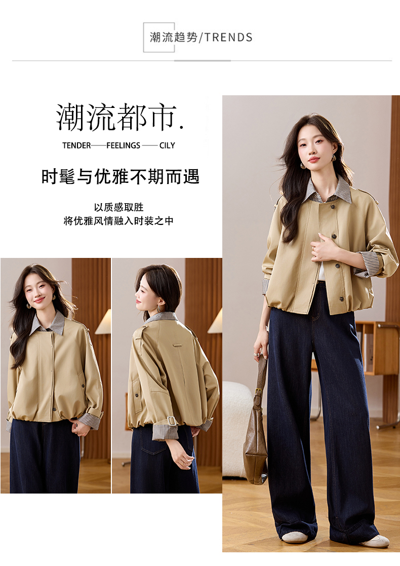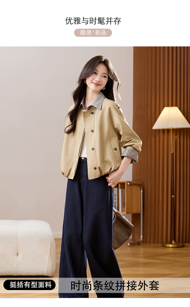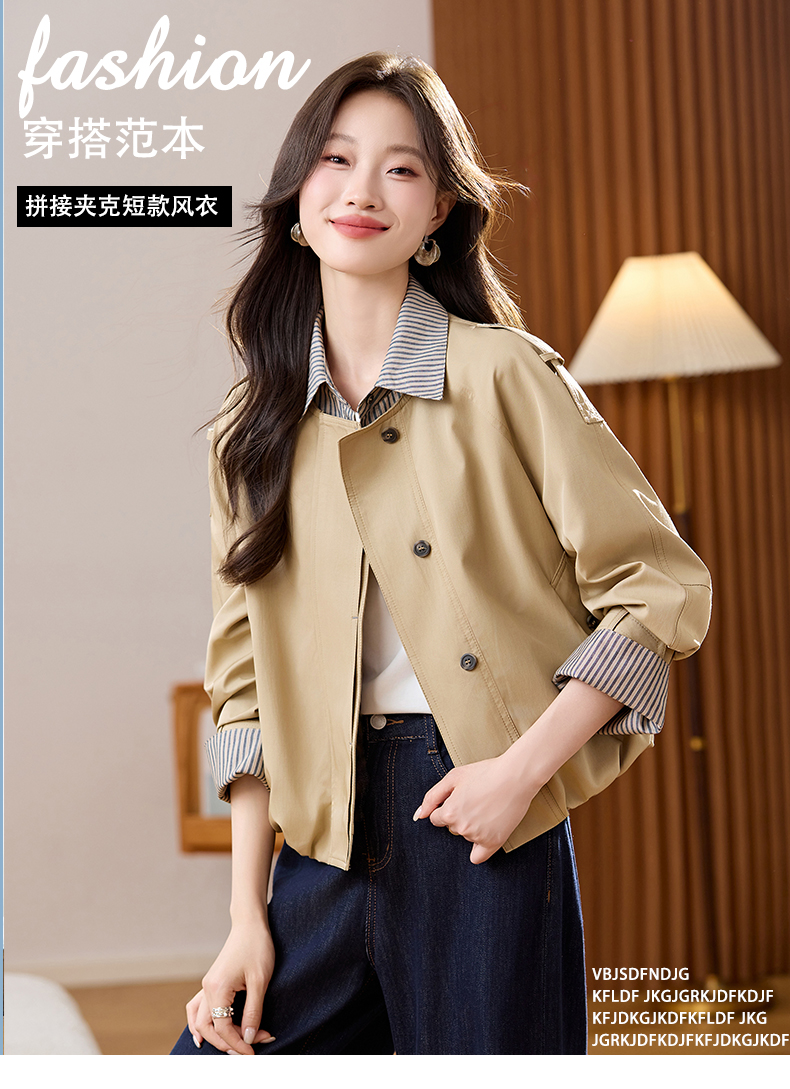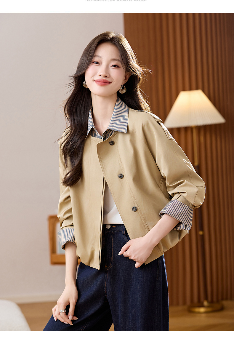 假两件拼接衬衫领短外套,通勤穿搭设计感上衣HR-1035
