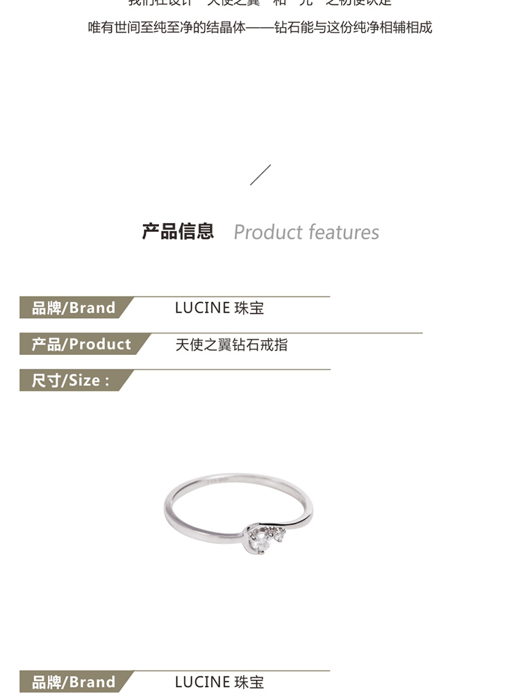 LUCINE 光天使之翼原创设计钻石戒指520礼物极简轻奢