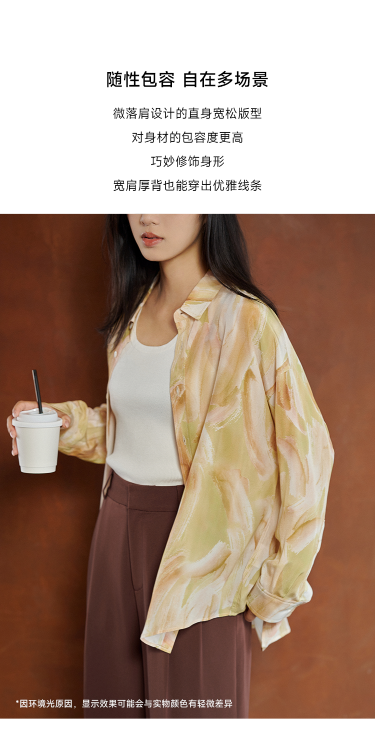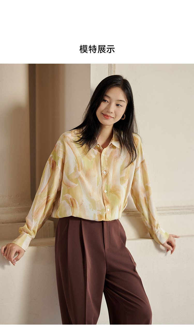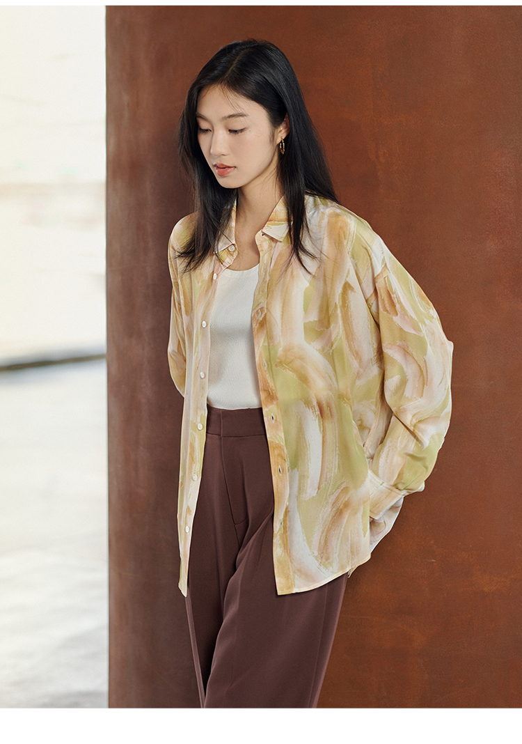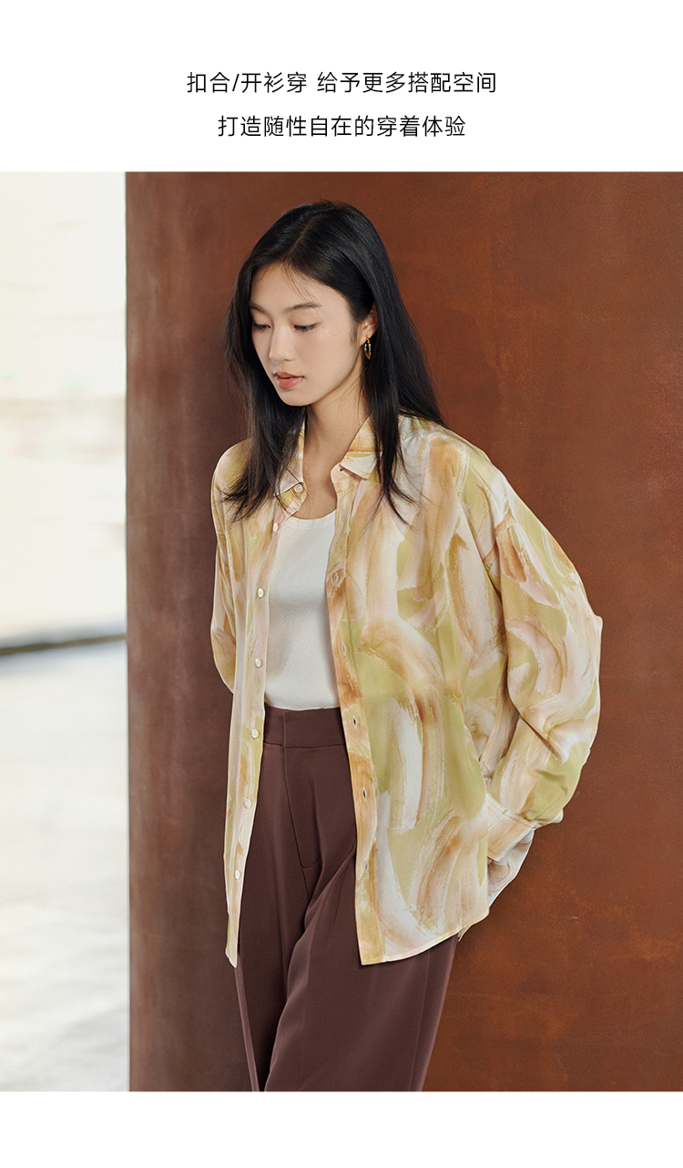 夏末油彩桑蚕丝印花衬衫FCE3SHT223