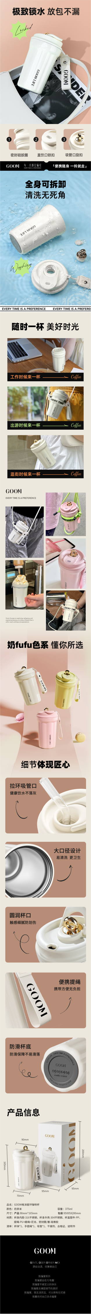GOOM 星环咖啡杯316不锈钢375ml大容量咖啡杯(GM-23AW-K1)