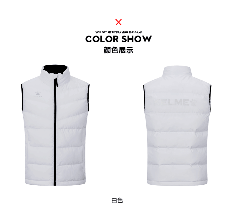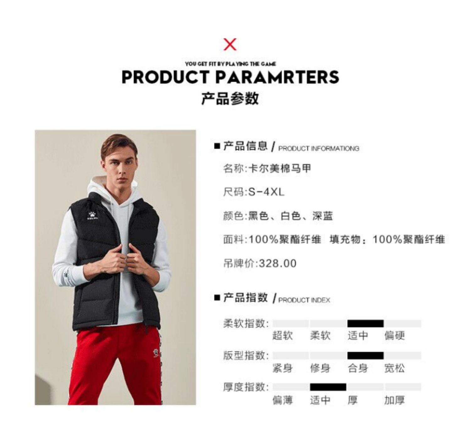 kelme卡尔美 运动棉马甲男秋冬足球训练背心定制logo保暖棉服外套