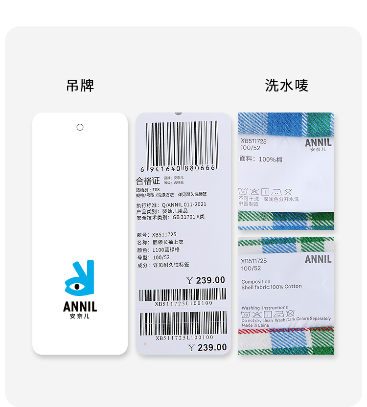 【实体店同款】男童翻领长袖衬衣春季新款安奈儿童装XB511725