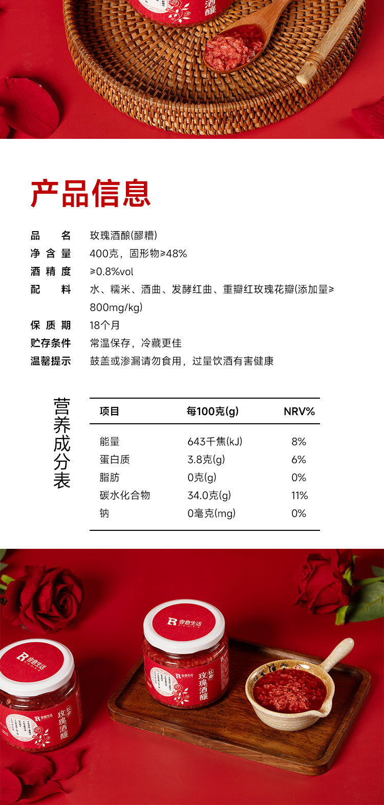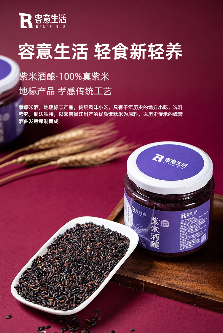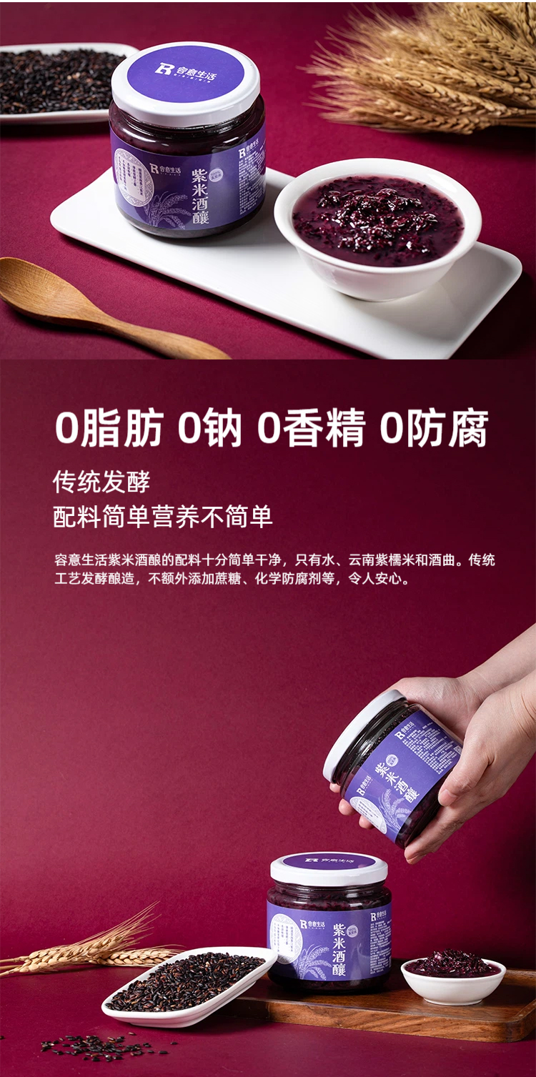 容意生活酒酿组合400g瓶装孝感醪糟月子米酒圆子紫米酒酿红曲玫瑰酒酿鸡蛋包邮