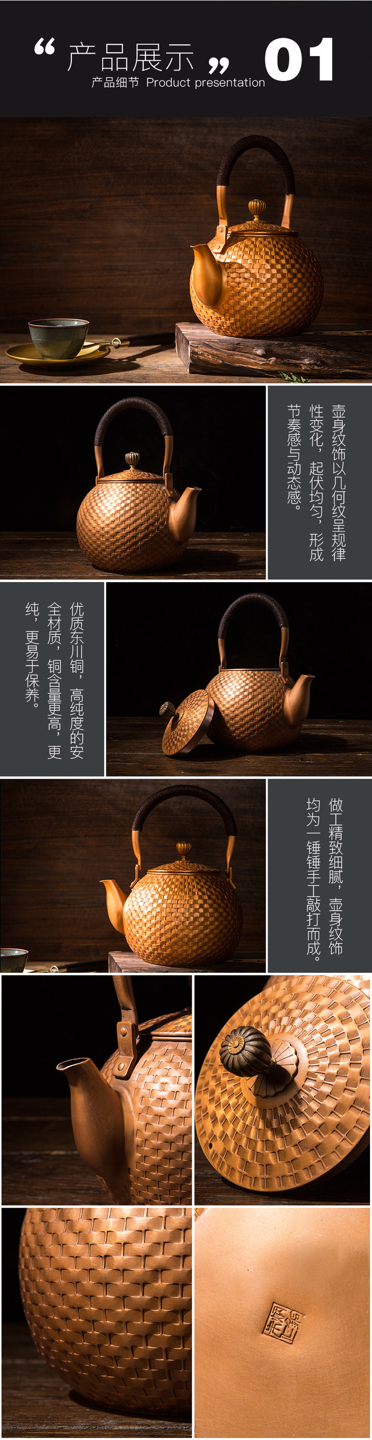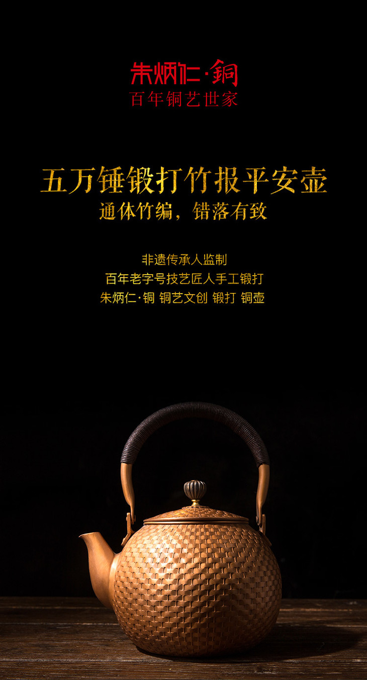 朱炳仁铜 竹报平安壶 紫铜抑菌茶具茶壶铜壶家居装饰摆件 工艺品