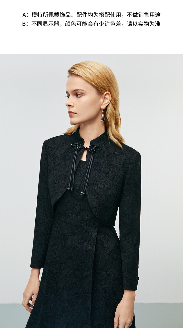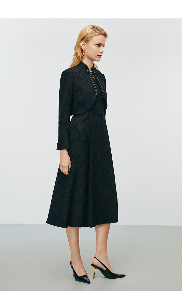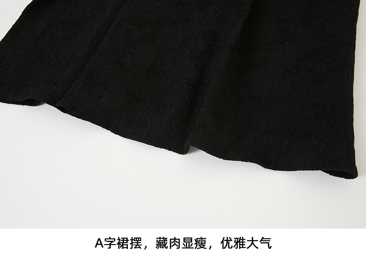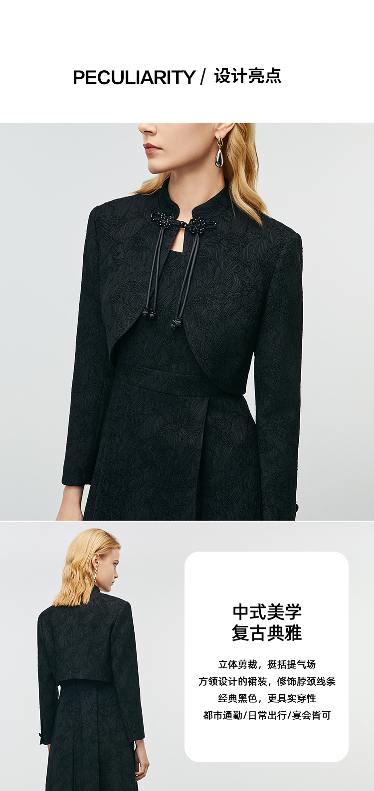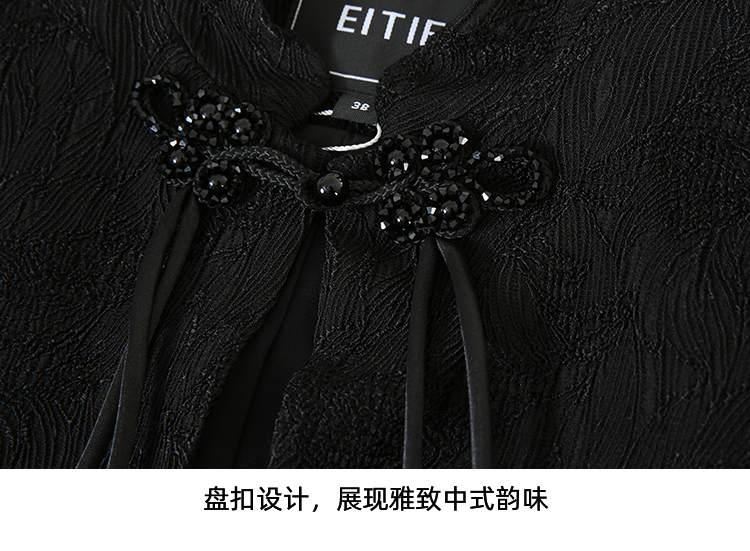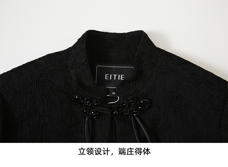 EITIE爱特爱秋季新款新中式改良旗袍暗纹黑色显瘦礼服连衣裙7977612