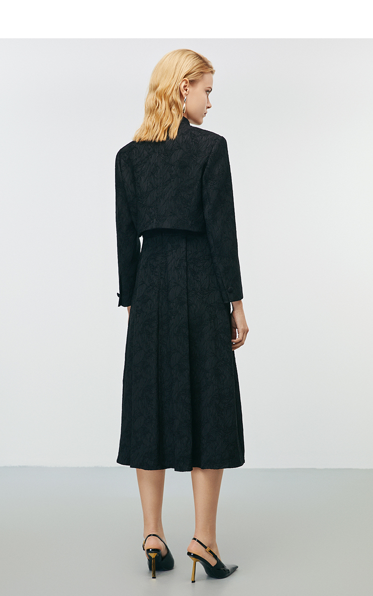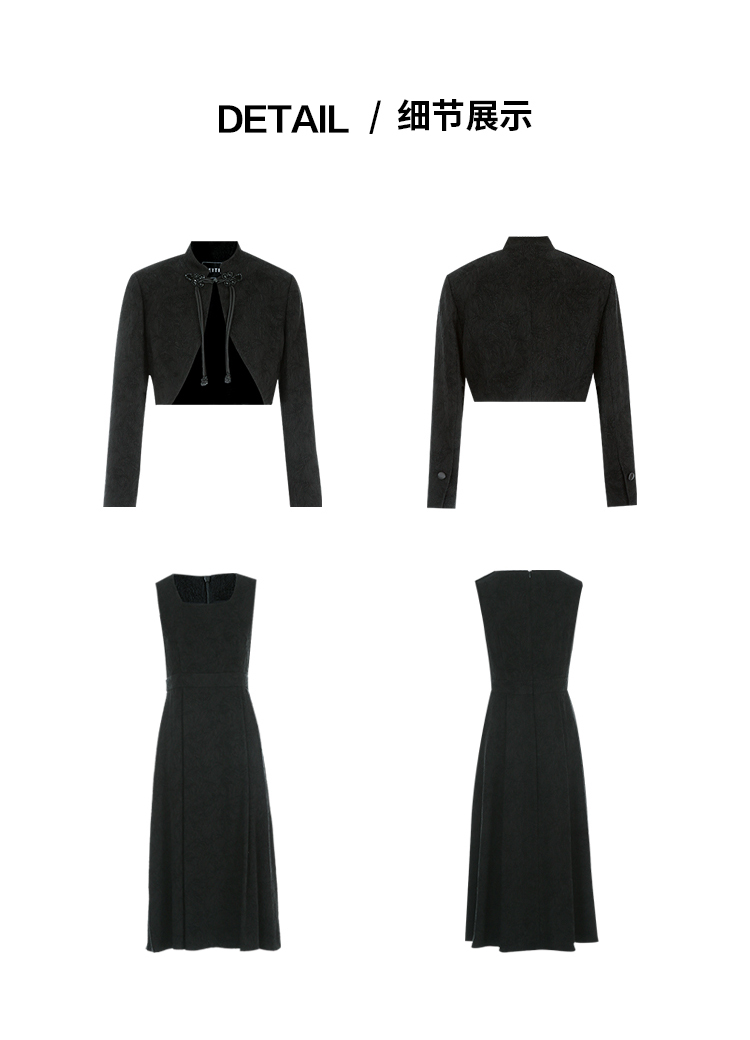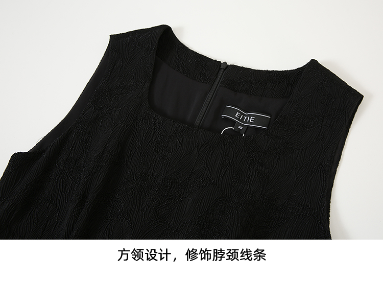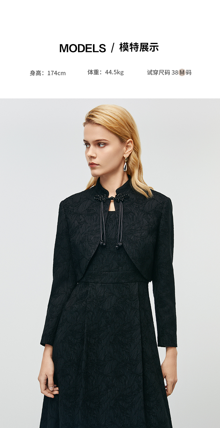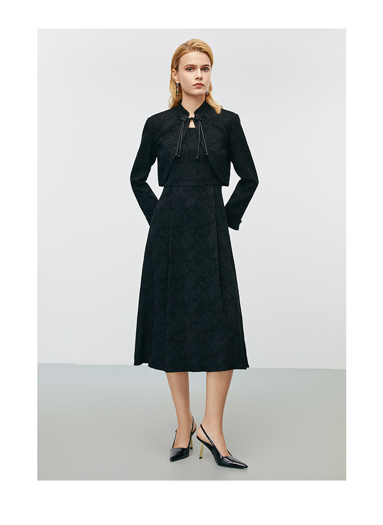 EITIE爱特爱秋季新款新中式改良旗袍暗纹黑色显瘦礼服连衣裙7977612
