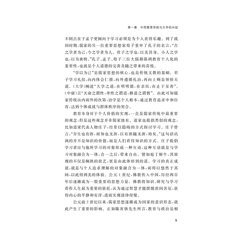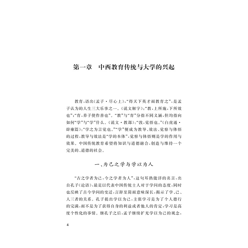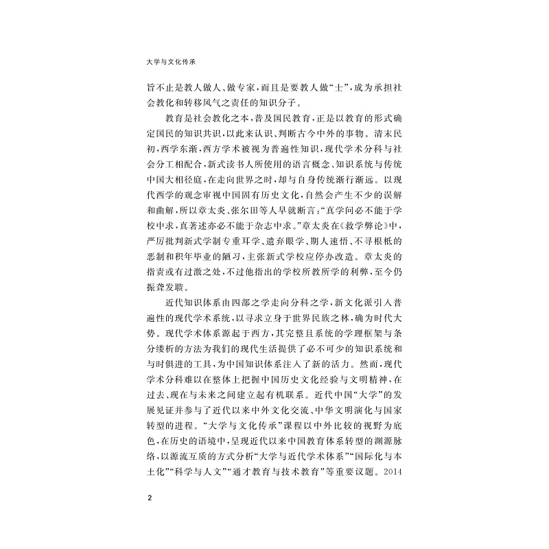 本教材以中外比较的视野,梳理中西传统教育的源流与现代大学的兴起,再聚焦于中西学术融汇时期,中国教育体制的转型,中西教育思想的对话,考察近代大学吸纳西学,转承中国传统学术的实践,聚焦于“大学与近代学术体系”、“国际化与本土化”、“通才教育与专门教育”、 “科学与人文”等重要议题,提出大学应当融汇古今中西新旧,构筑开源的思想文化高地,从中华优秀传统文化和世界文明遗产中萃取思想精华,锤炼时代价值,发挥思想汇聚的功能,让全球性的思想文化在大学碰撞出火花,文明互鉴提供有效的平台与路径。