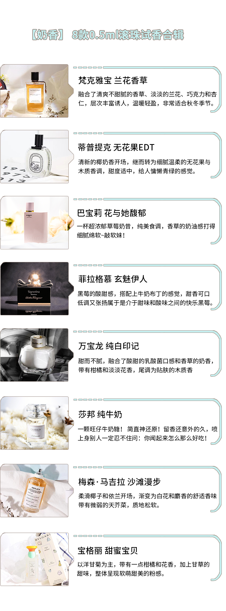 【奶香】合辑 8款 0.5ml滚珠试香——软糯温馨,甜蜜如初