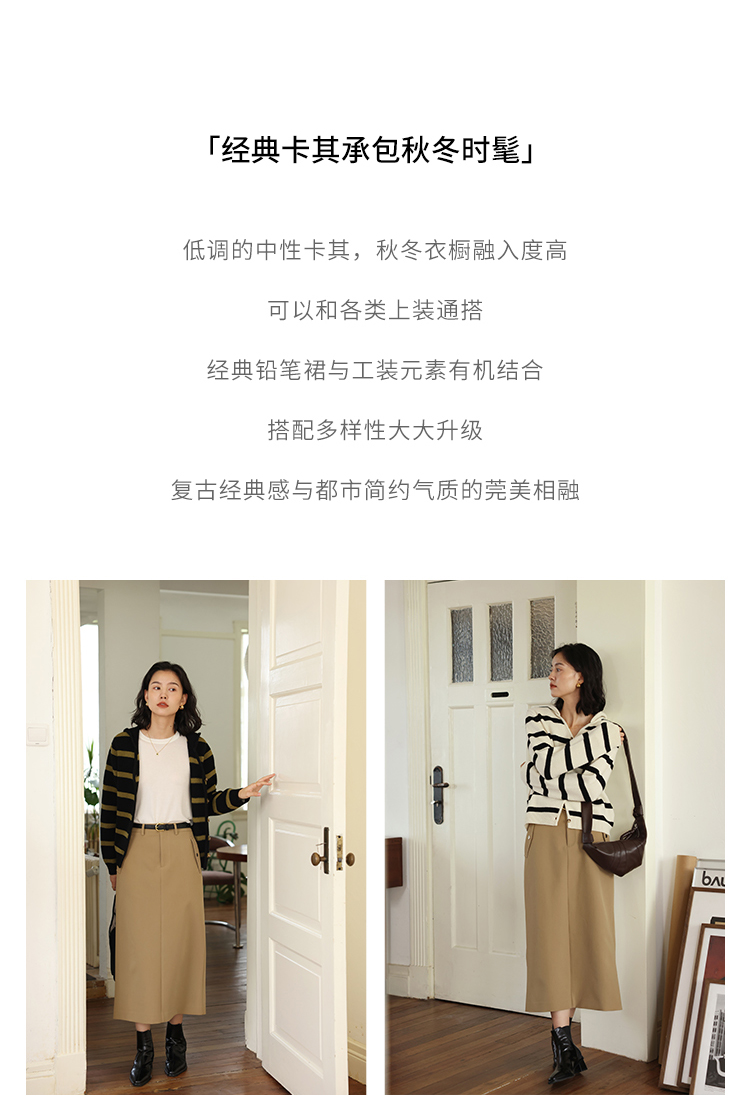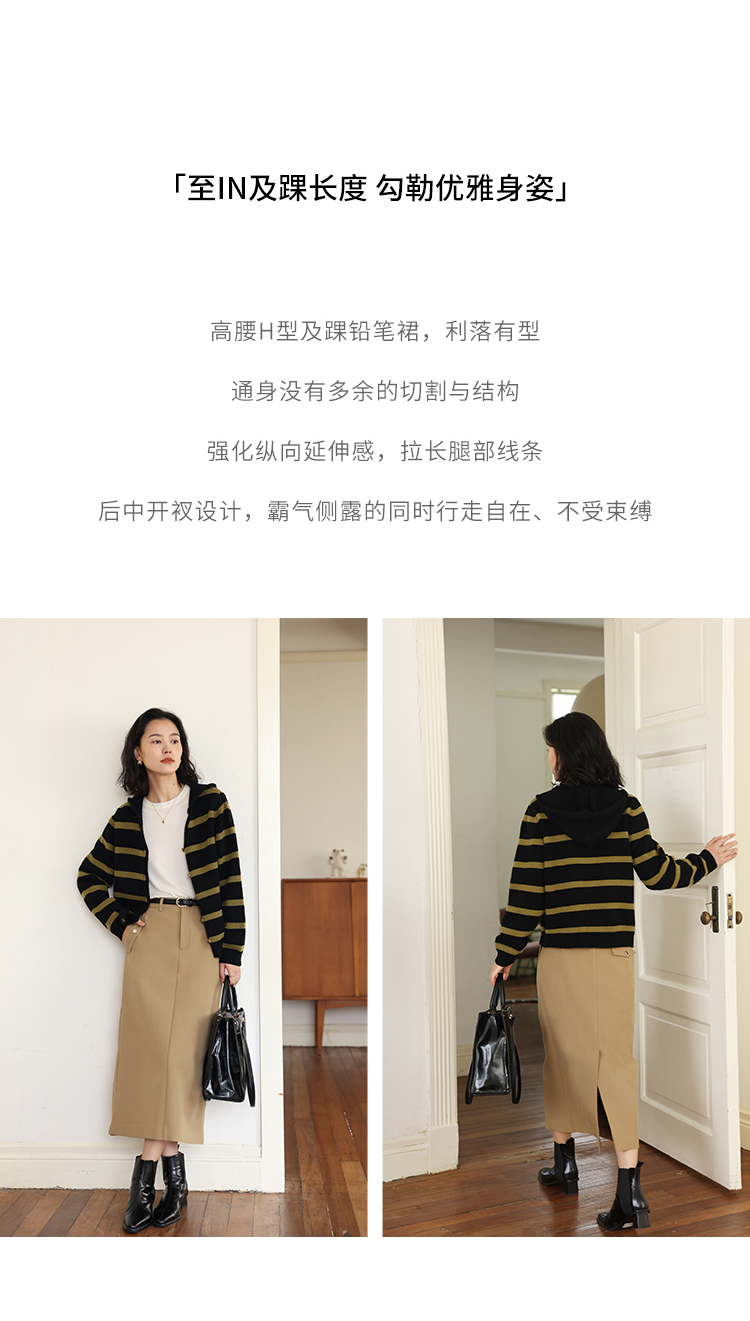 HeyDress法式直筒半身裙高腰中空纱半裙显瘦开叉工装裙子