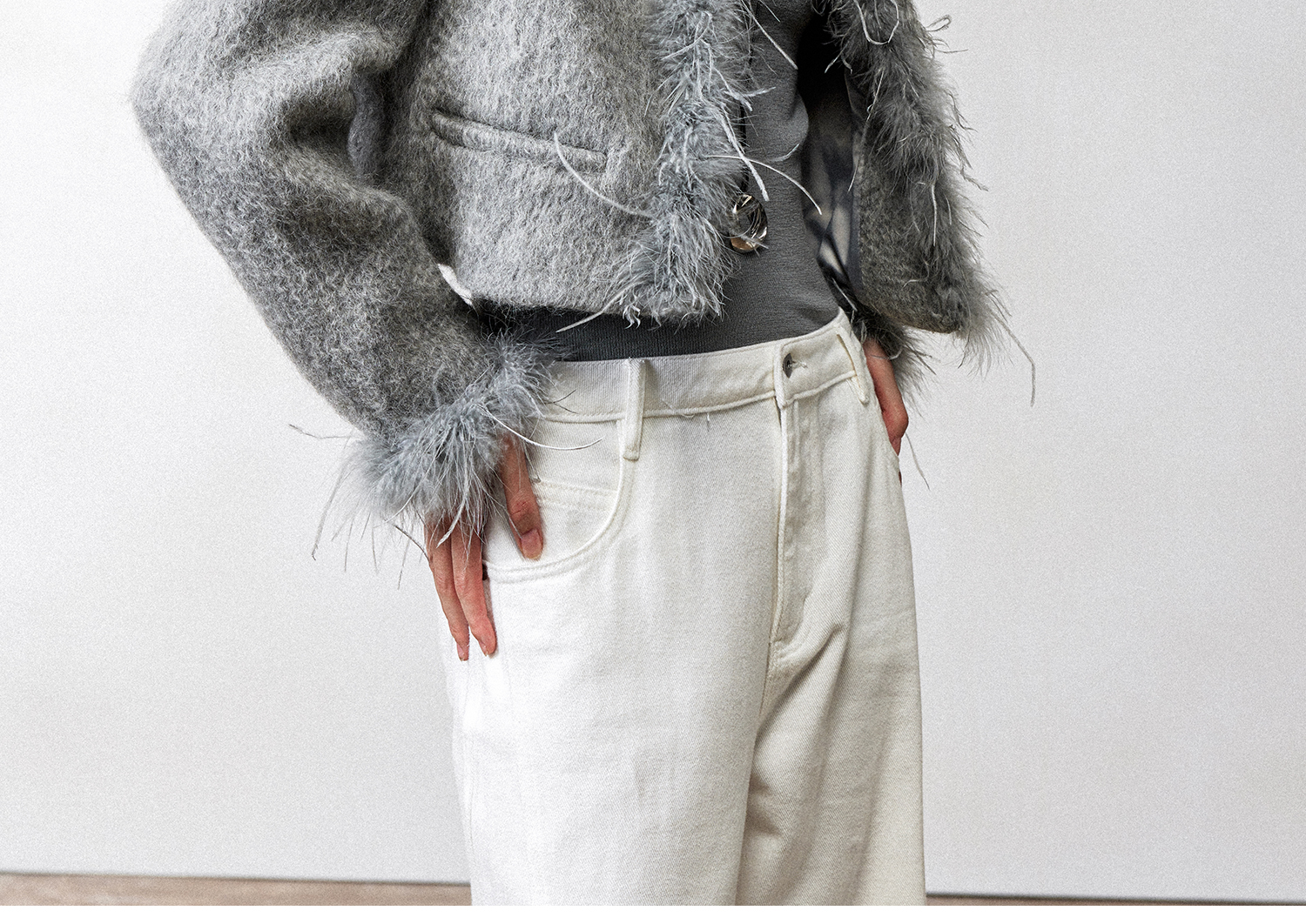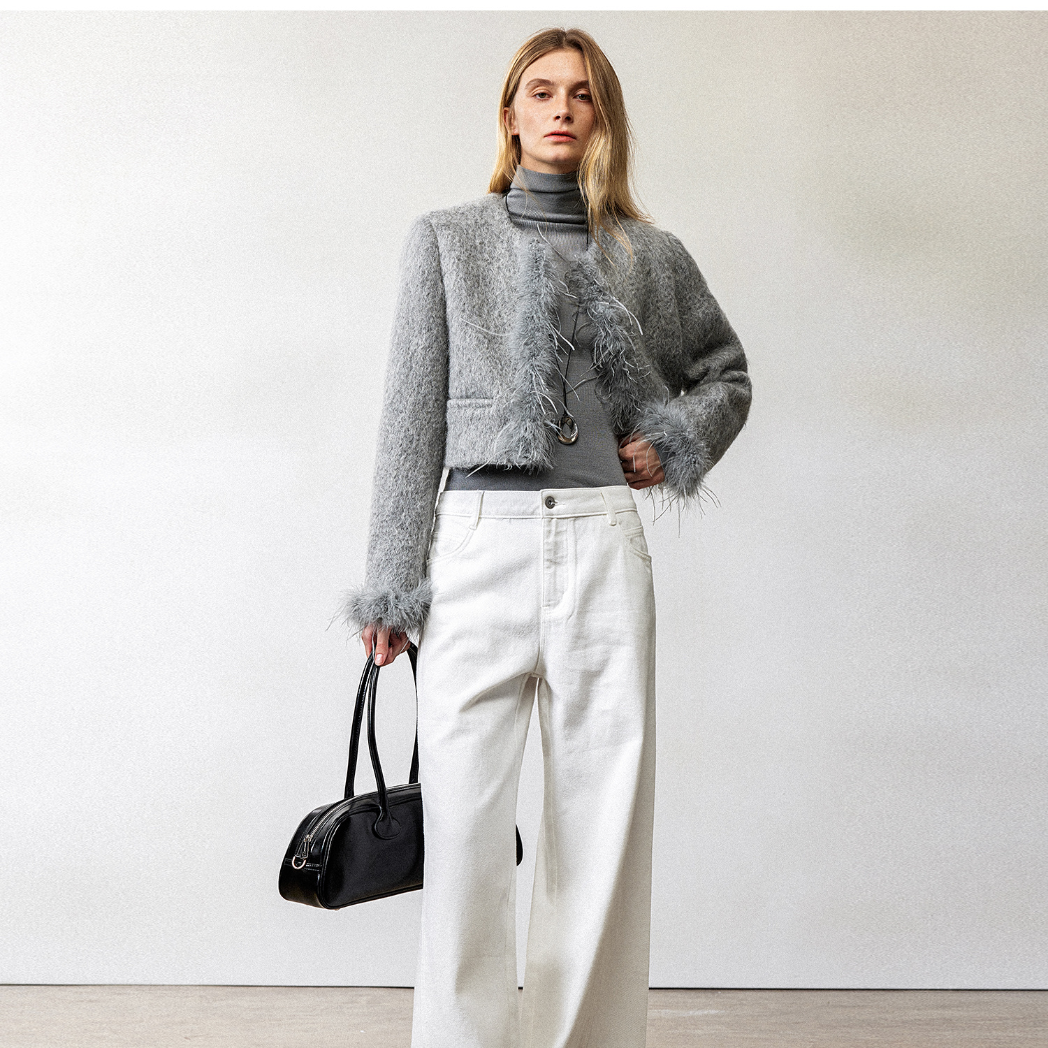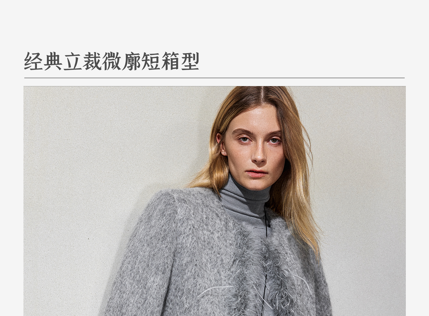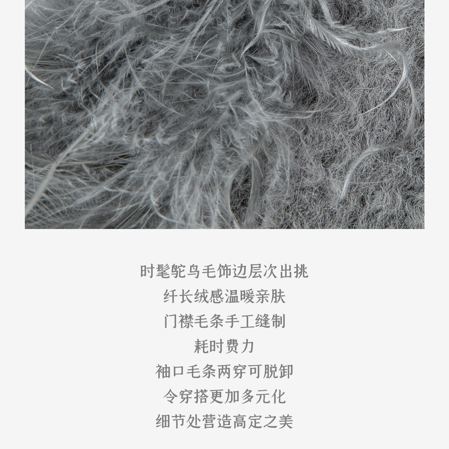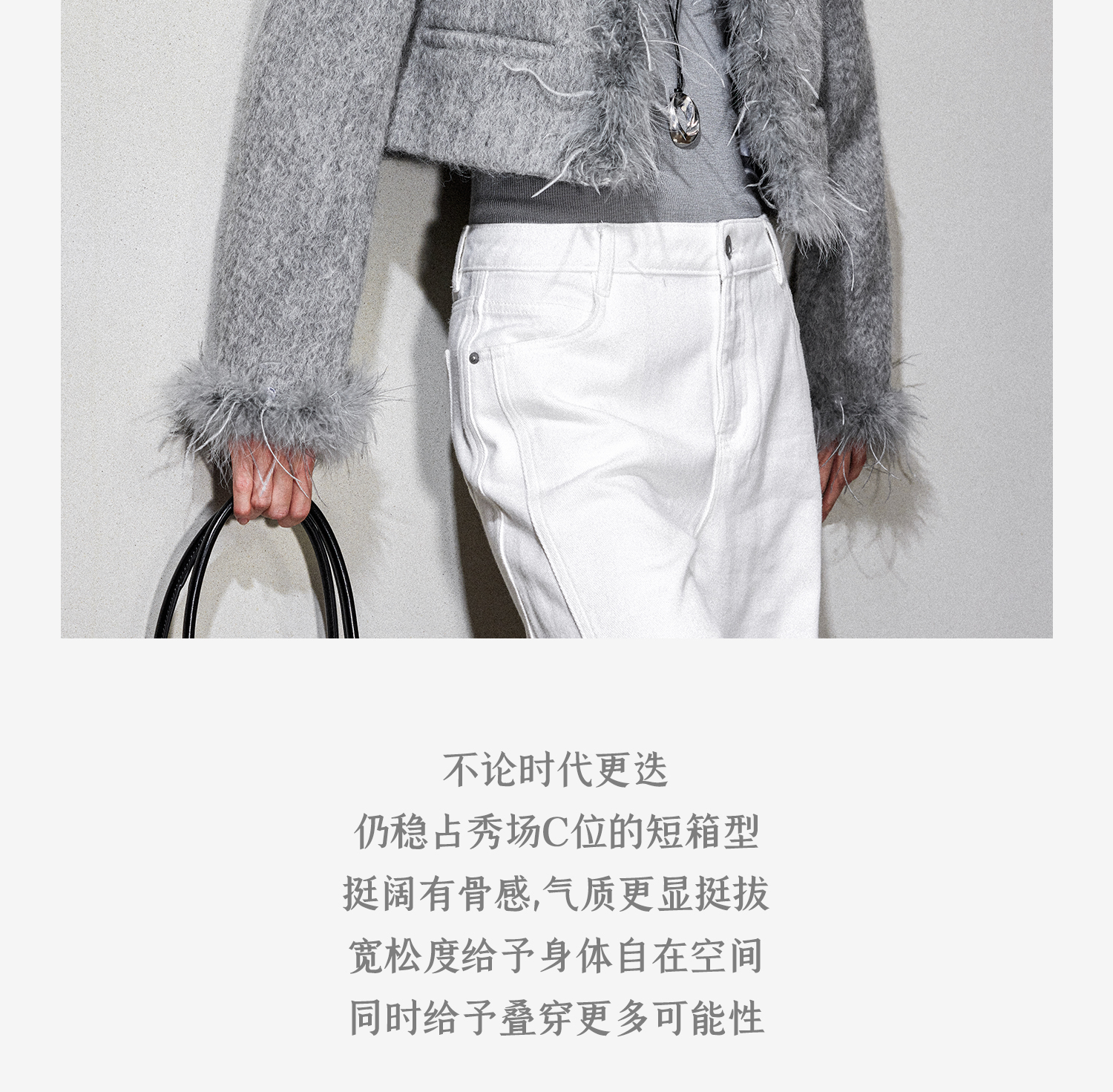西嘉鸵鸟毛装饰格雷千金风羊毛夹克外套2024冬新(货号:WT2404012)