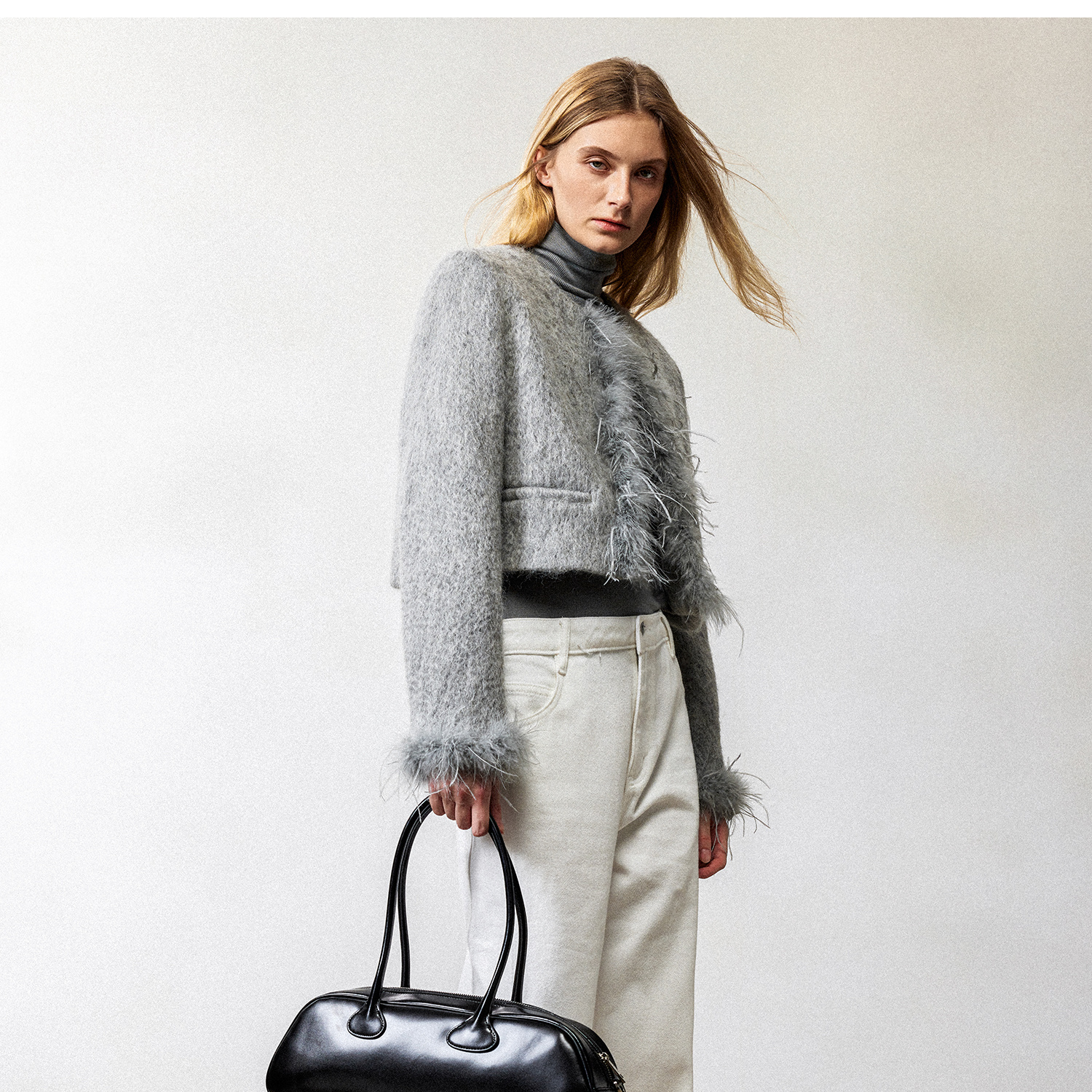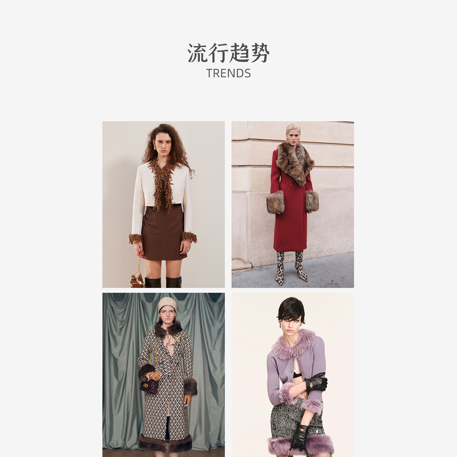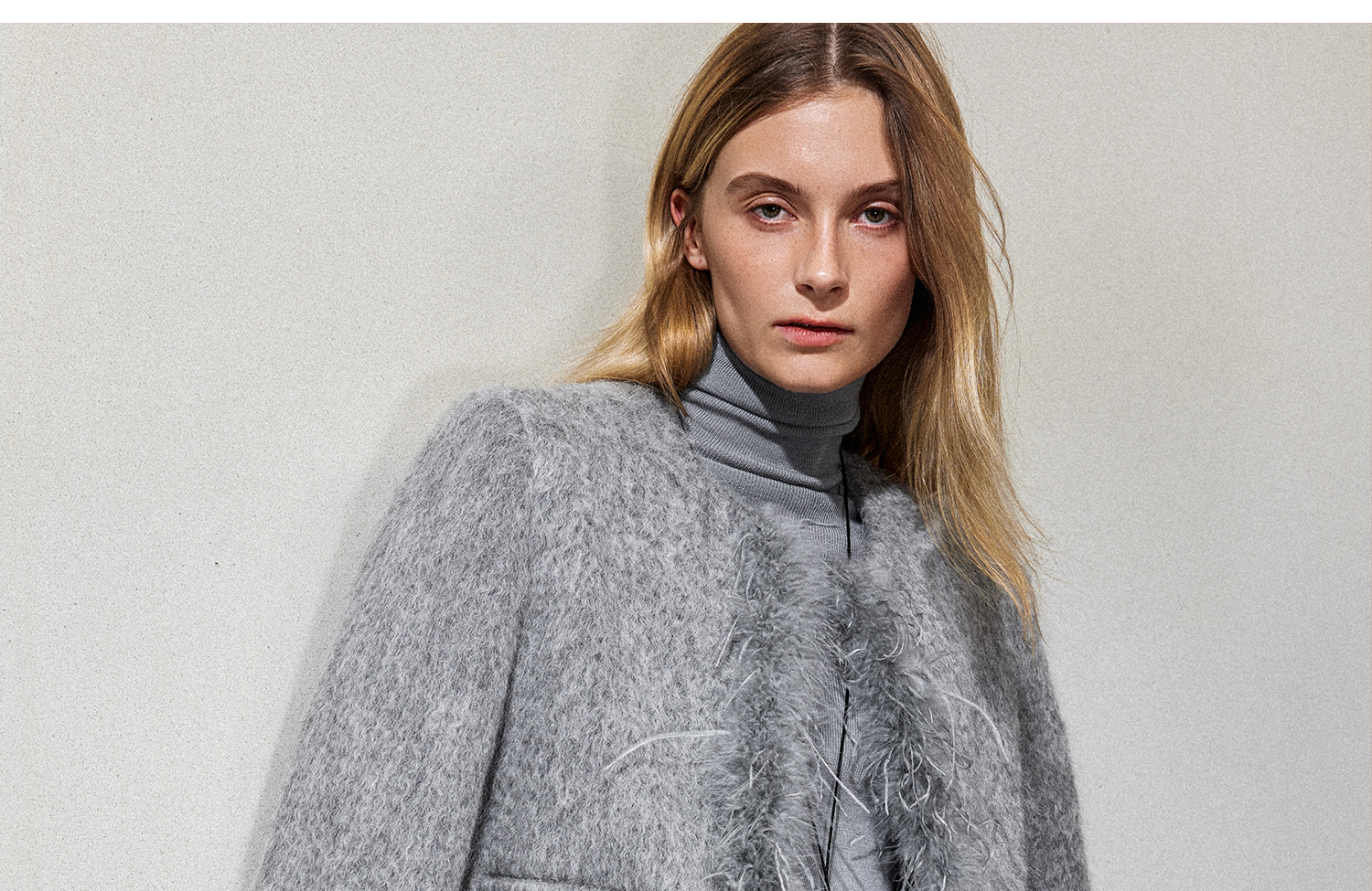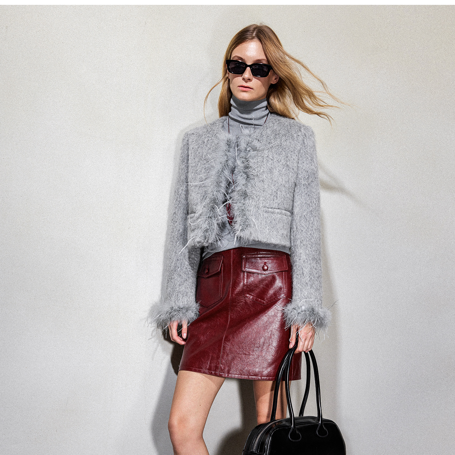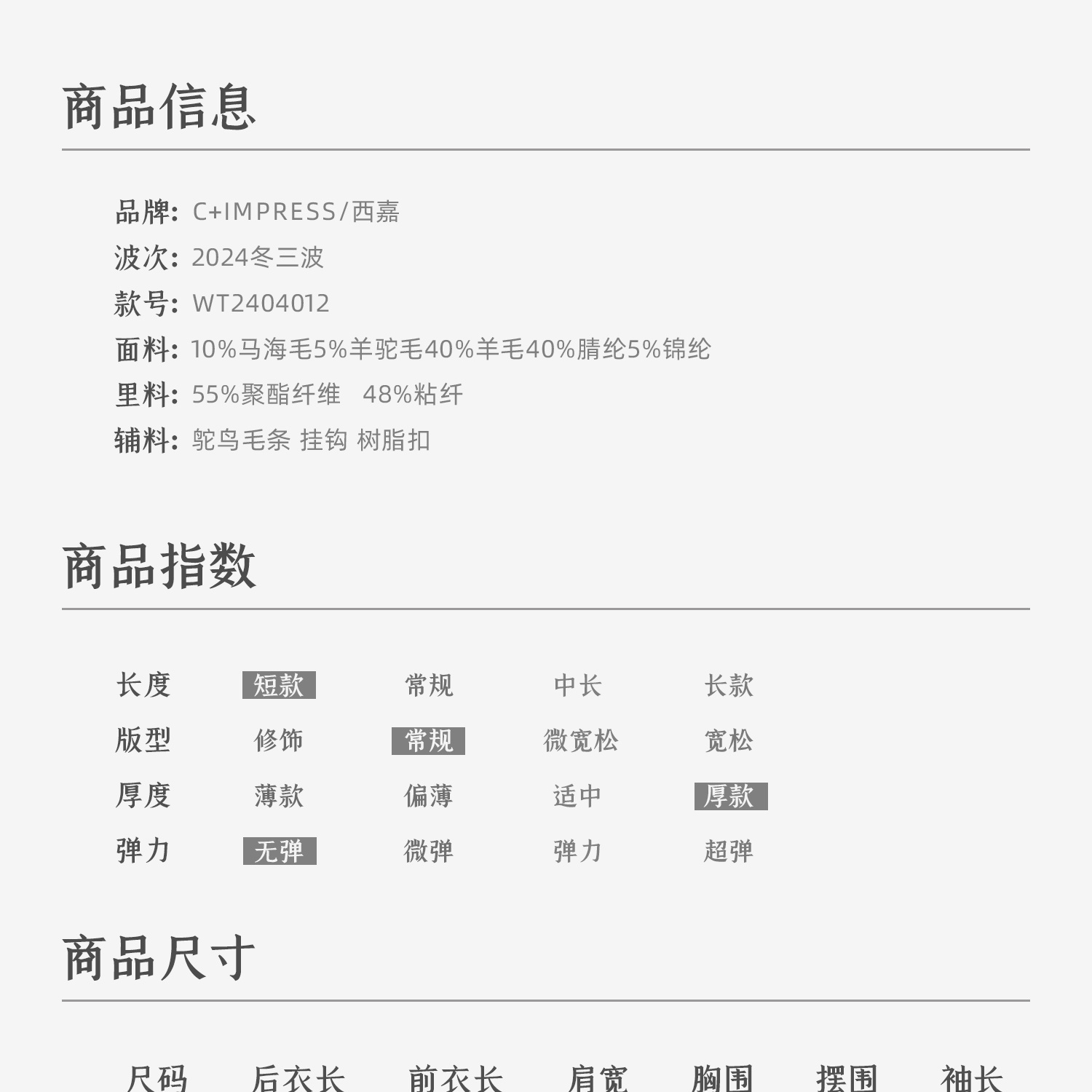 西嘉鸵鸟毛装饰格雷千金风羊毛夹克外套2024冬新(货号:WT2404012)