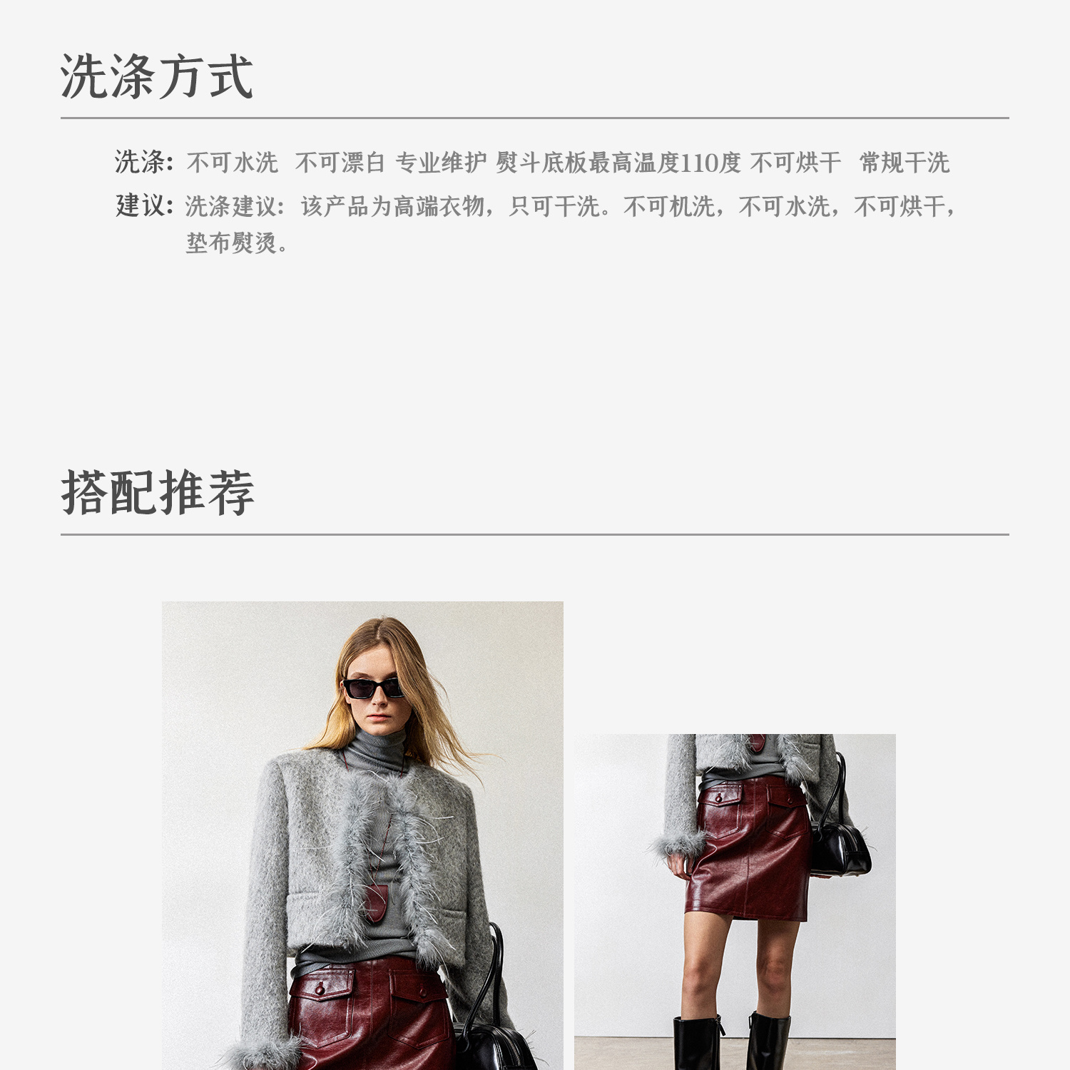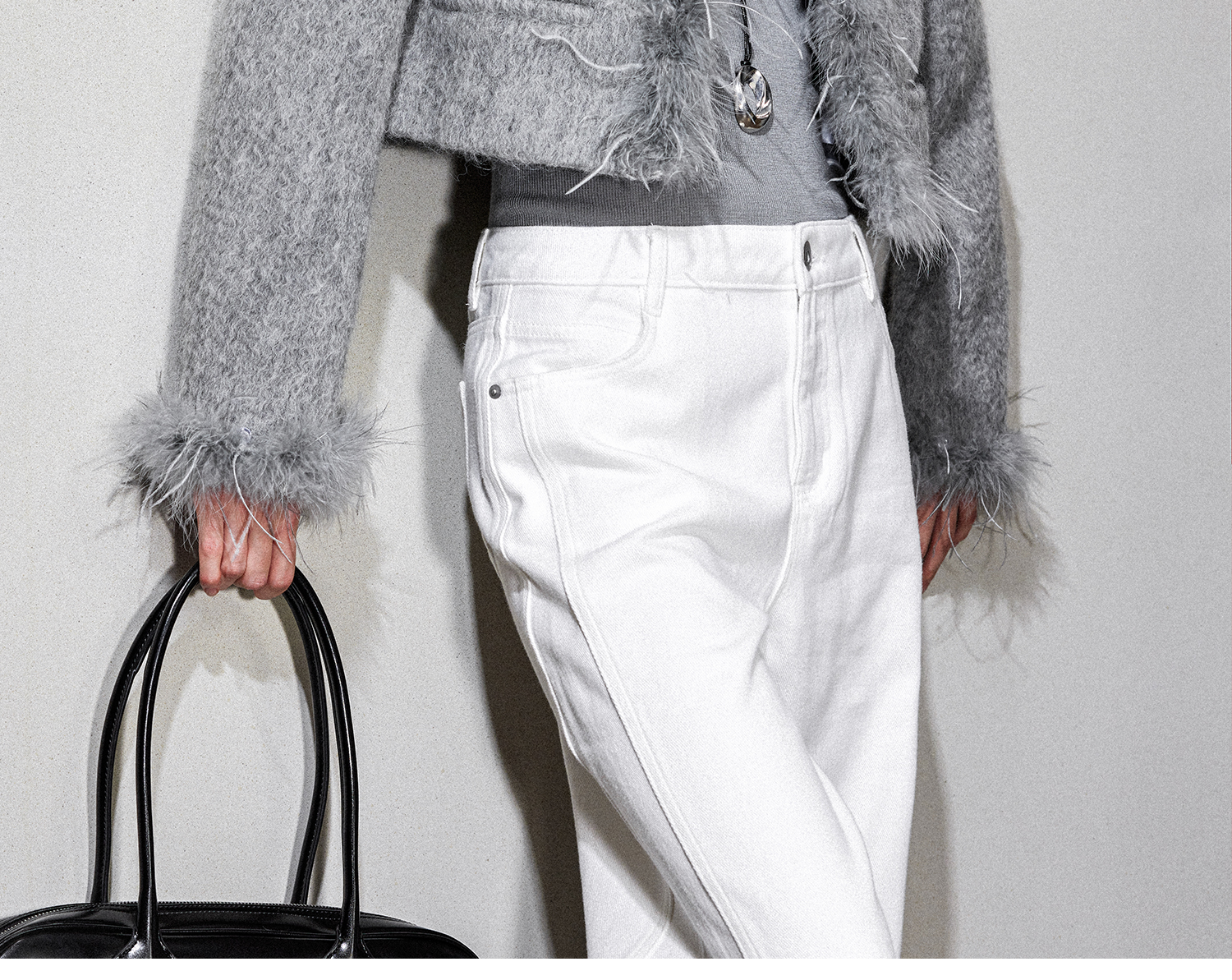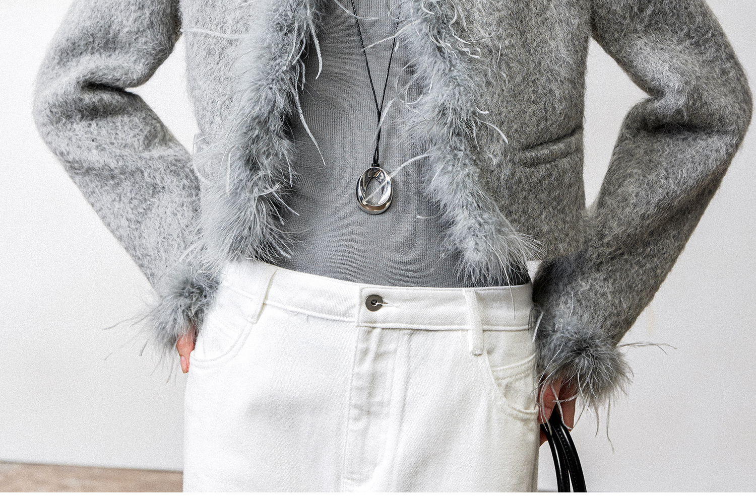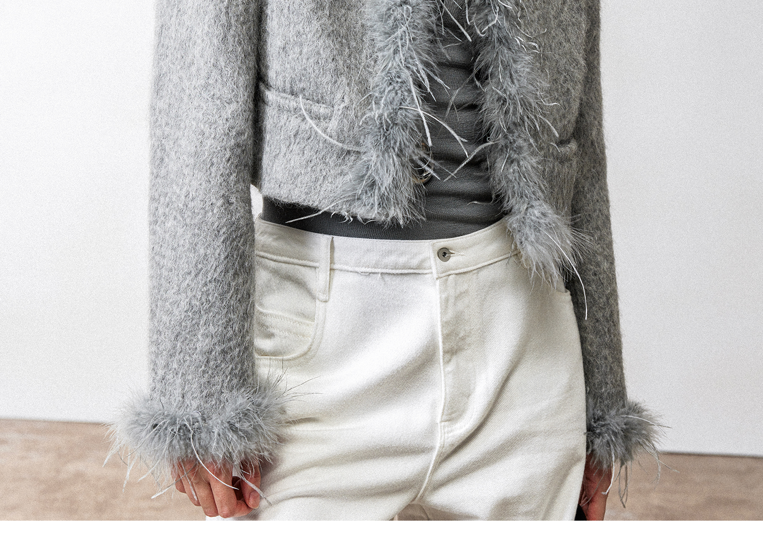 西嘉鸵鸟毛装饰格雷千金风羊毛夹克外套2024冬新(货号:WT2404012)