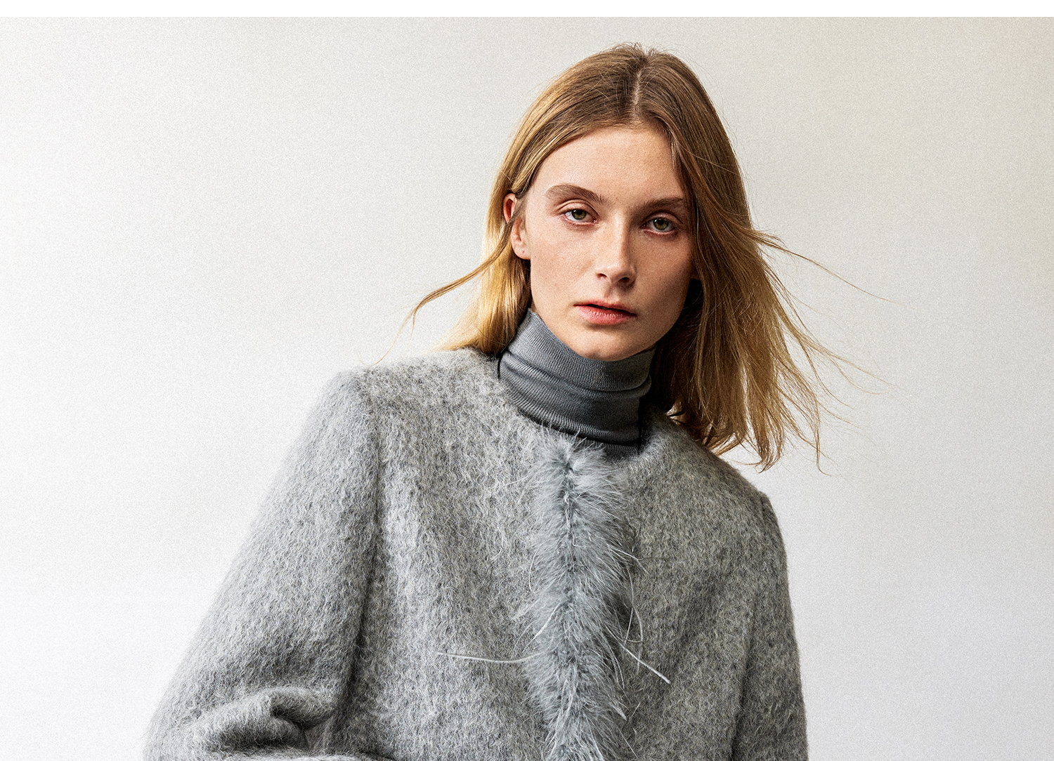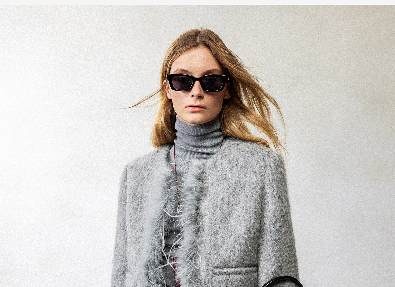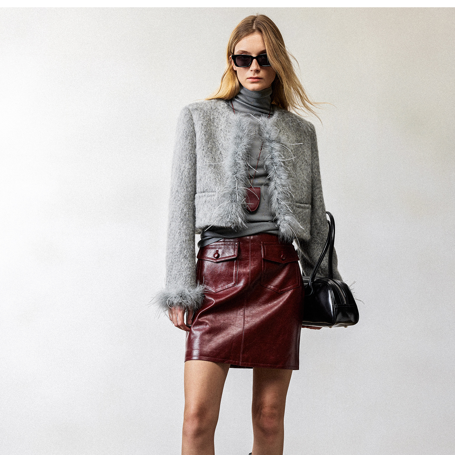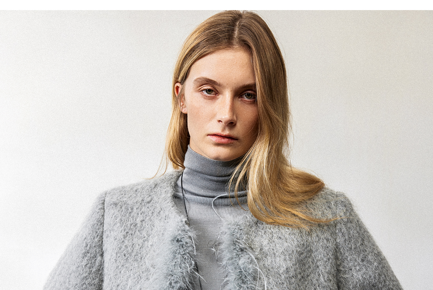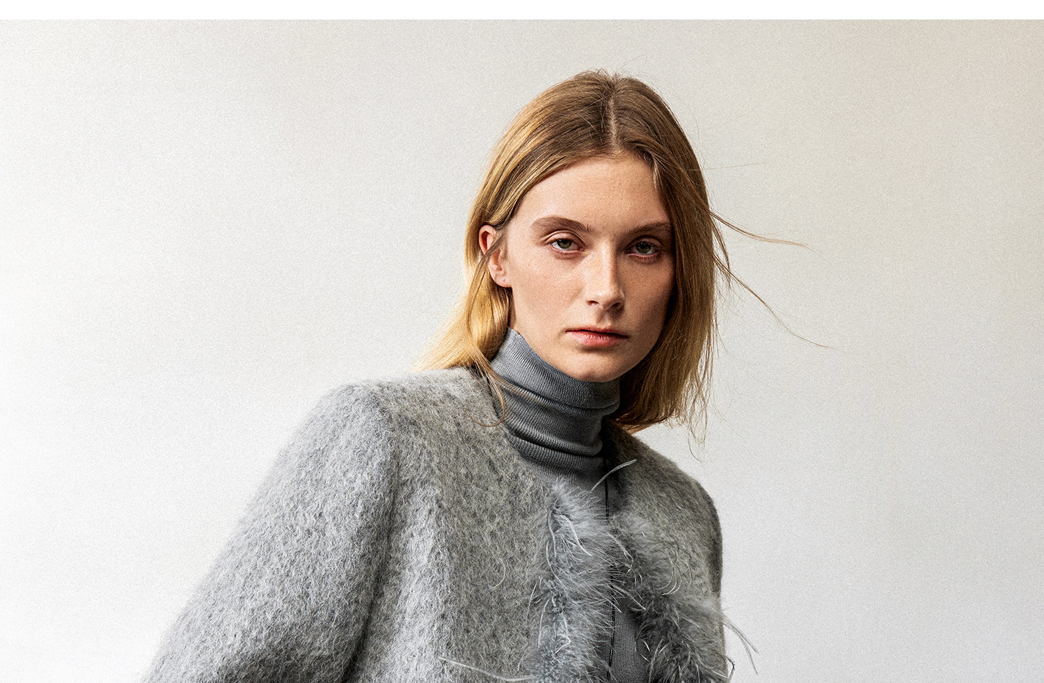 西嘉鸵鸟毛装饰格雷千金风羊毛夹克外套2024冬新(货号:WT2404012)