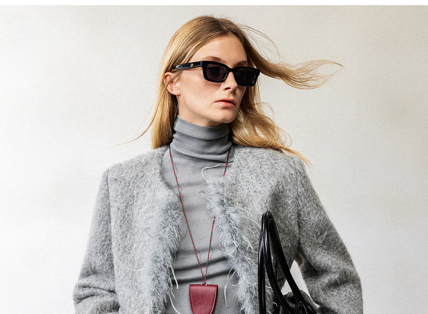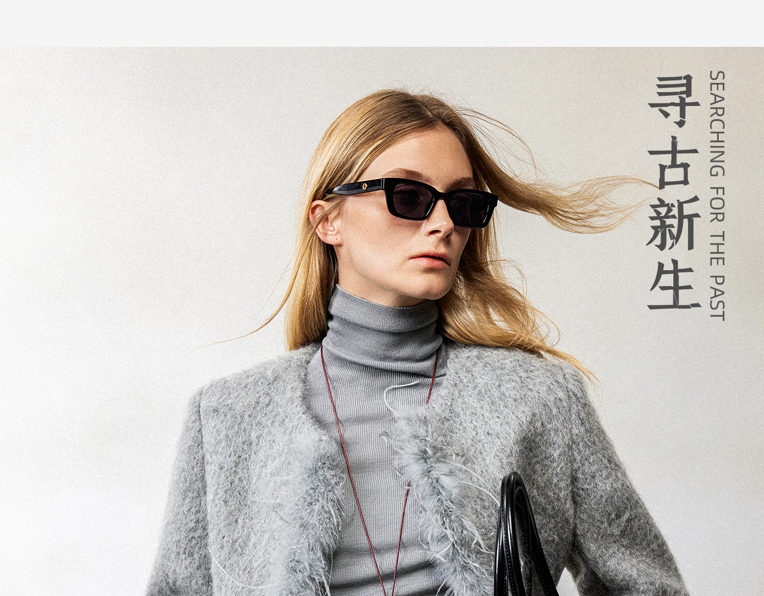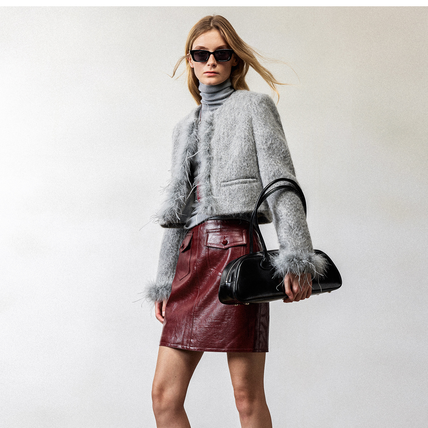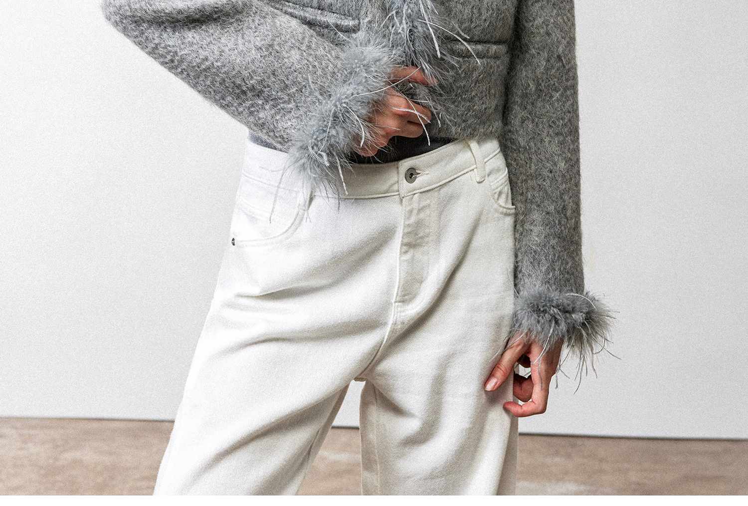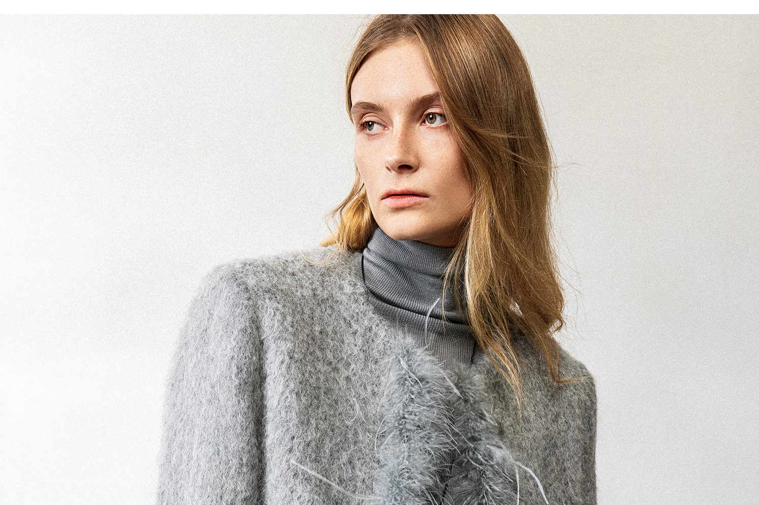西嘉鸵鸟毛装饰格雷千金风羊毛夹克外套2024冬新(货号:WT2404012)