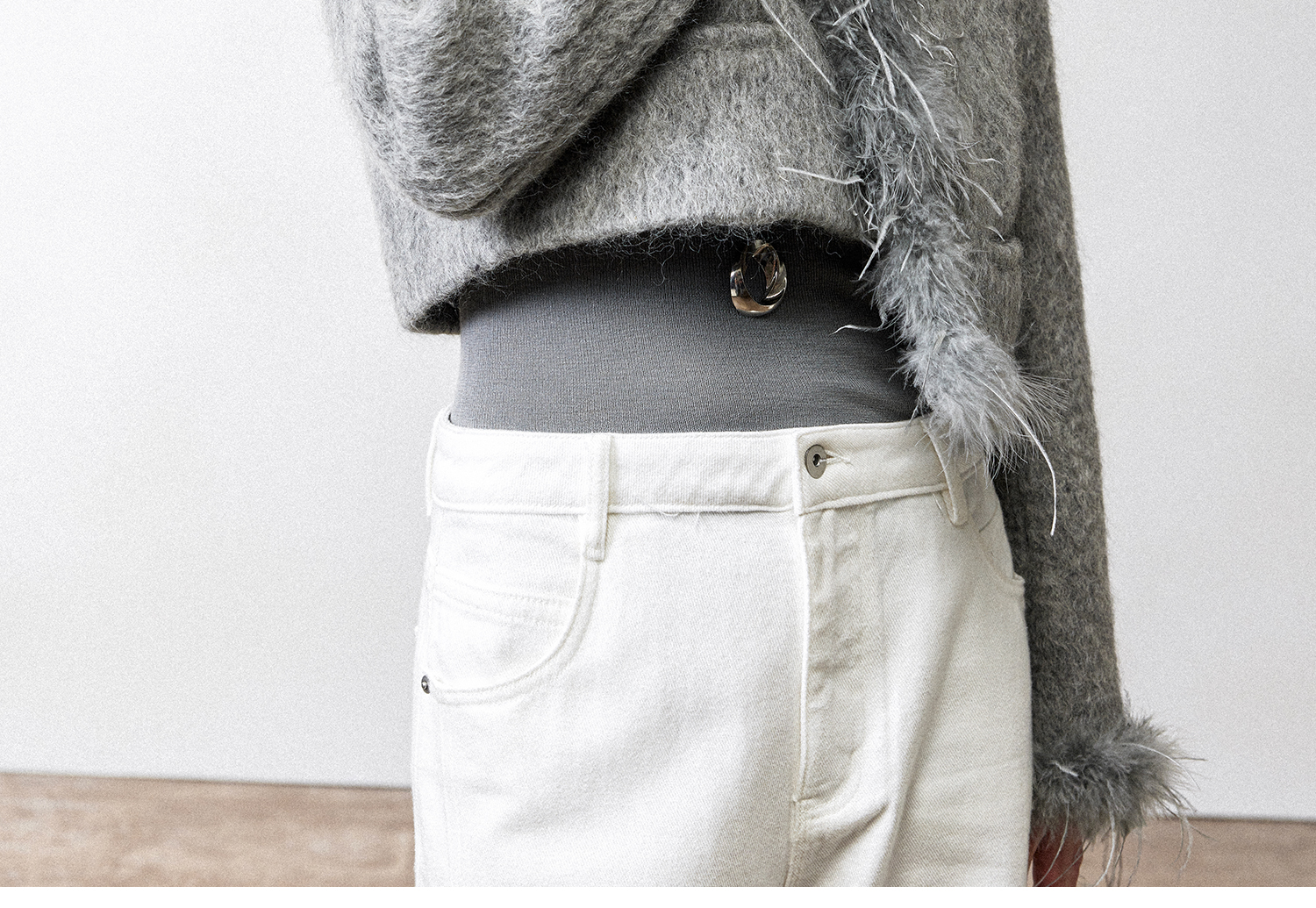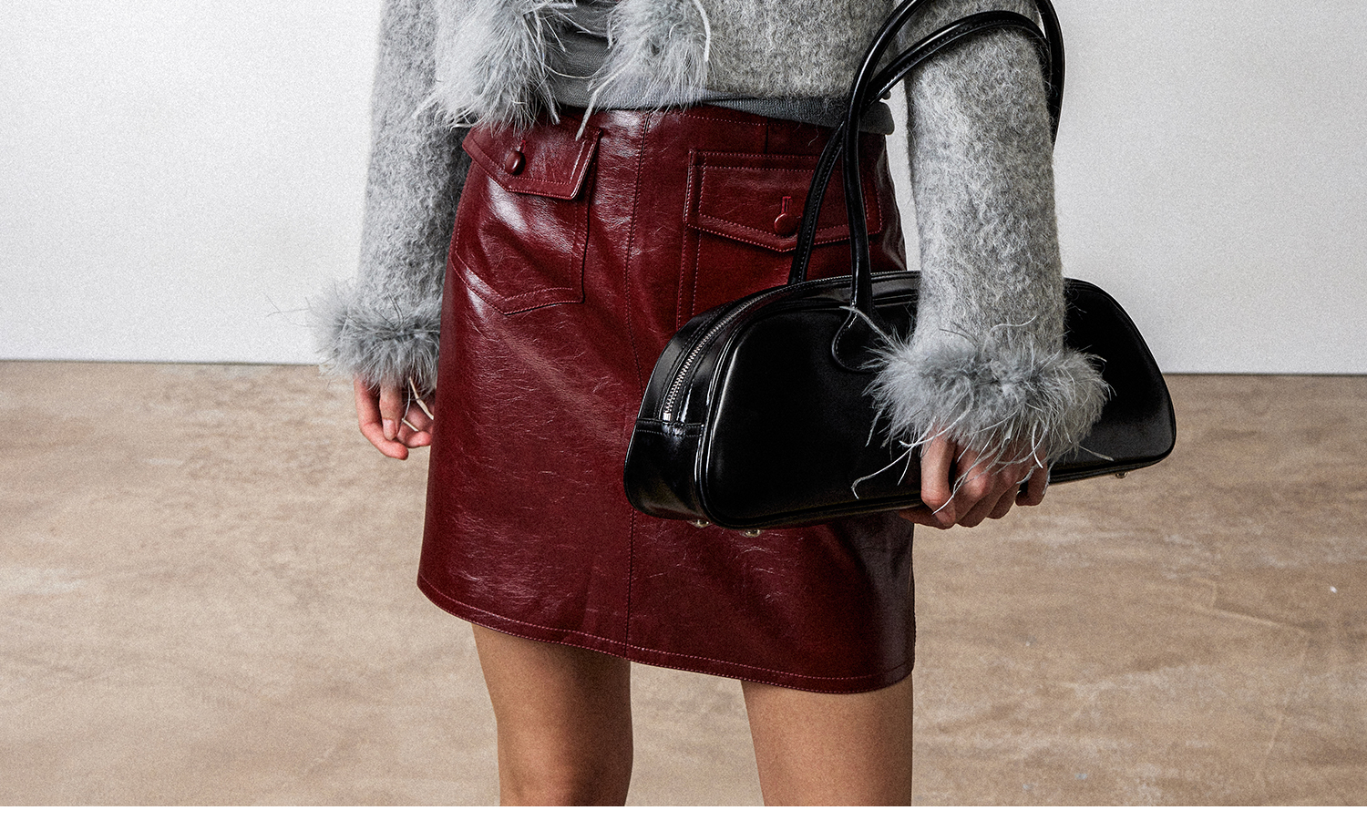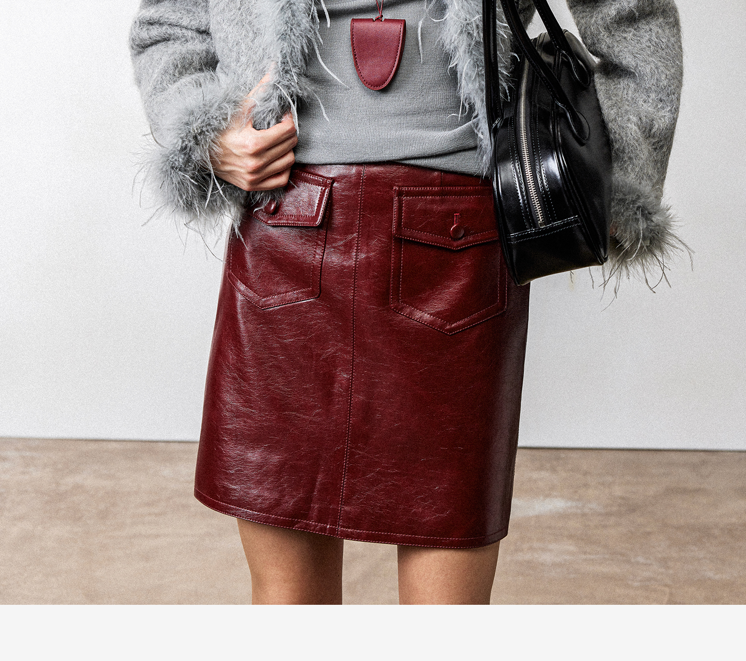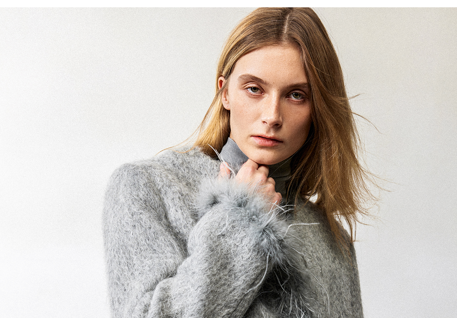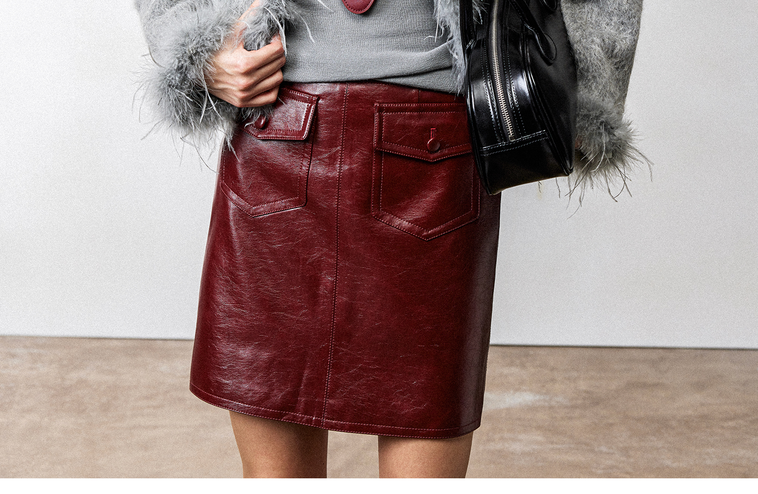 西嘉鸵鸟毛装饰格雷千金风羊毛夹克外套2024冬新(货号:WT2404012)