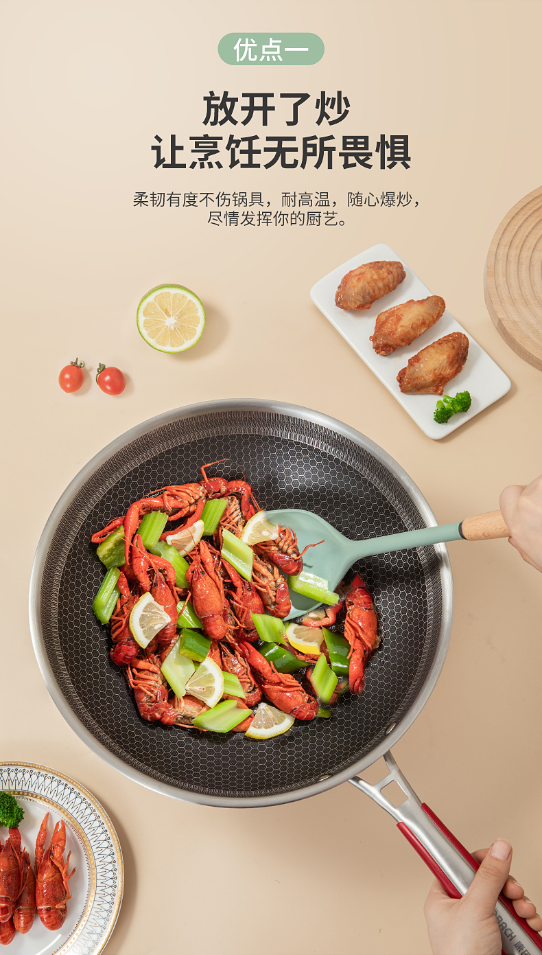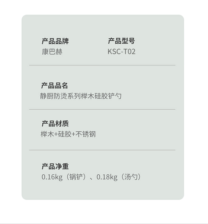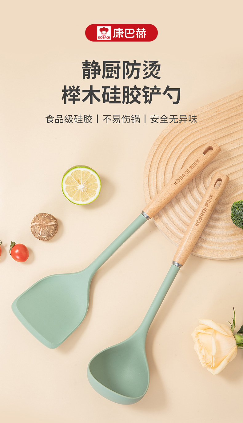 康巴赫静厨防烫系列榉木硅胶套装(勺子+铲子)/1套补单专用