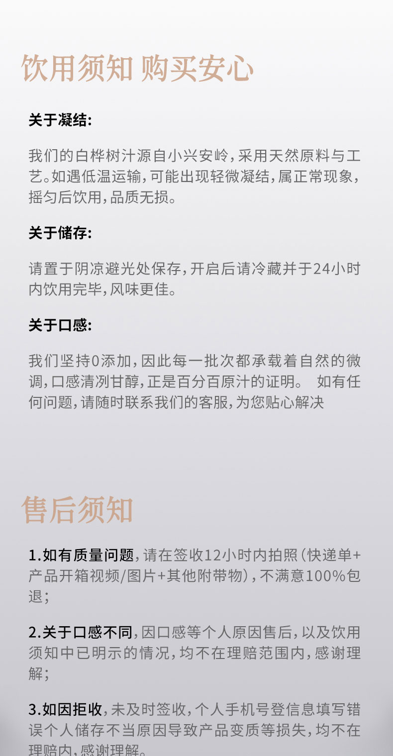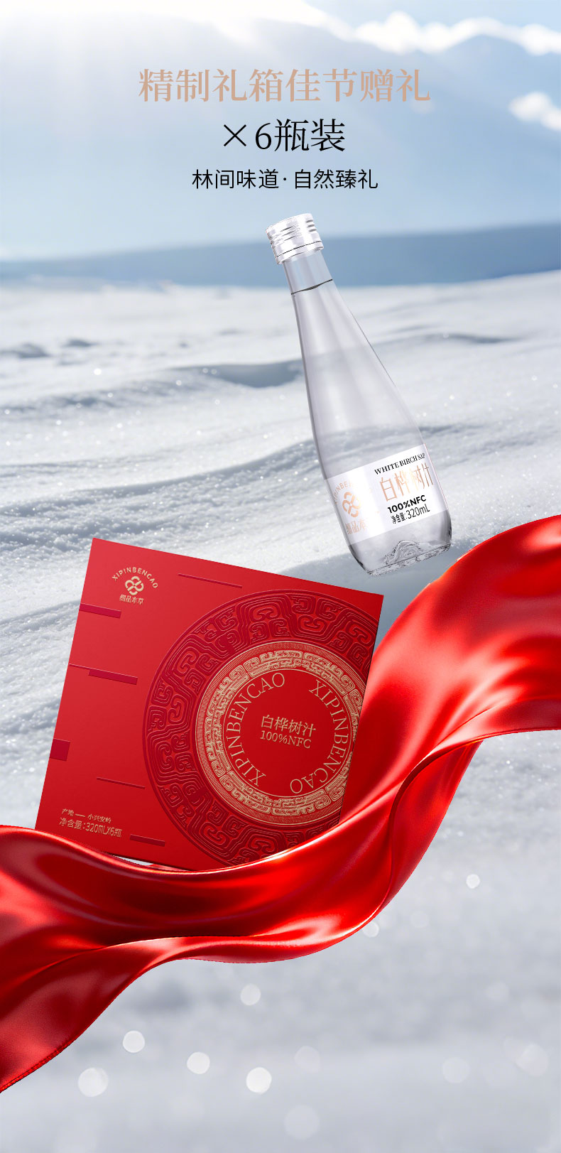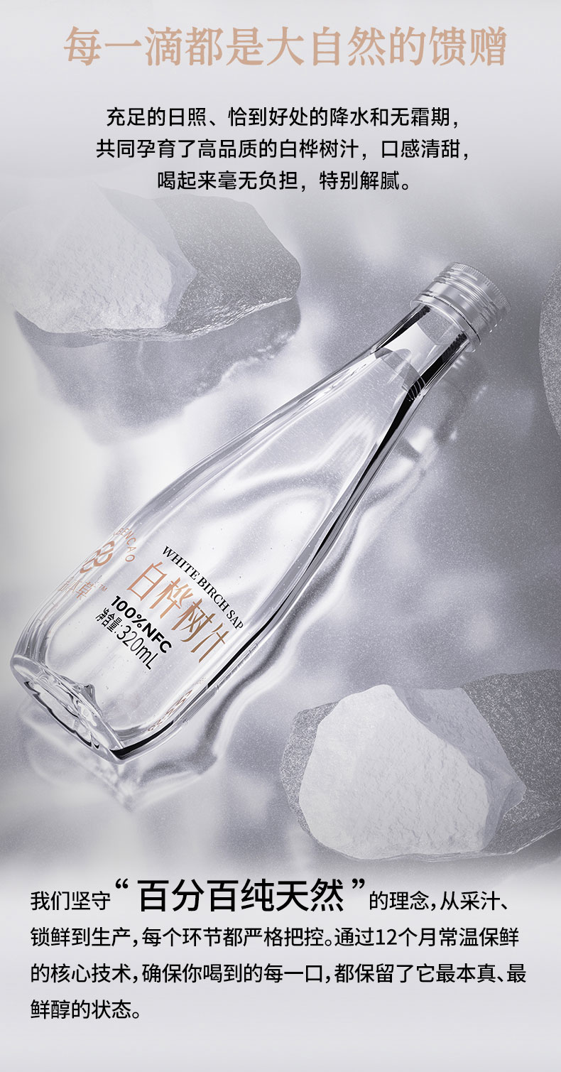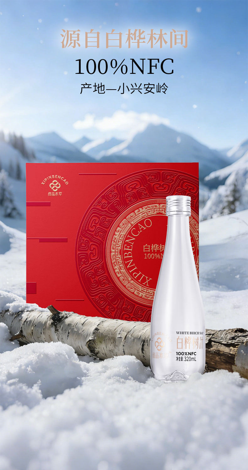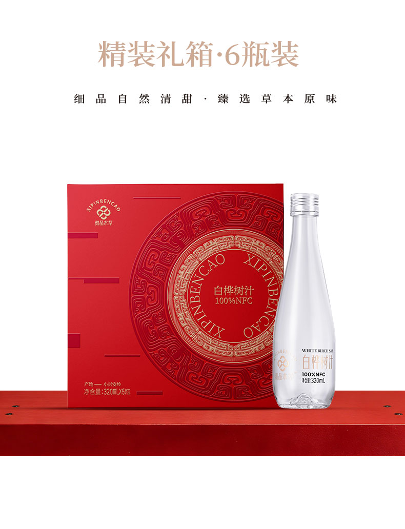 白桦树汁 100%NFC白桦树汁 源自小兴安岭天然白桦林 6瓶礼盒装