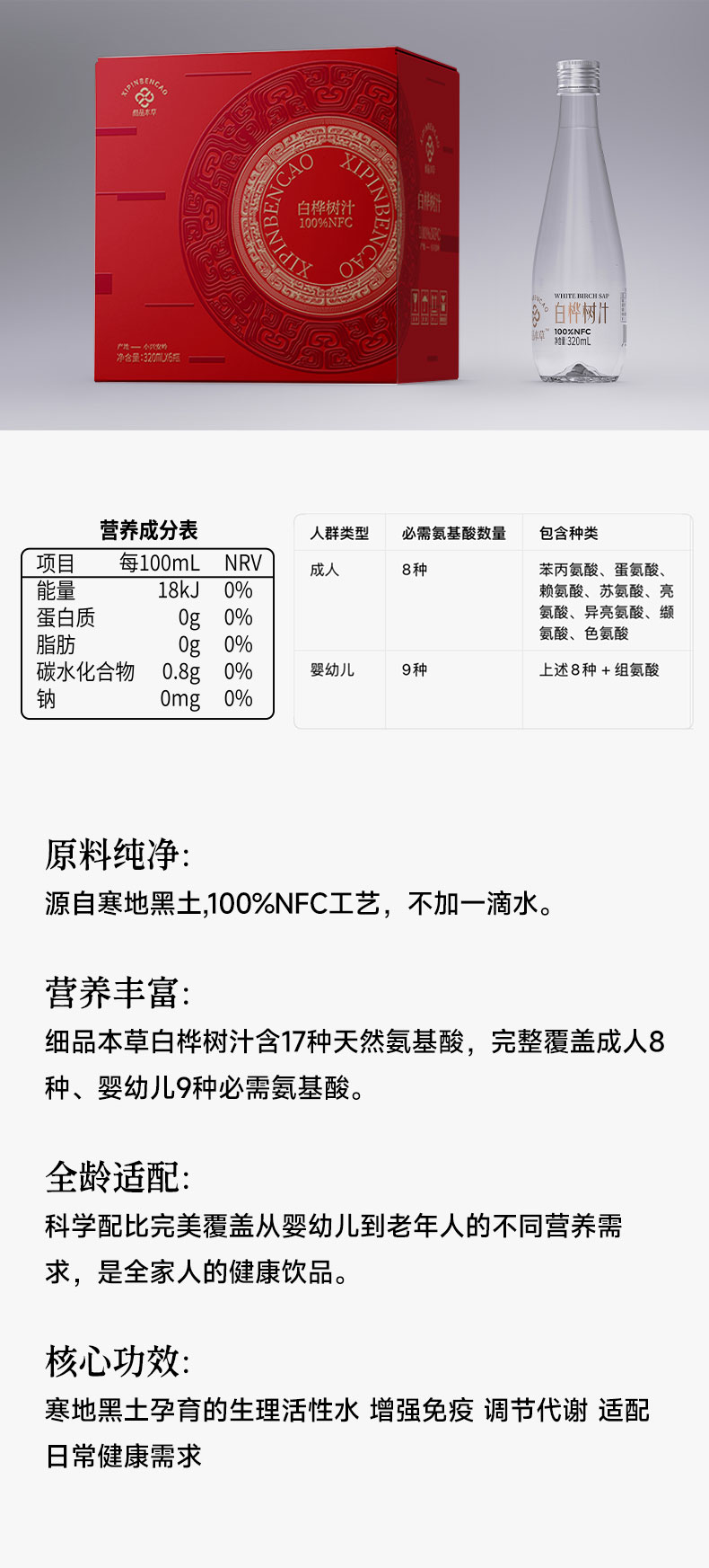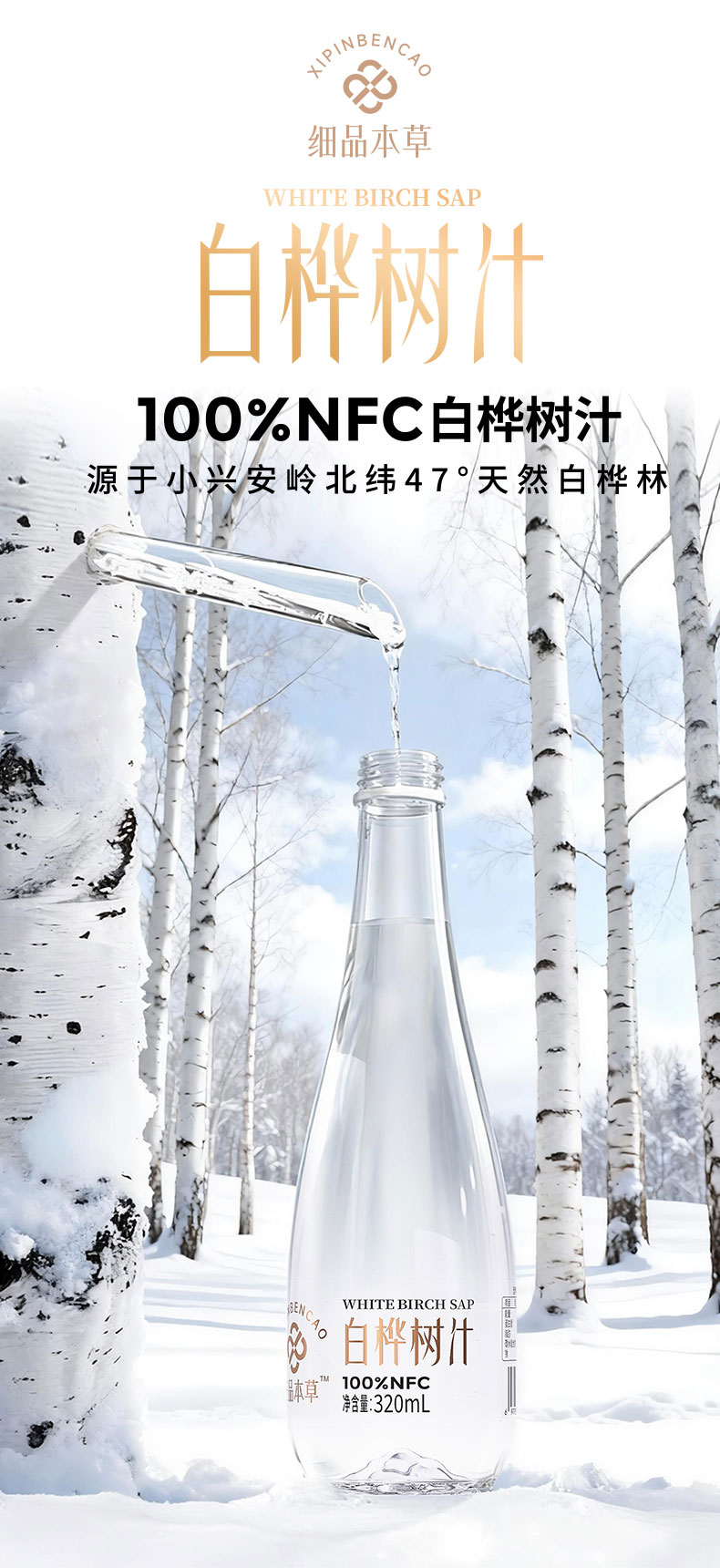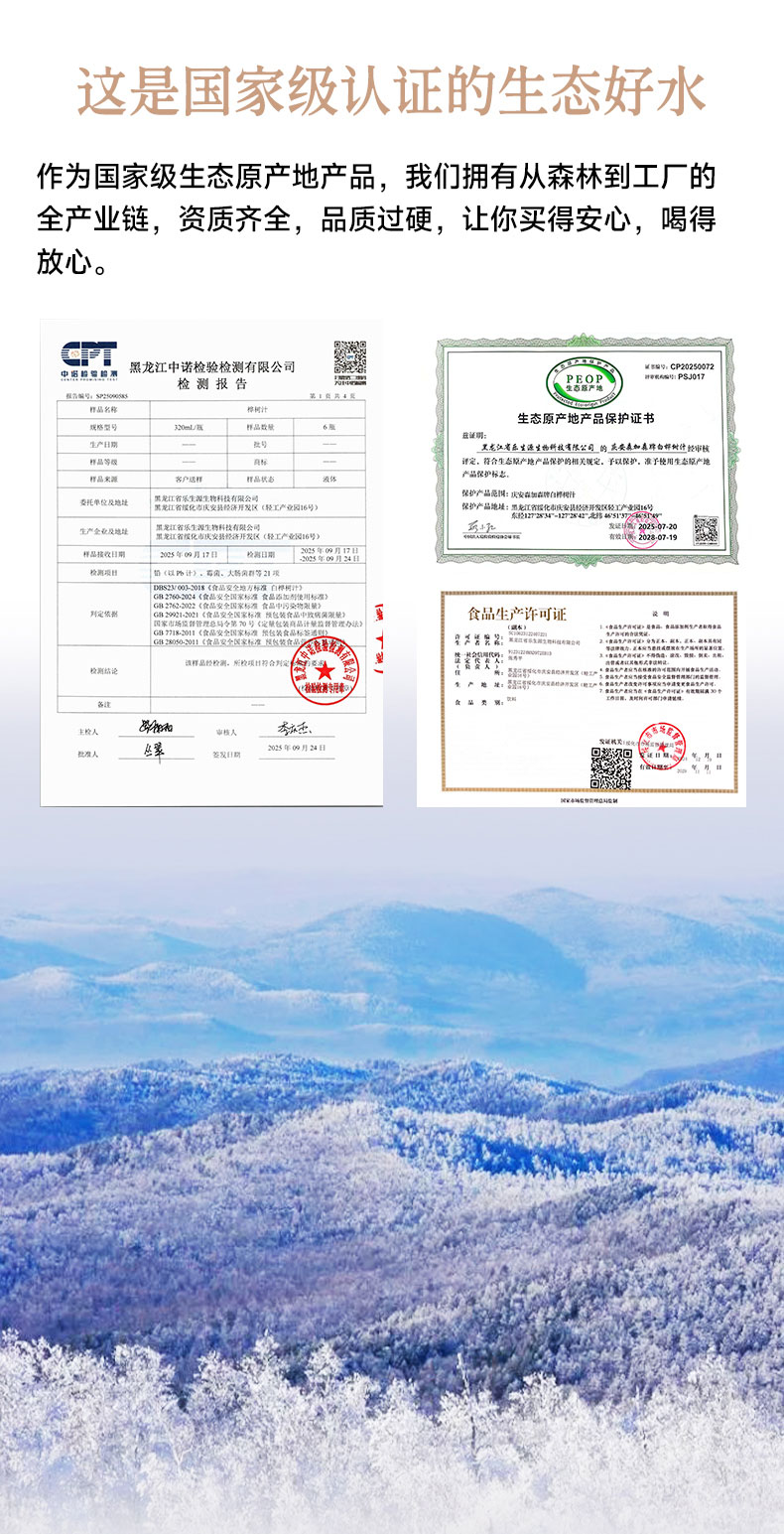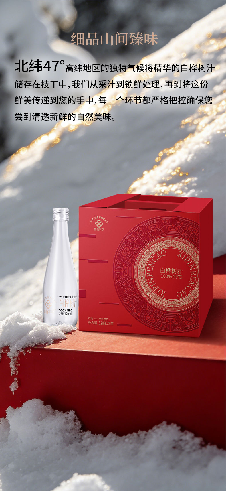 白桦树汁 100%NFC白桦树汁 源自小兴安岭天然白桦林 6瓶礼盒装