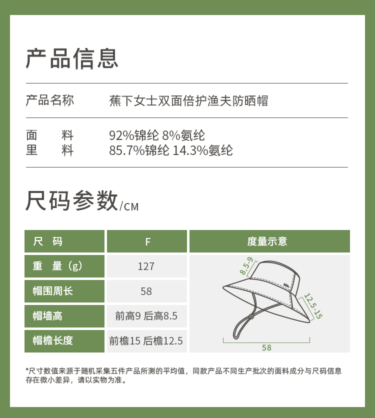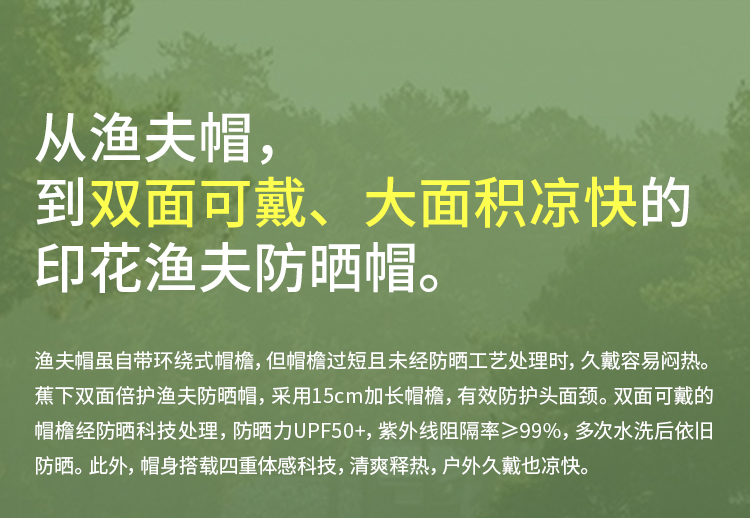 蕉下女士双面倍护渔夫防晒帽AL50024印花款