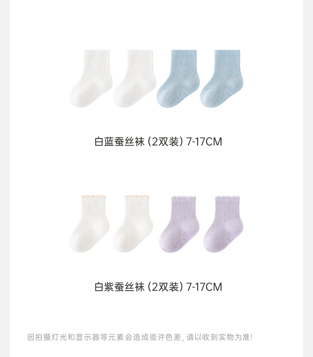 【商场同款】英氏儿童袜子四季透气蚕丝袜抗菌男童女童袜子两双装