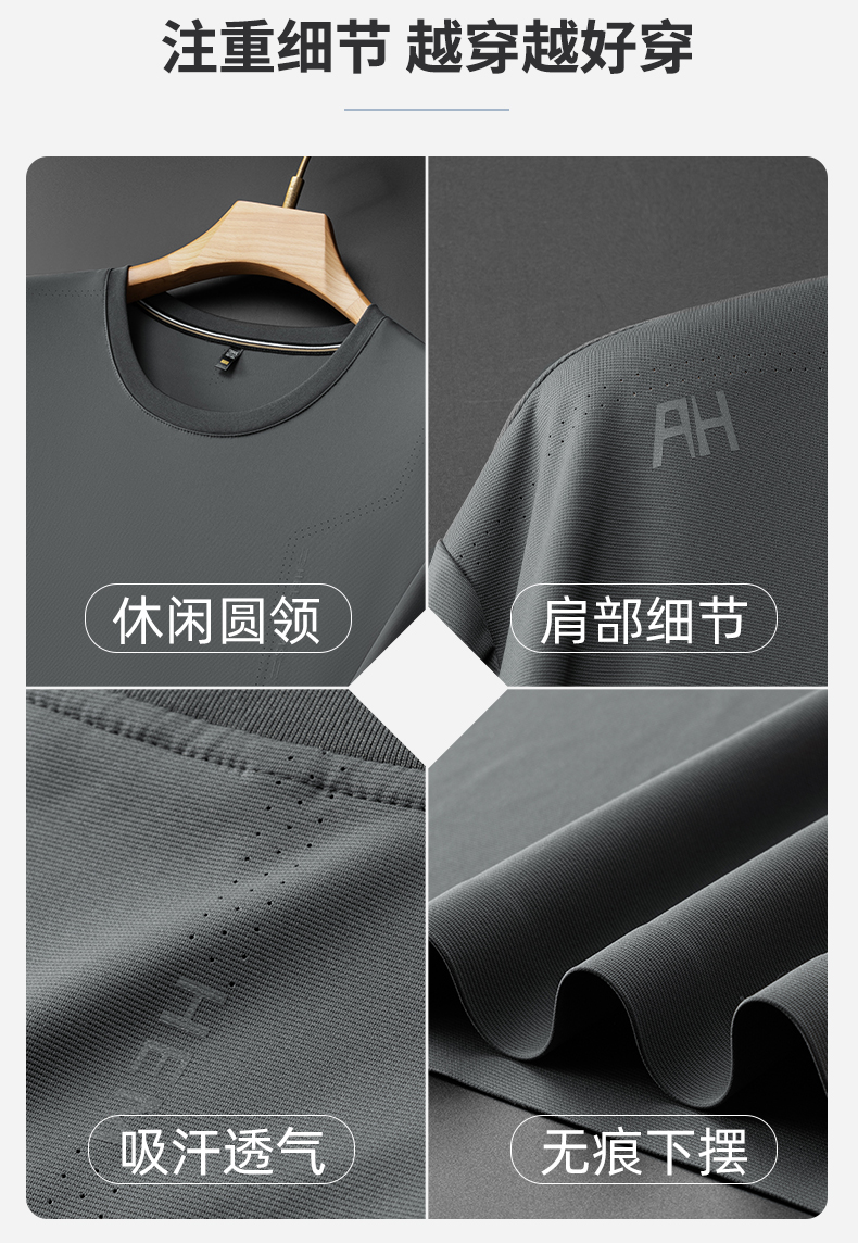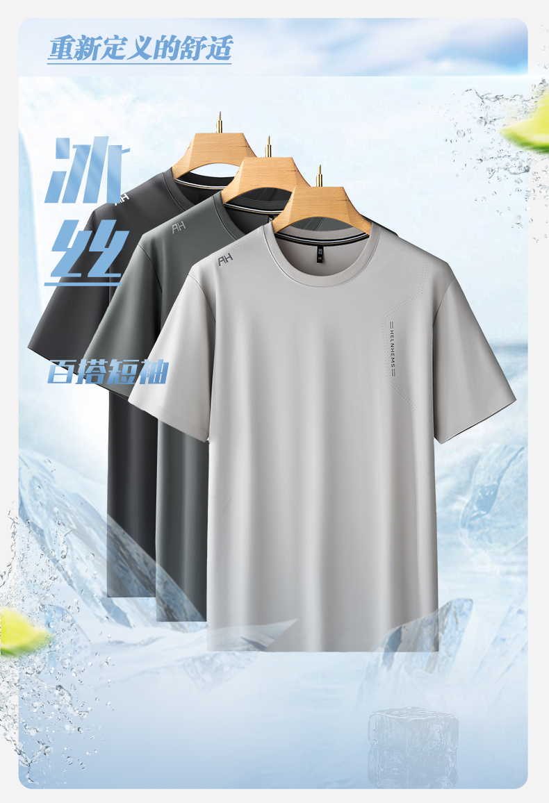 【冰丝无痕】【DDS】大依优型大码男装短袖T恤透气加肥加大大号半袖上衣男士胖子