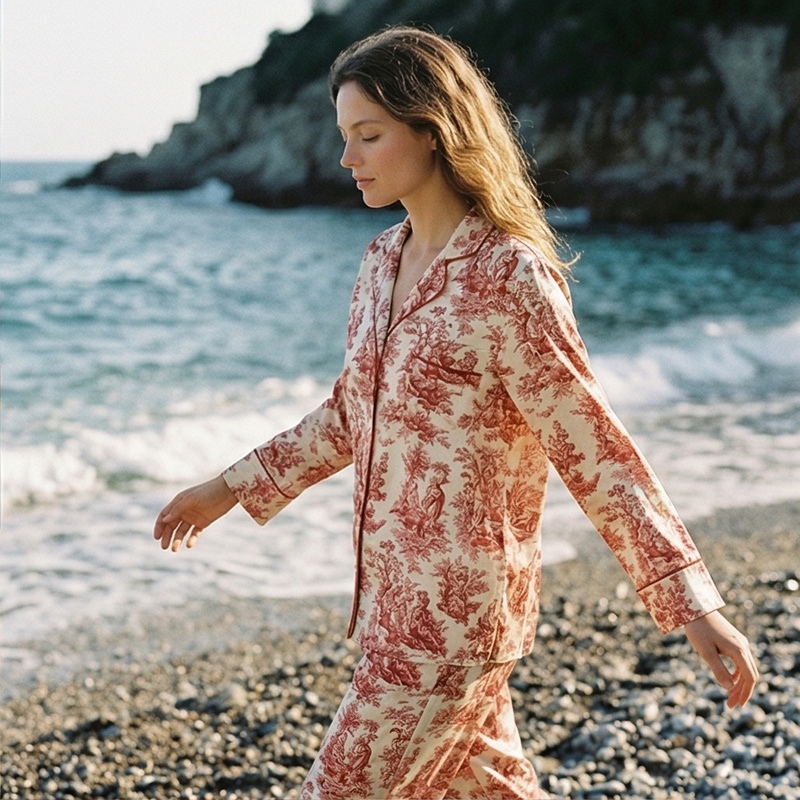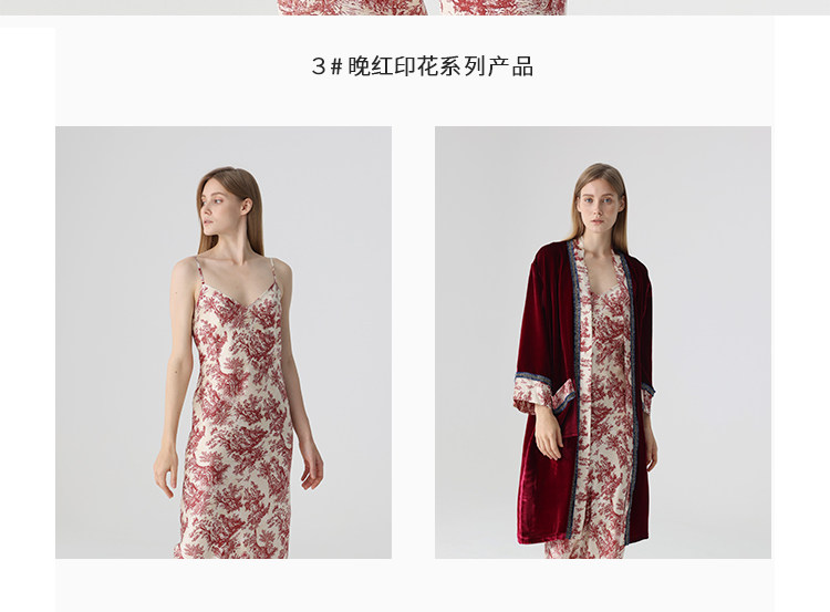 南法SJD/soie jardin3#晚红丝绸睡衣原创印花真桑蚕丝家居服长袖长裤套装S302TC78