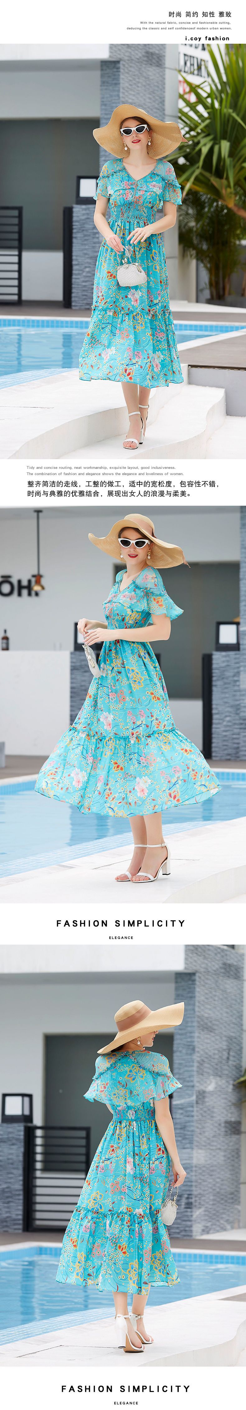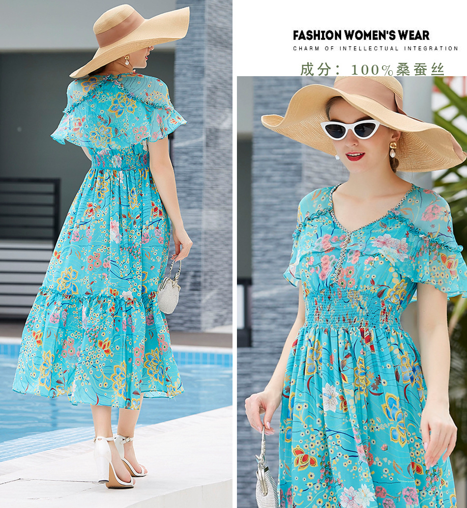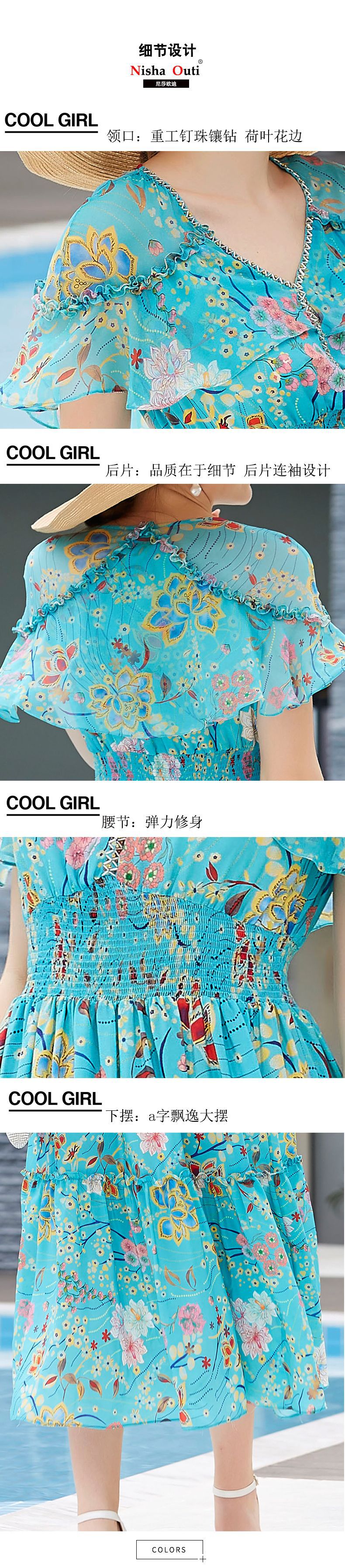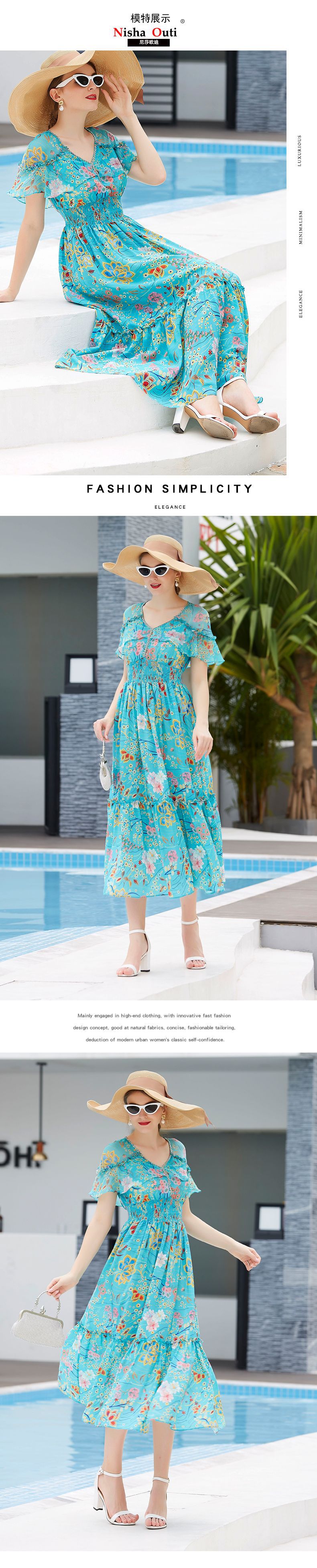 NSBD-FH0532夏新款优雅时尚套头飞飞袖轻薄飘逸印花真丝连衣裙