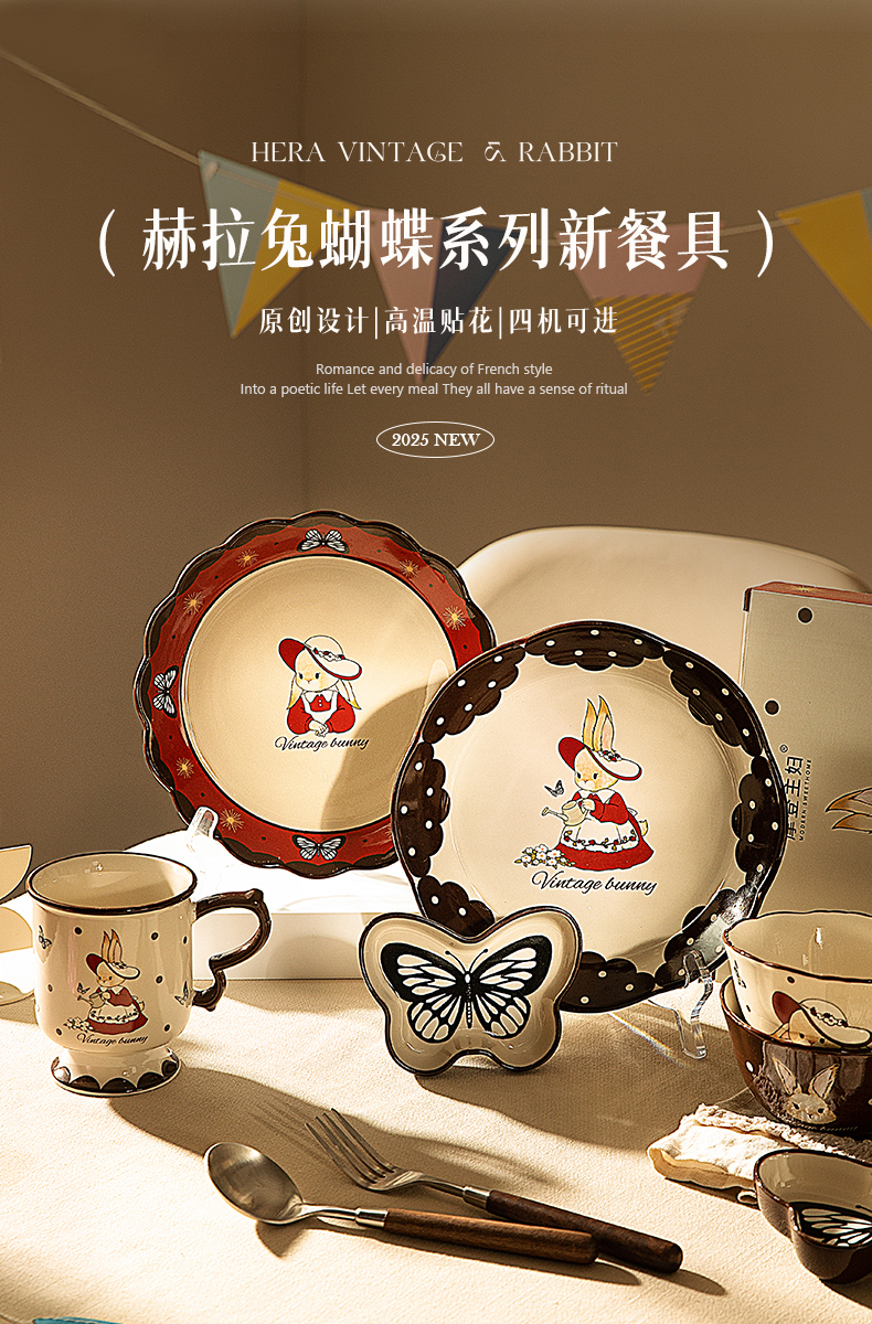 摩登主妇赫拉兔餐具碗碟家用2024款陶瓷盘子乔迁新居新年生日礼物
