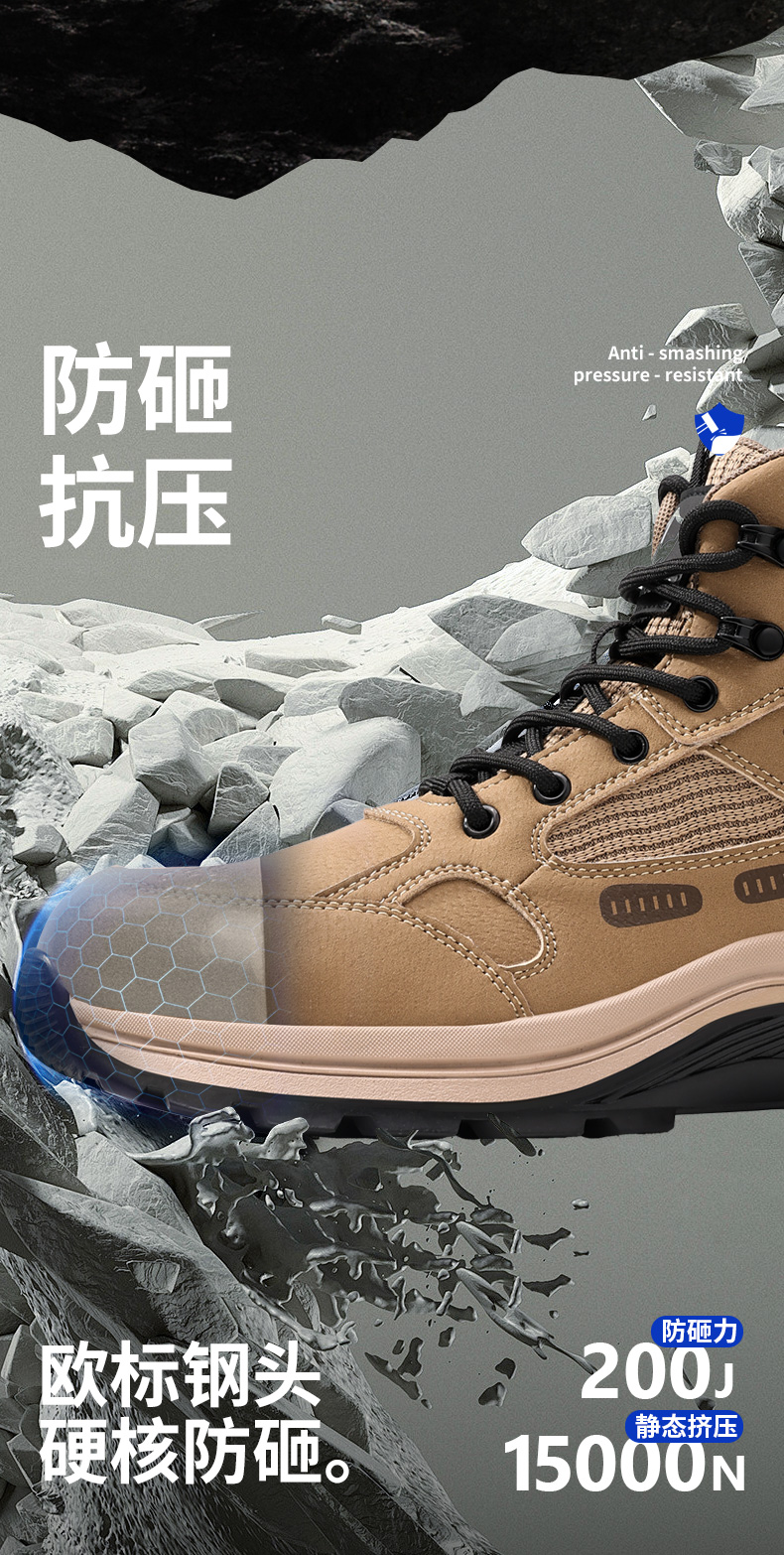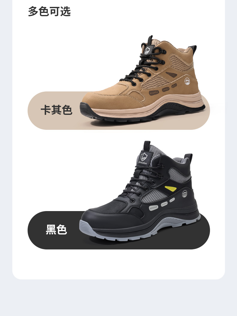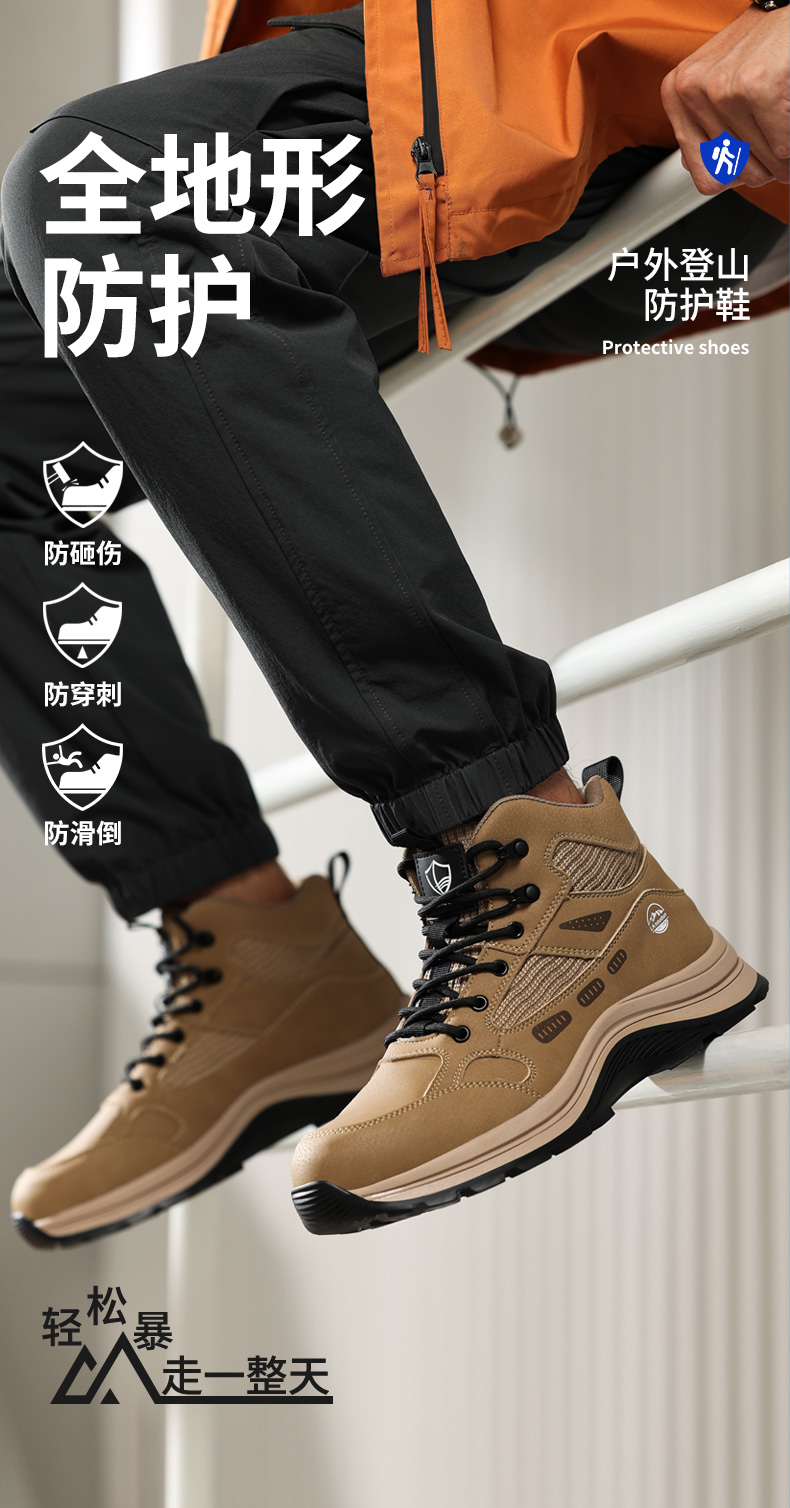 蓝鸥盾高帮劳保鞋防砸防刺穿卡其色欧标钢包头凯夫拉底橡胶底耐磨抗造防滑