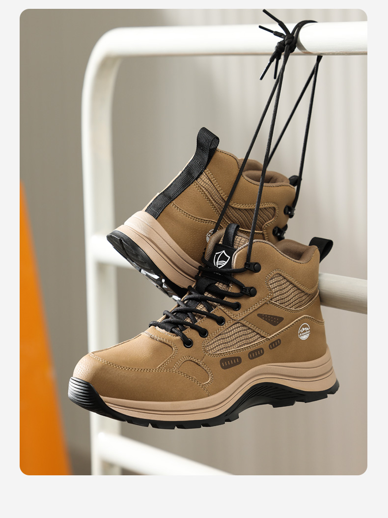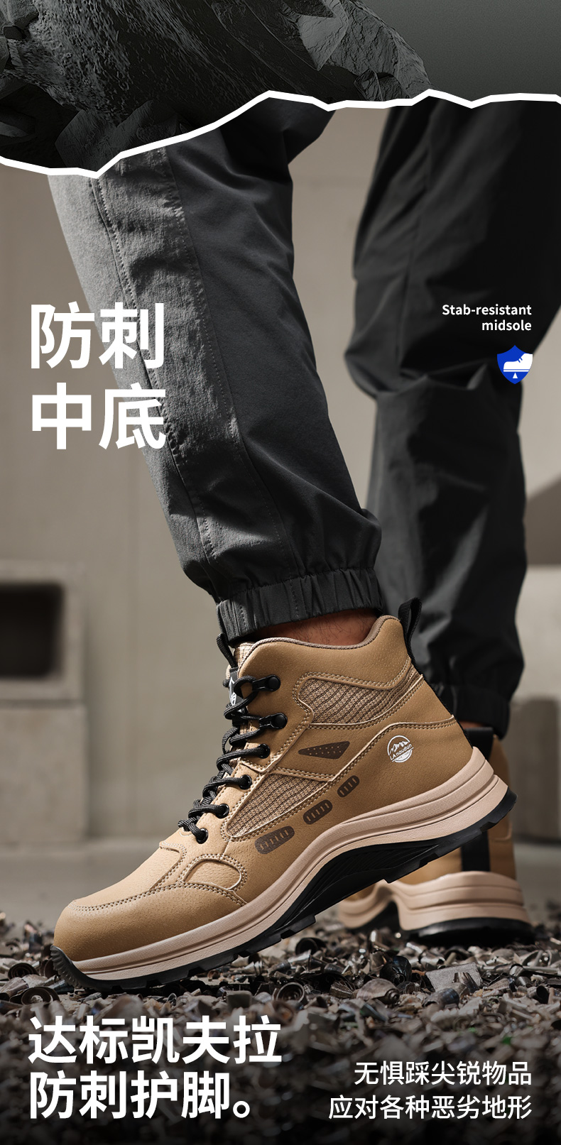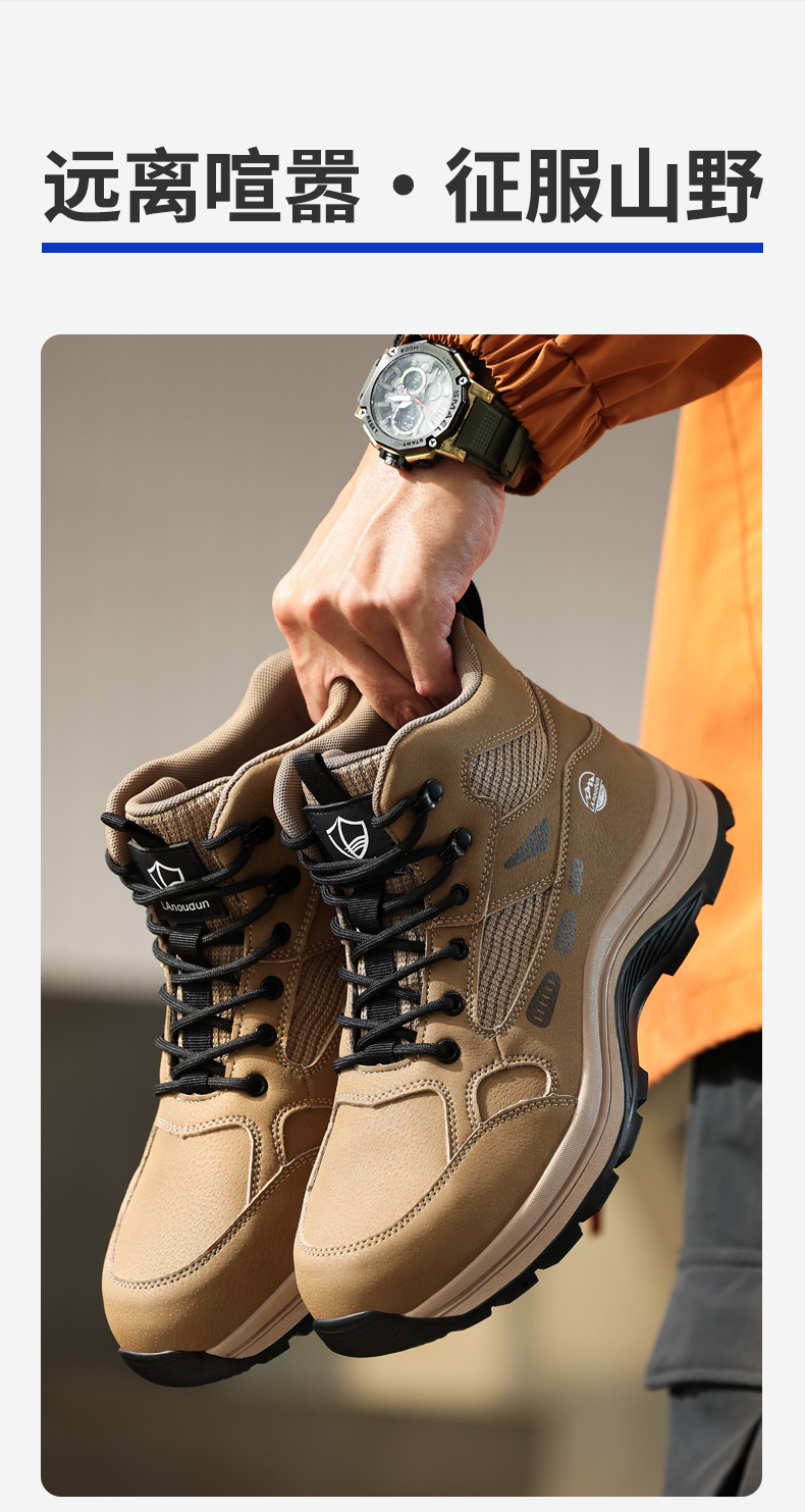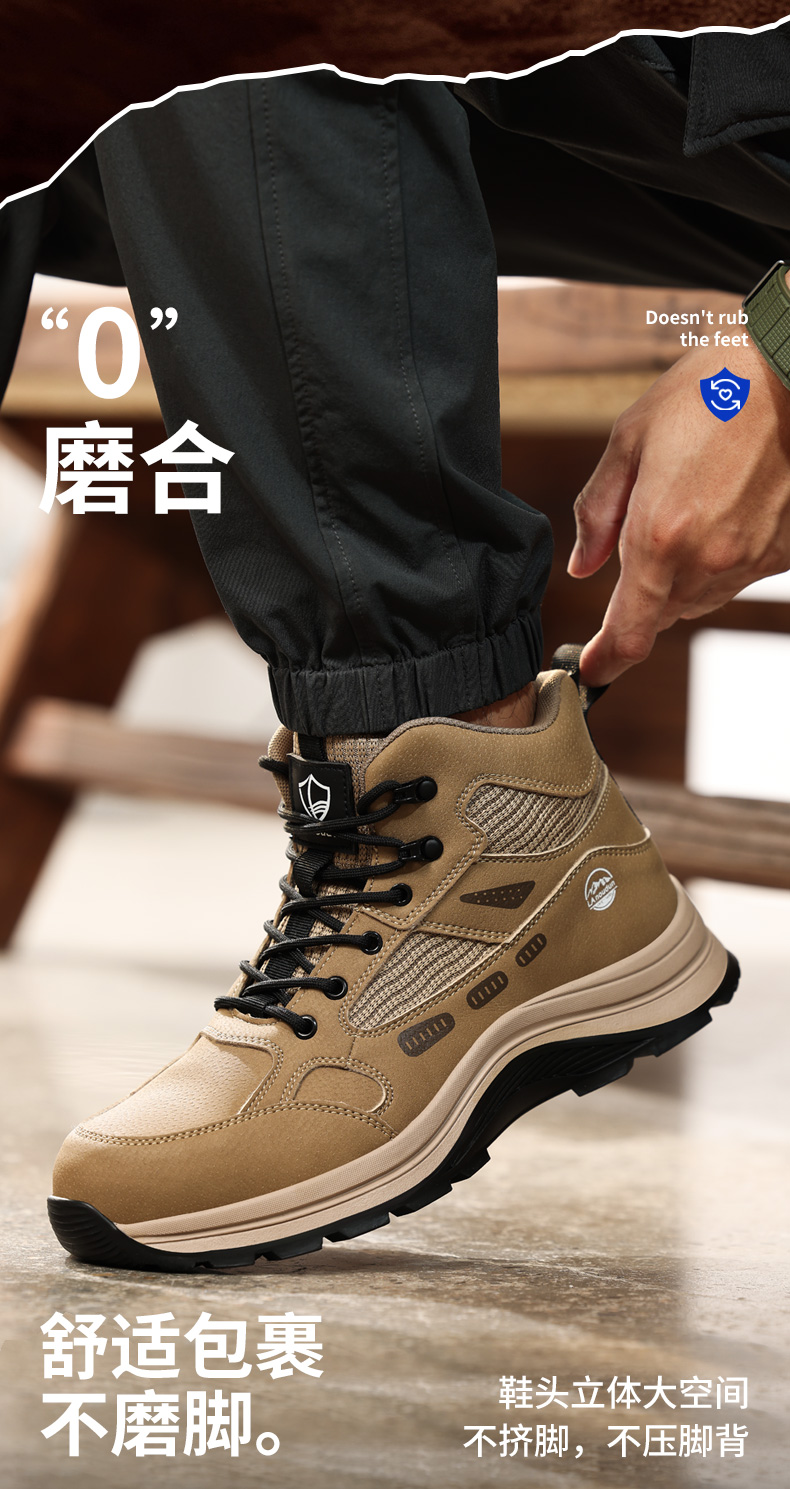 蓝鸥盾高帮劳保鞋防砸防刺穿卡其色欧标钢包头凯夫拉底橡胶底耐磨抗造防滑