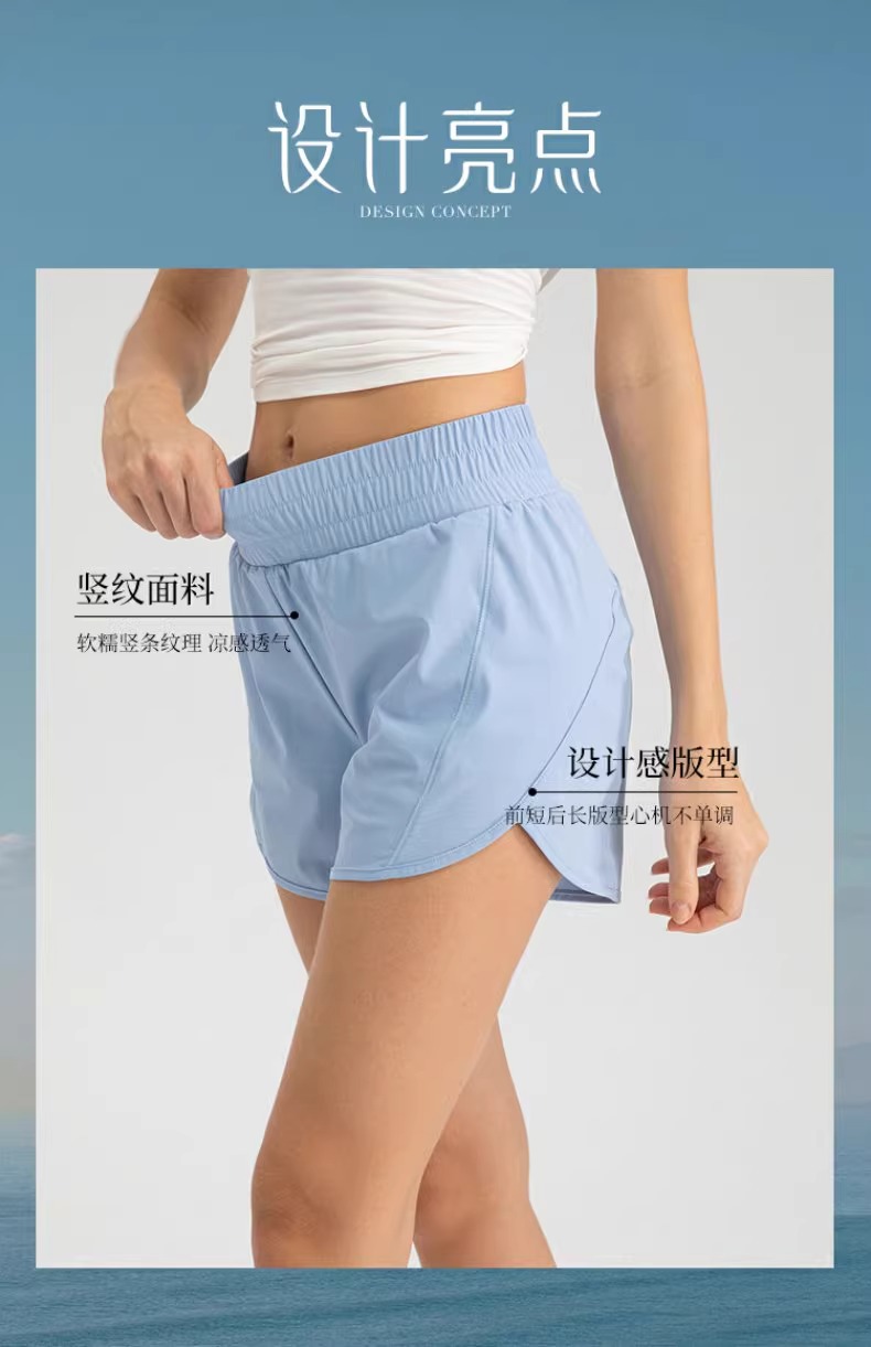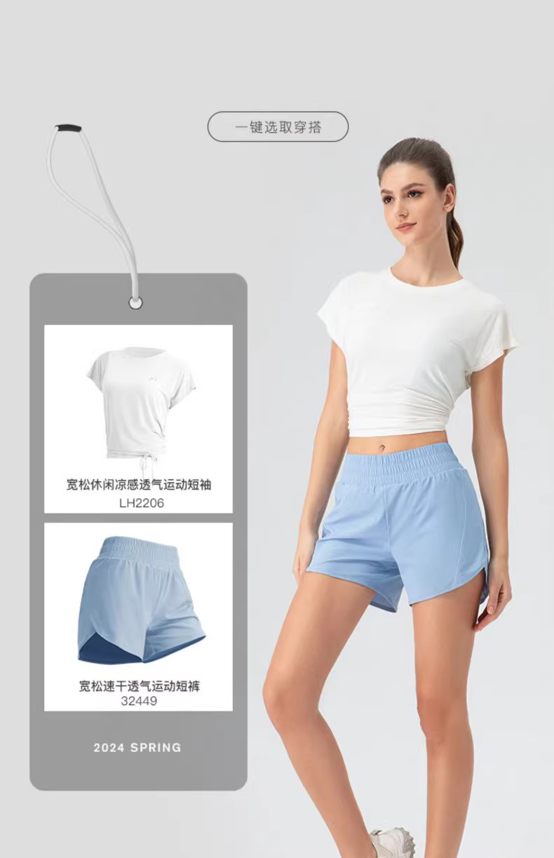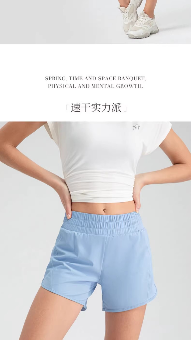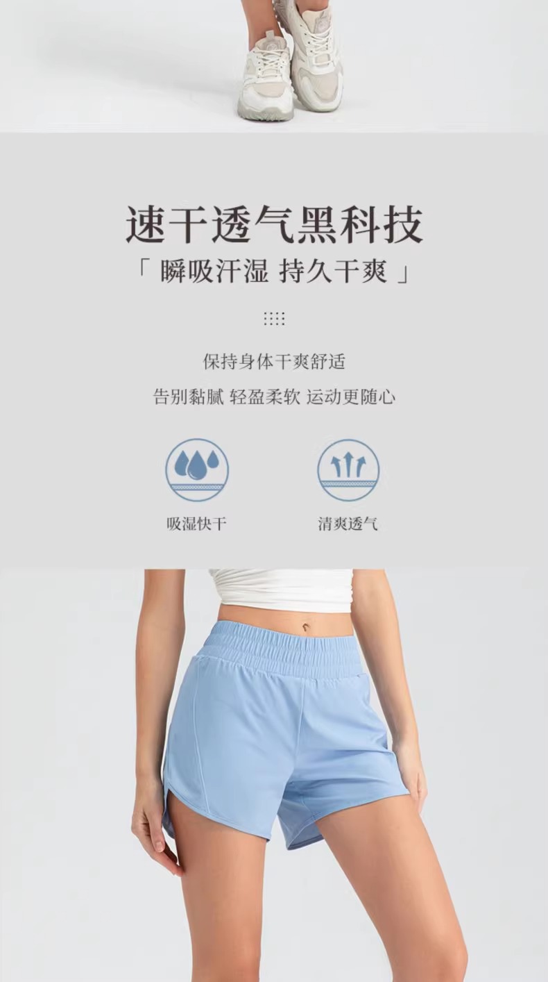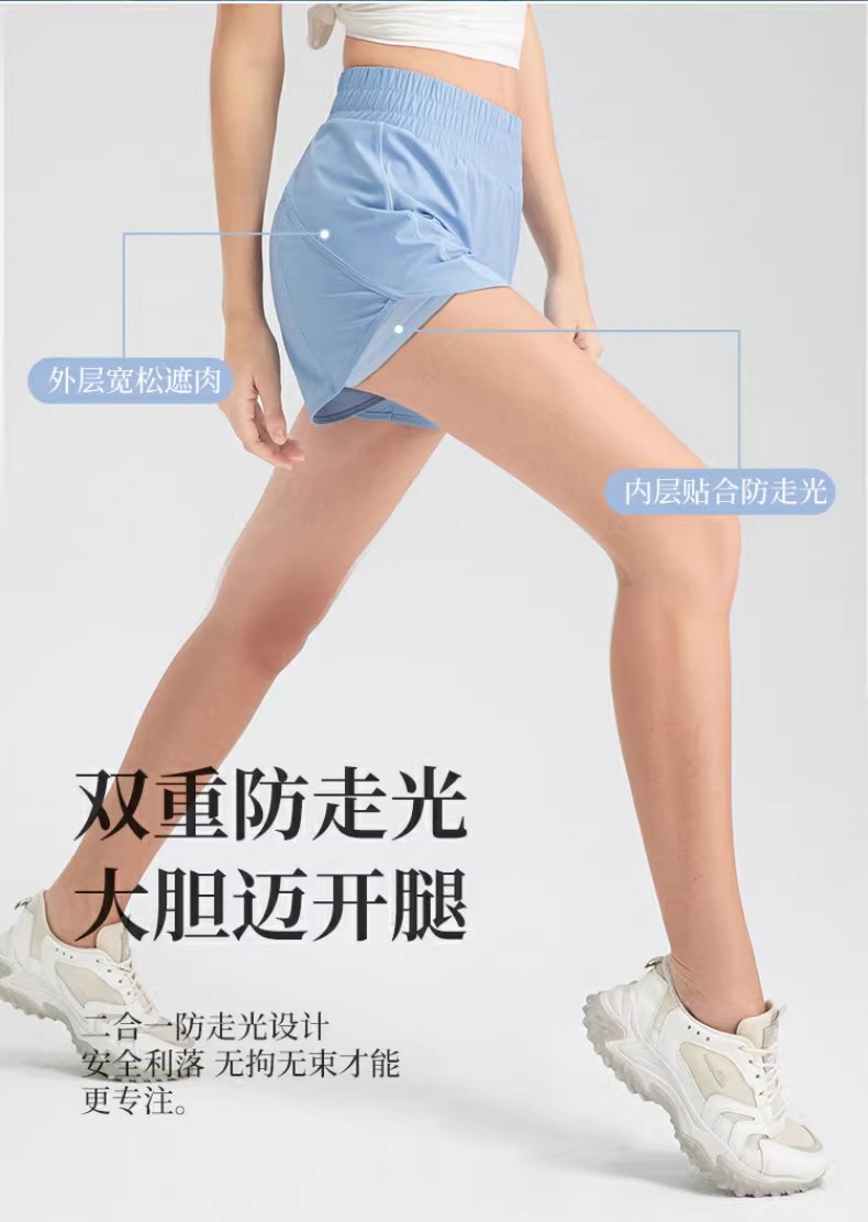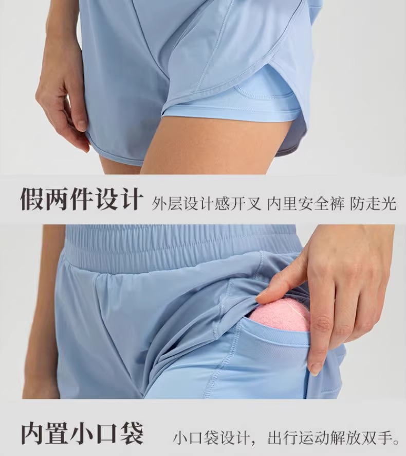 跃牌【欲动春风】系列 女夏宽松跑步短裤假两件速干透气运动裤防走光健身瑜伽短裤32449