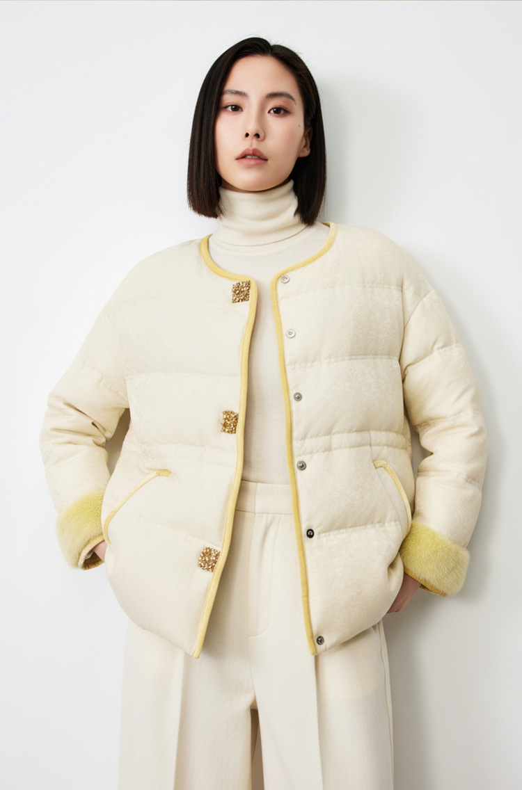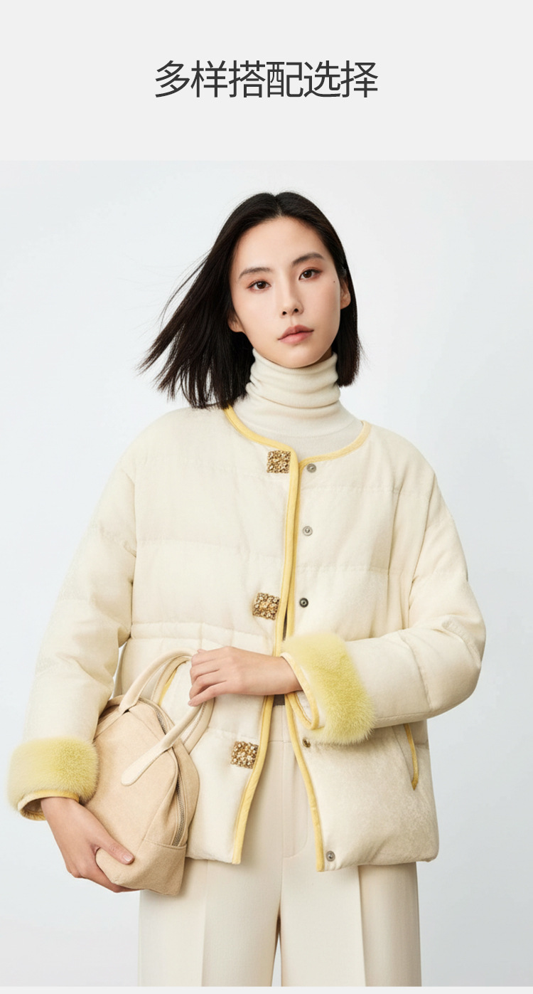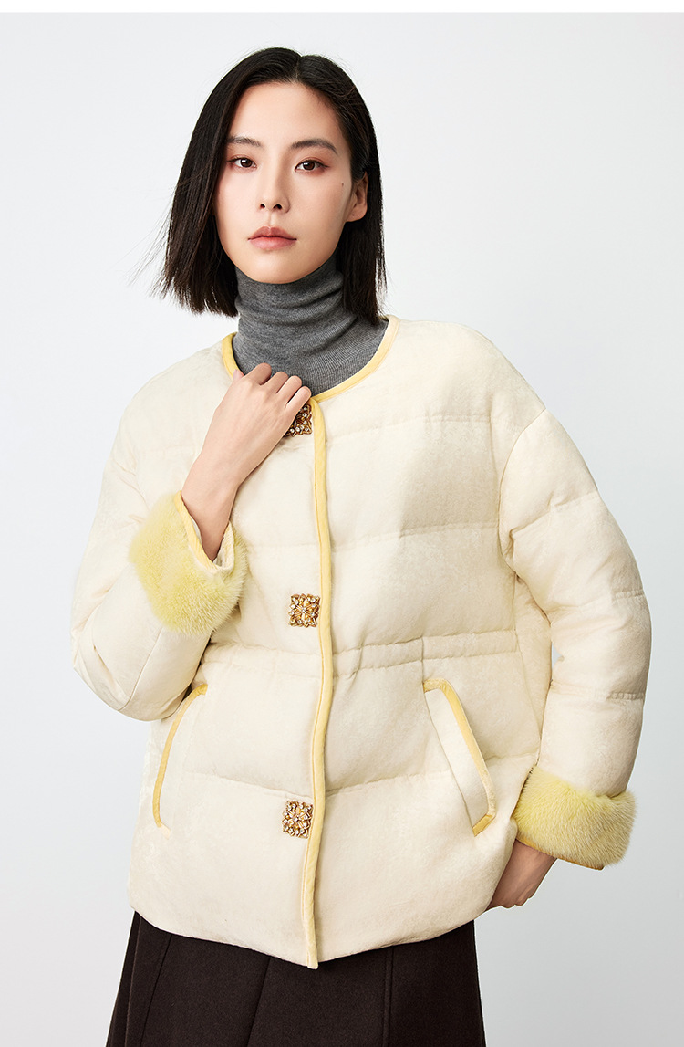 SM 2195水貂毛拼接新中式鹅绒服时尚保暖国风外套 商品图0