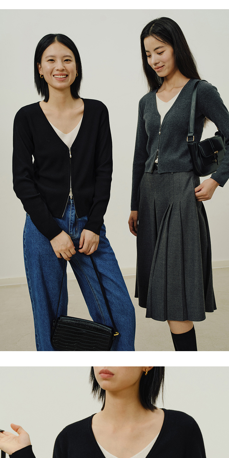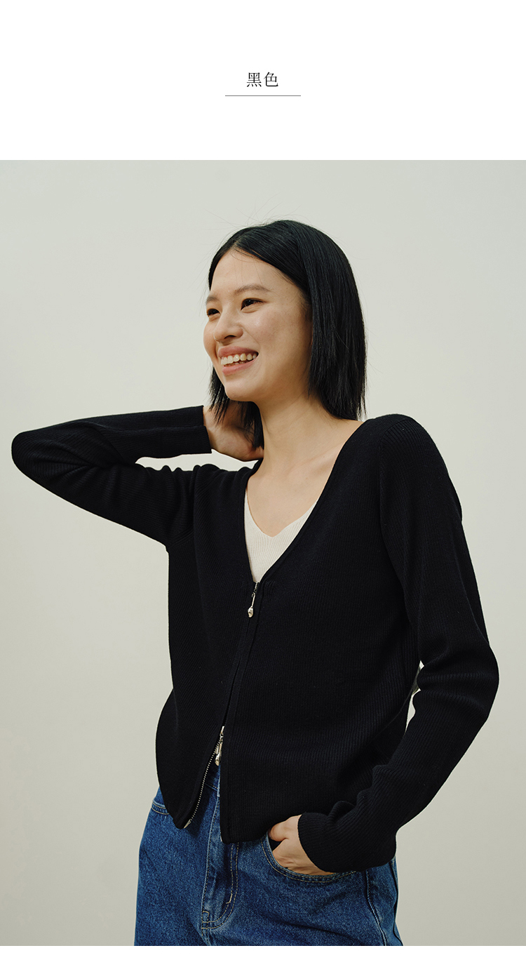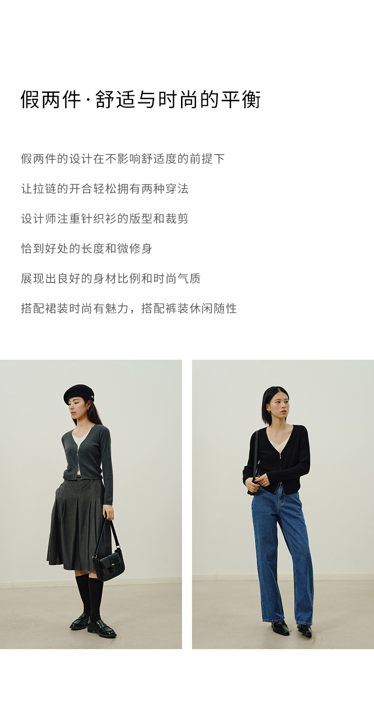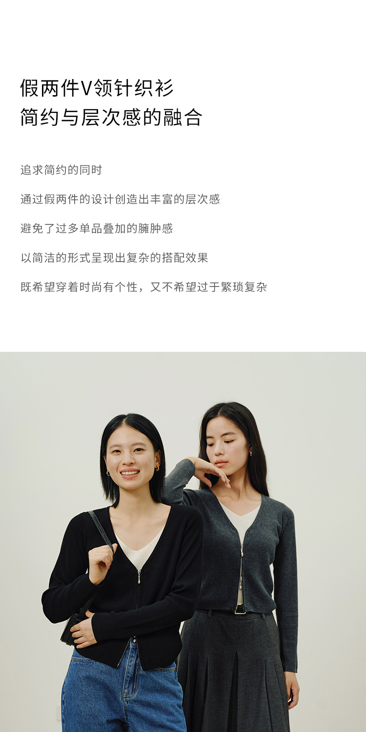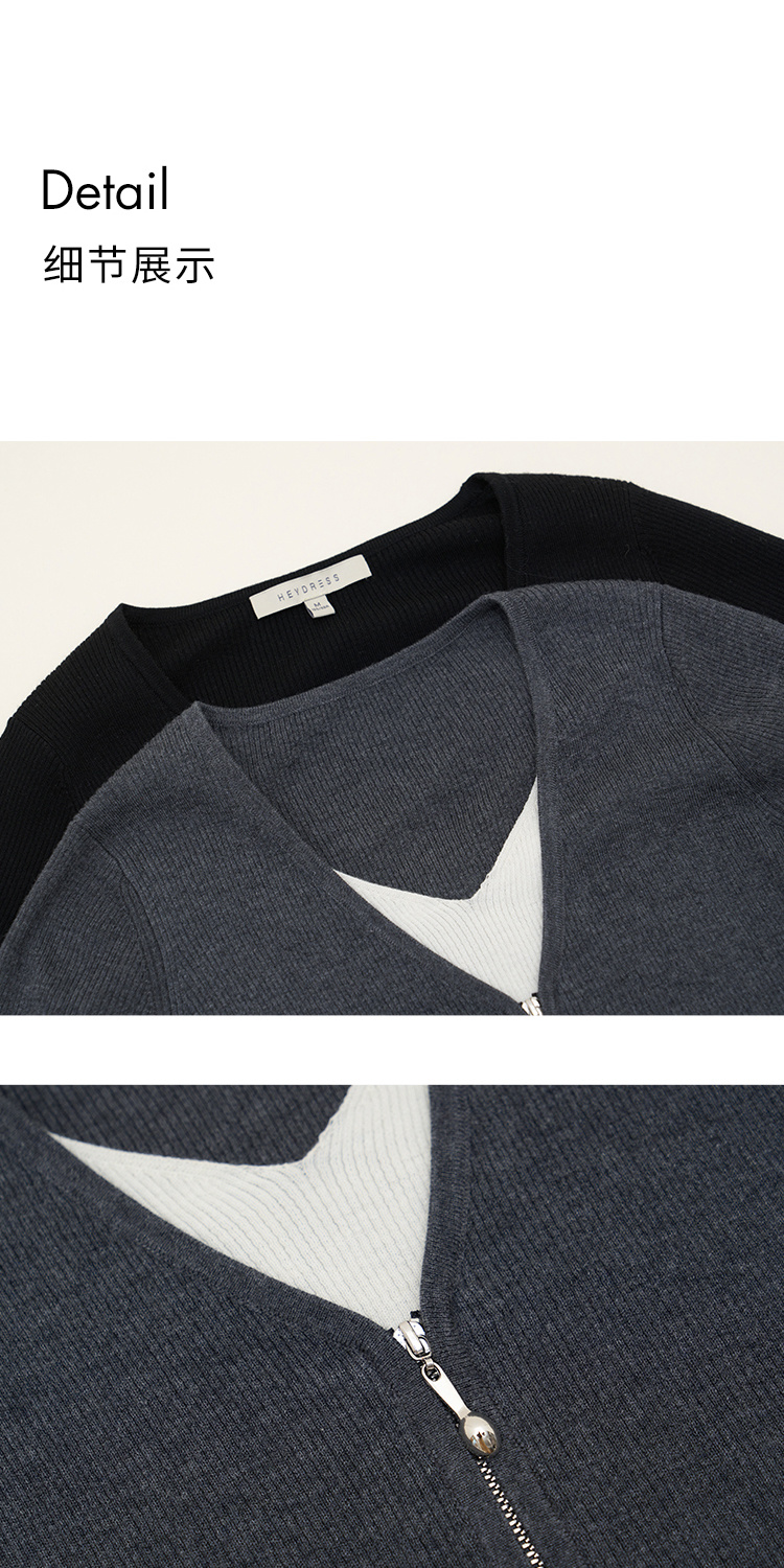 Heydress假两件针织衫女秋季法式绵羊毛开衫叠穿撞色层次感上衣