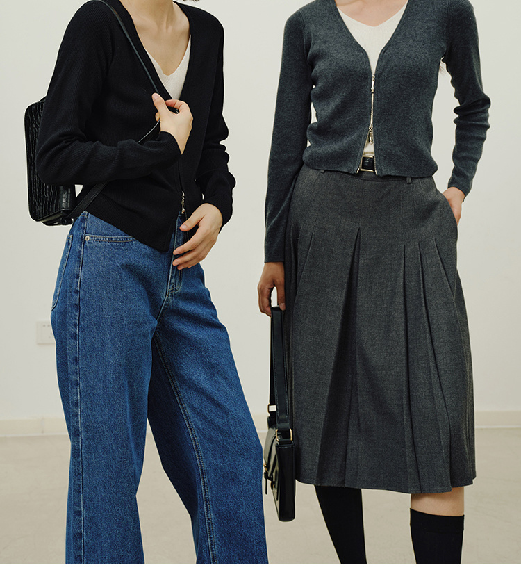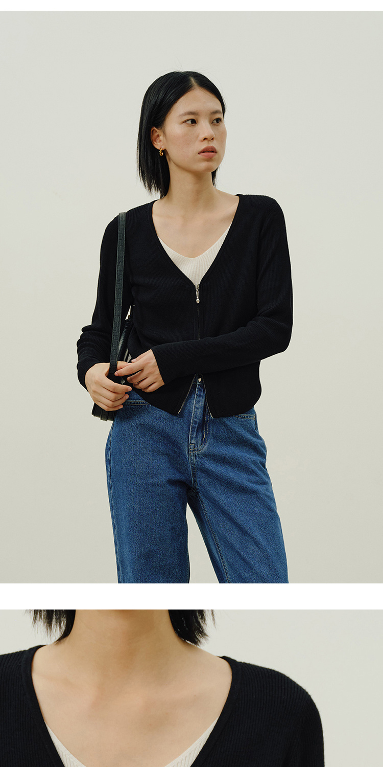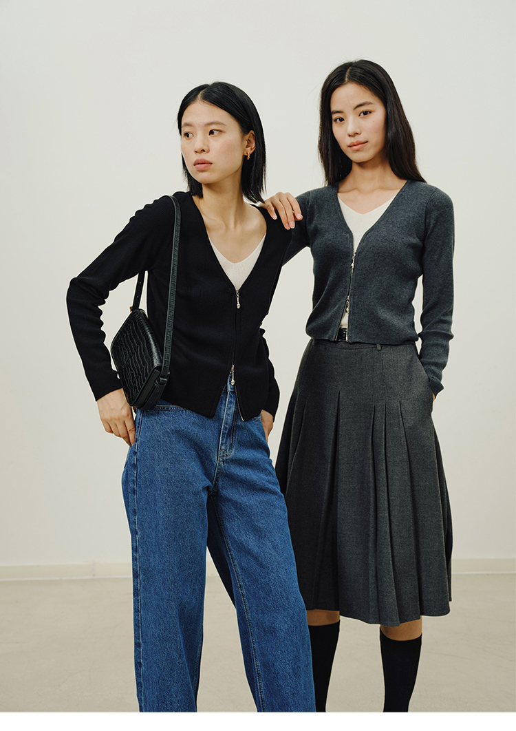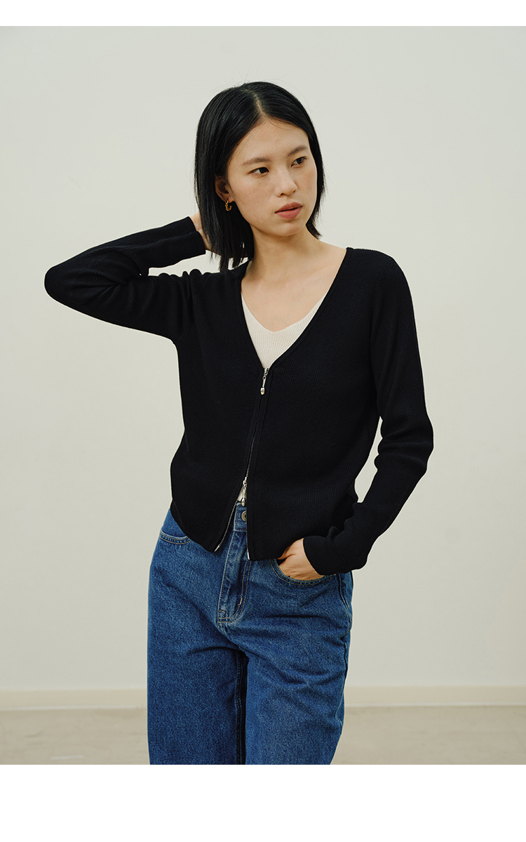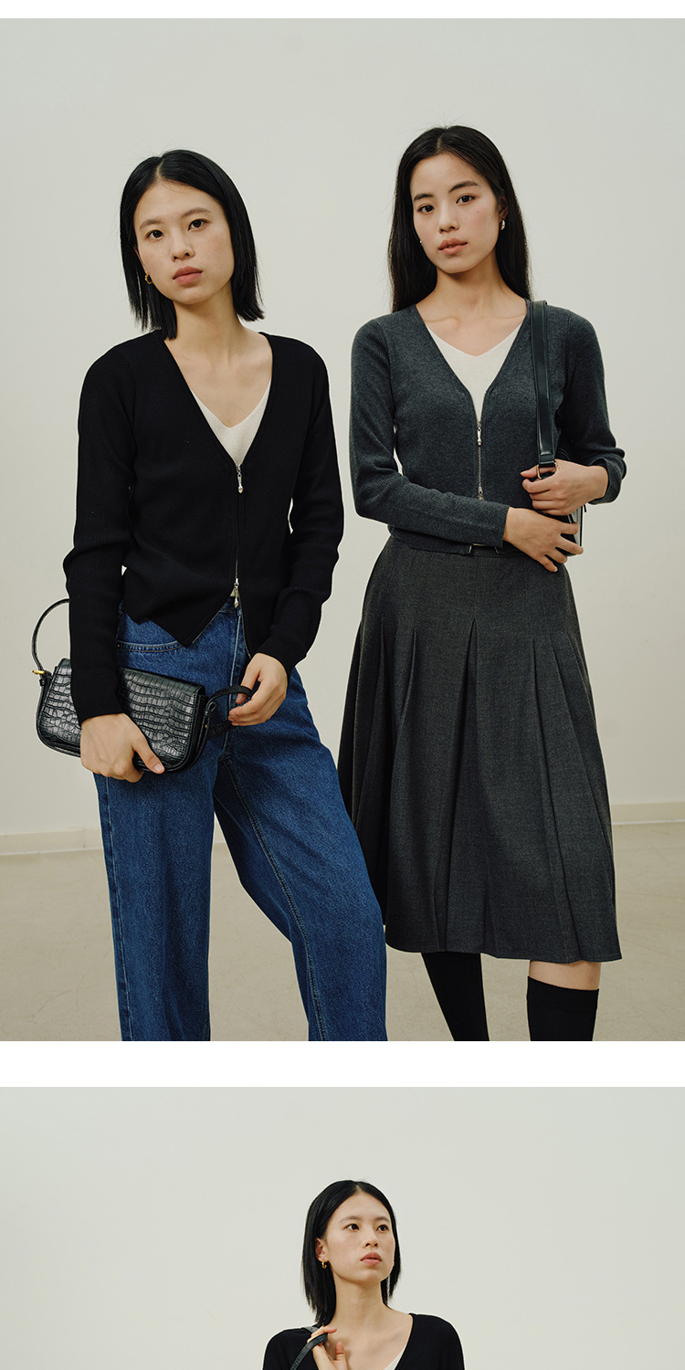 Heydress假两件针织衫女秋季法式绵羊毛开衫叠穿撞色层次感上衣